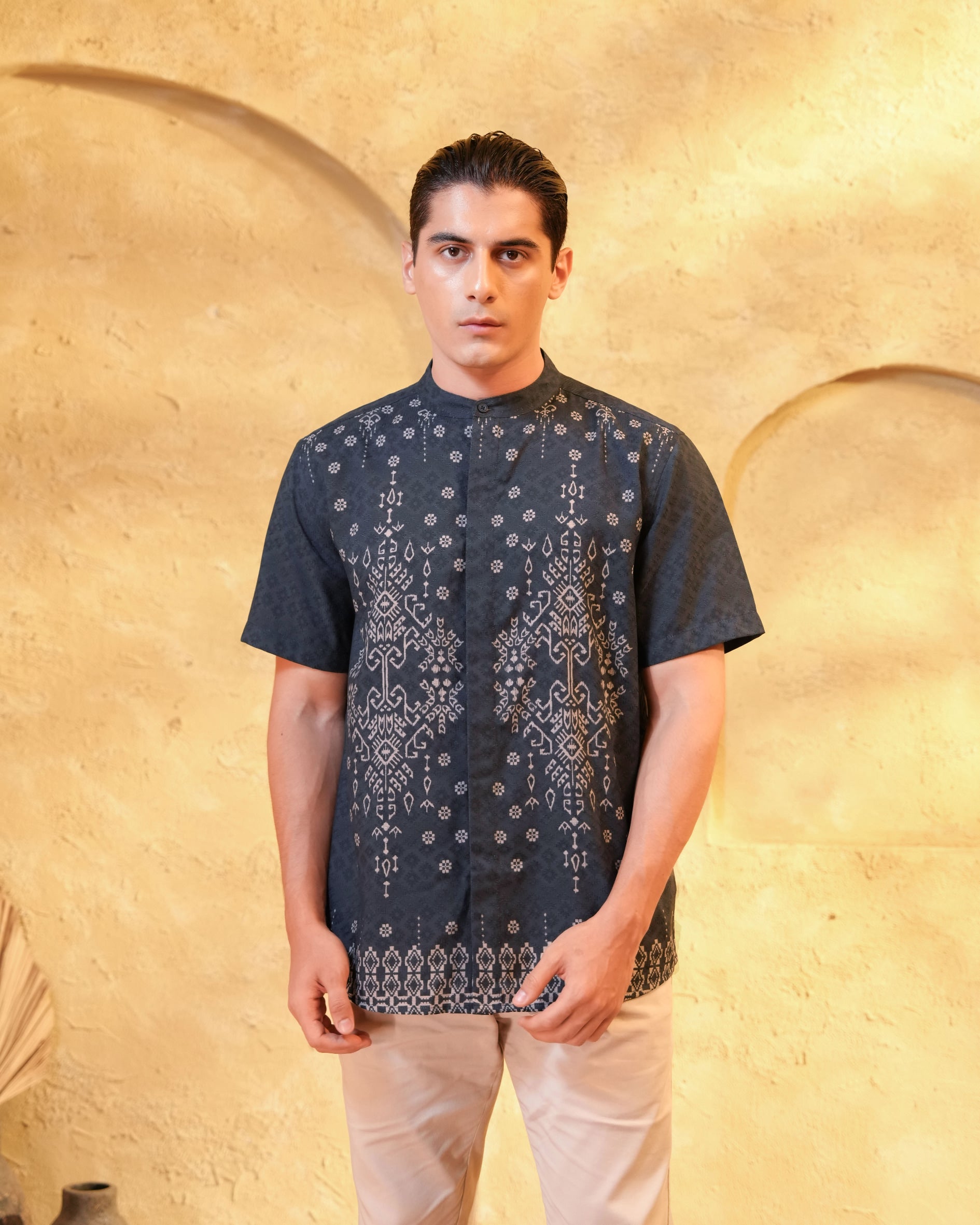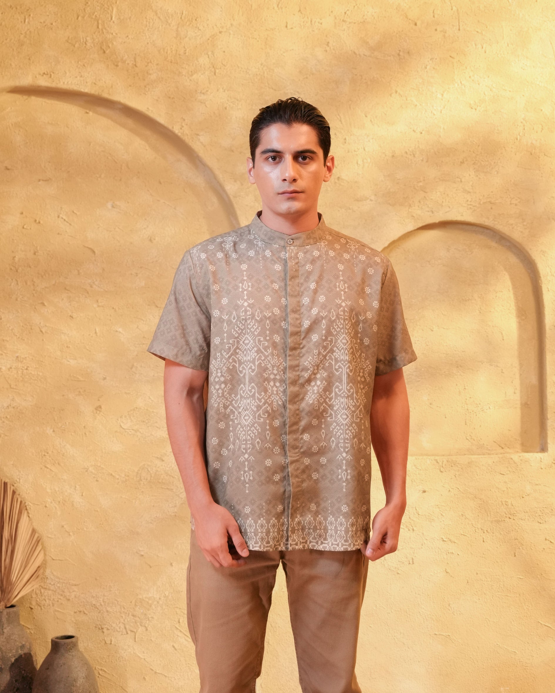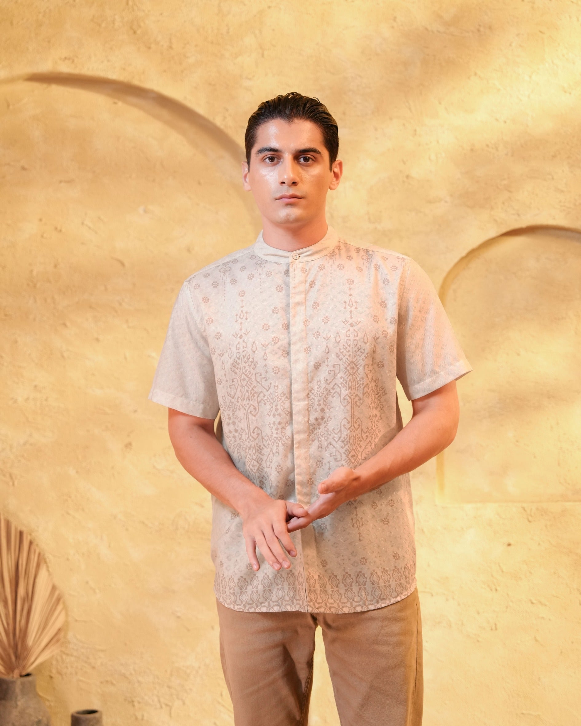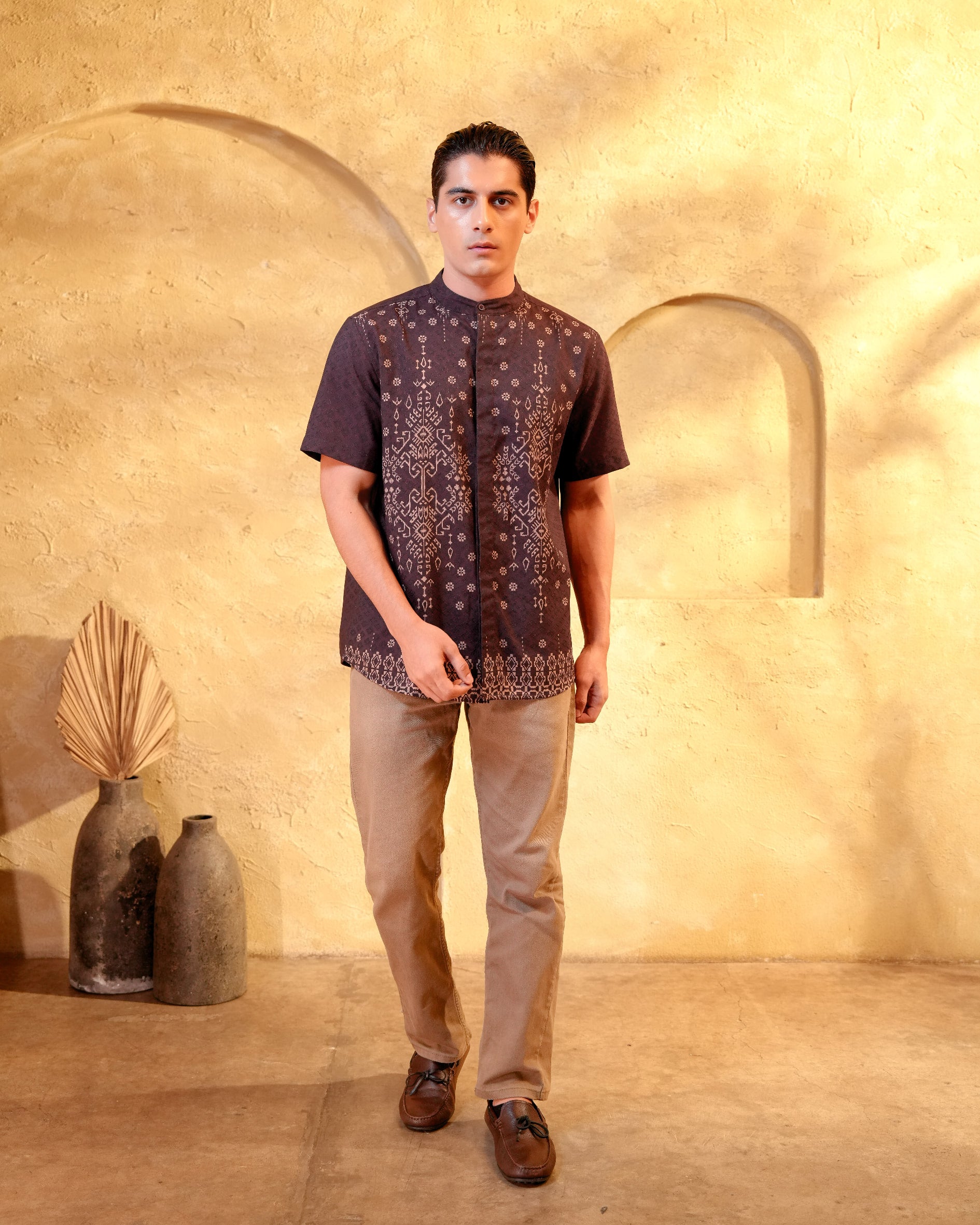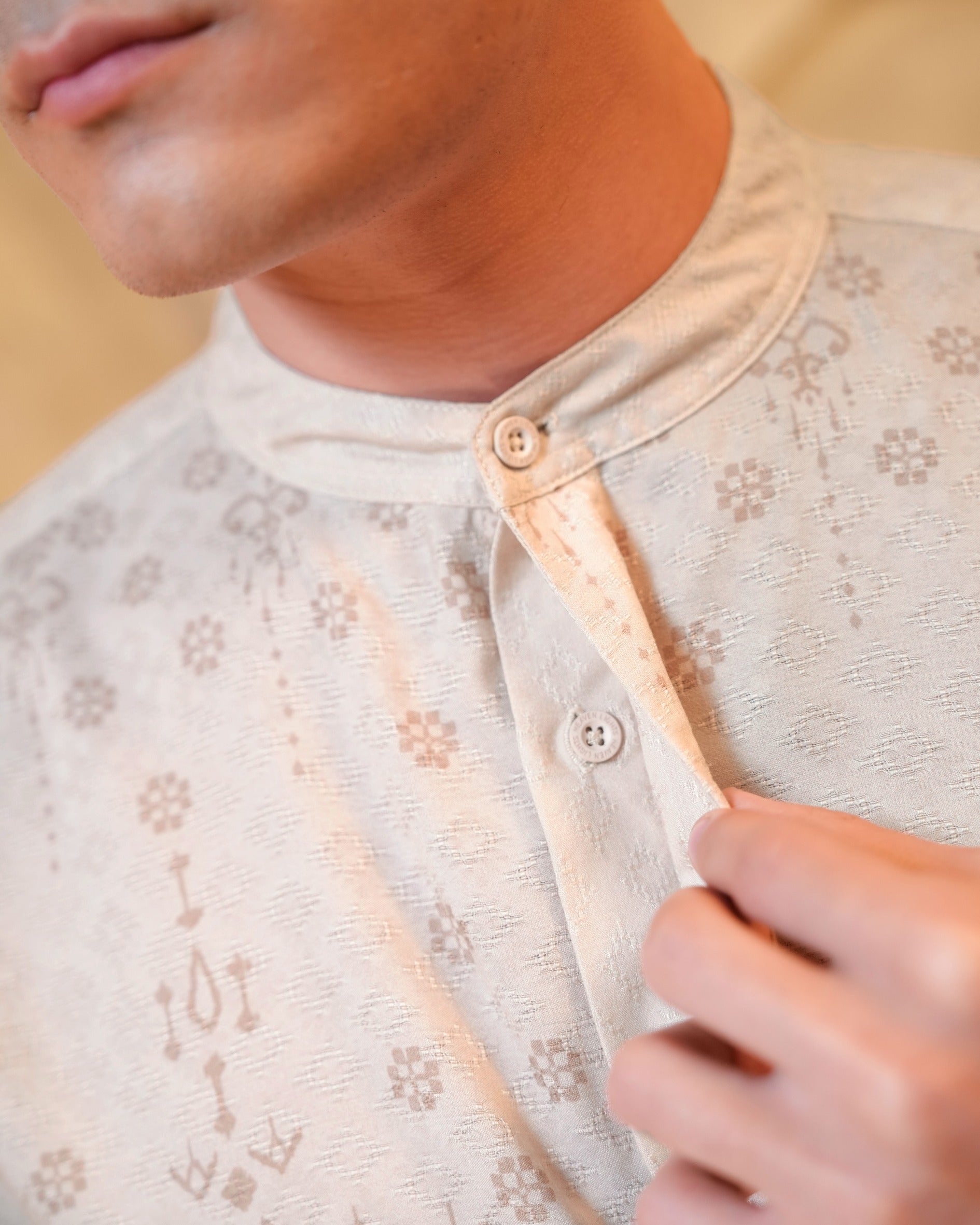 Tampil simply elegant dengan Alani Koko dari Heaven Lights. Koleksi baju koko lengan pendek dengan perpaduan conceal button, kerah bulat, siluet regular fit, sentuhan warna klasik, dan motif yang elegan. Sempurna untuk temani momen Raya.