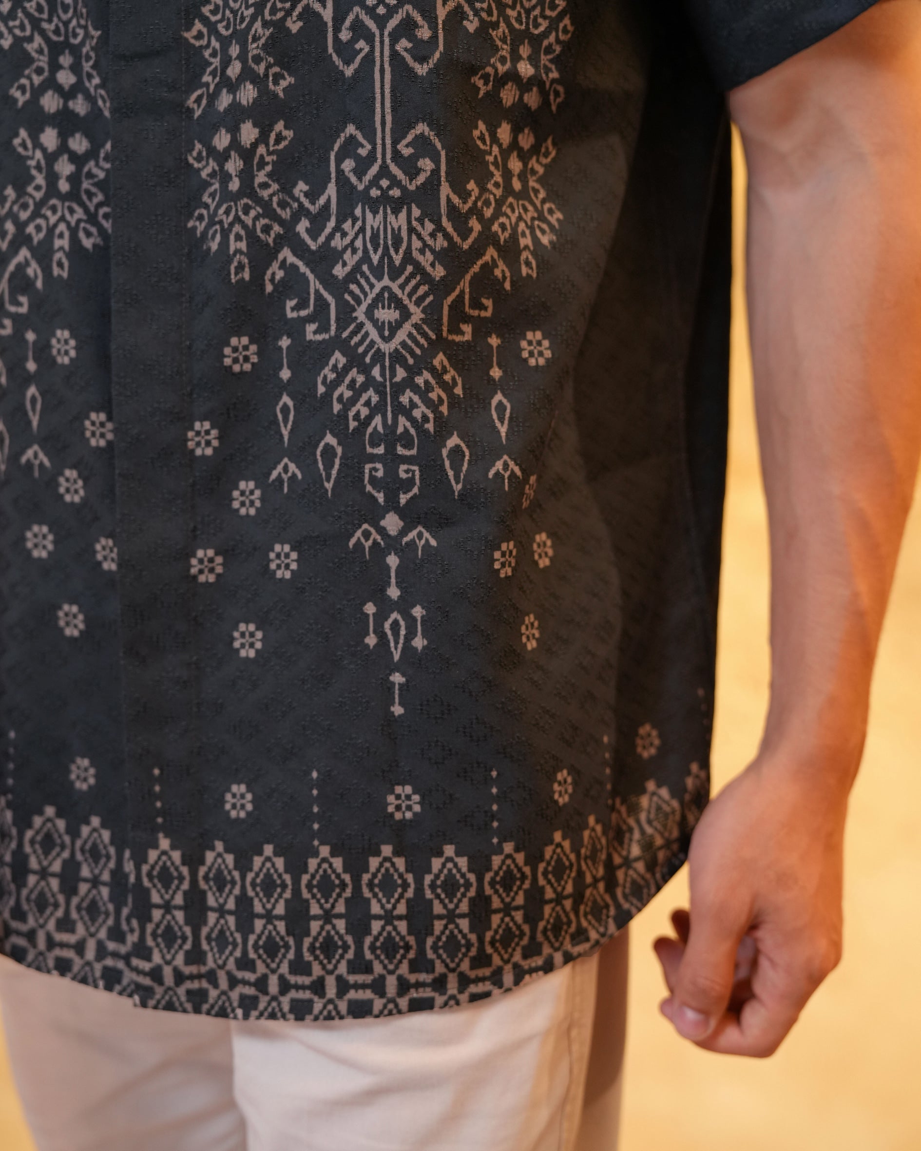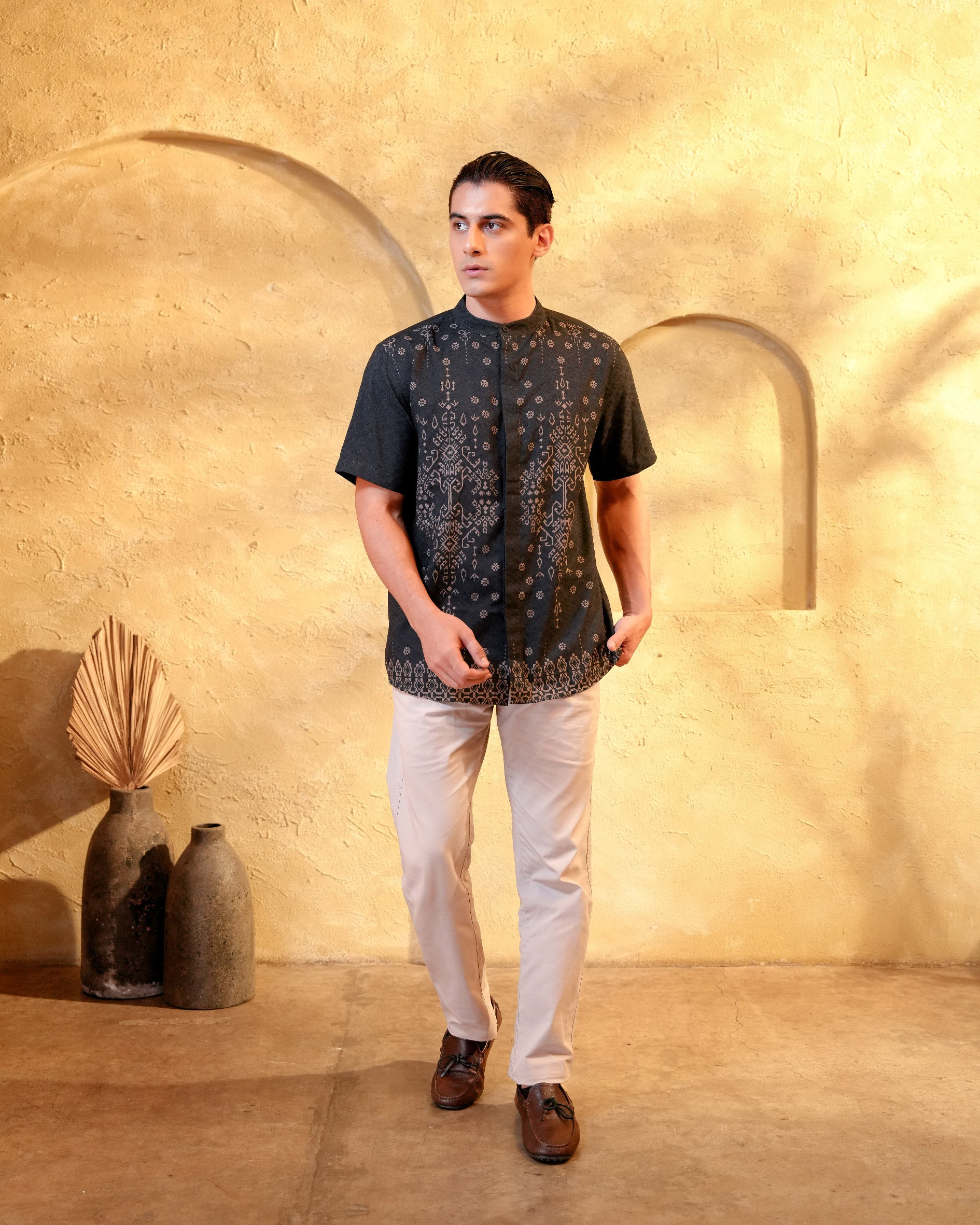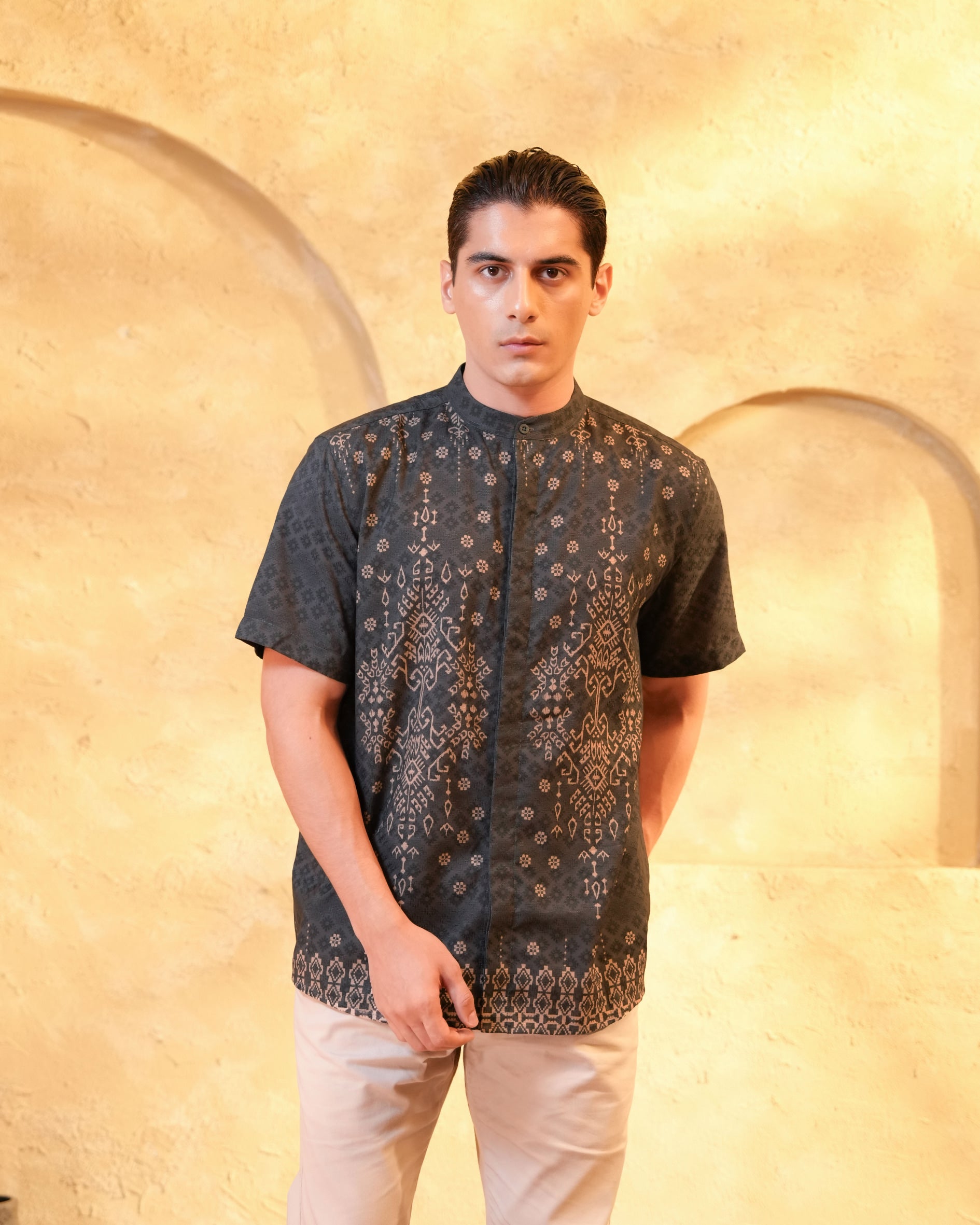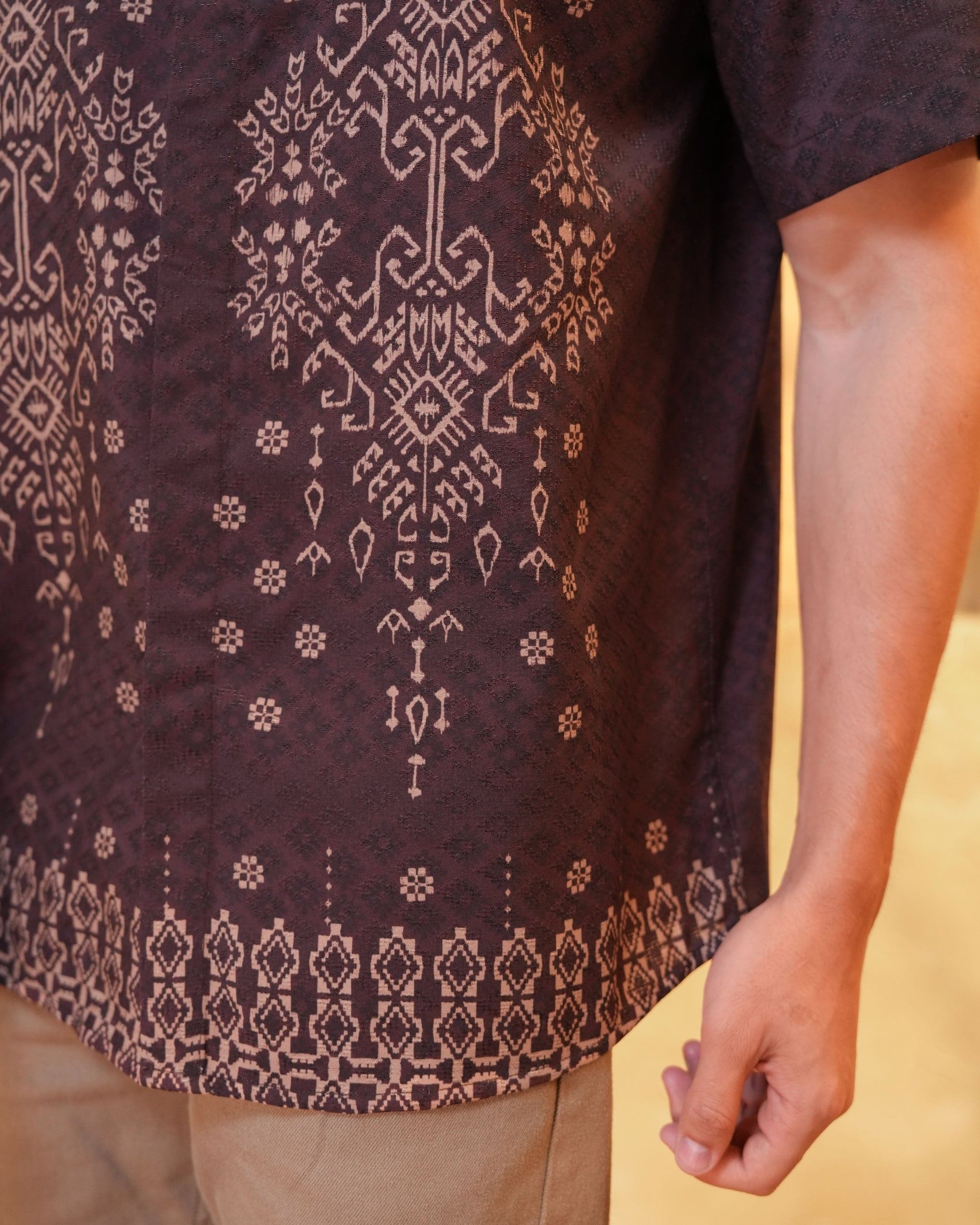 Tampil simply elegant dengan Alani Koko dari Heaven Lights. Koleksi baju koko lengan pendek dengan perpaduan conceal button, kerah bulat, siluet regular fit, sentuhan warna klasik, dan motif yang elegan. Sempurna untuk temani momen Raya.