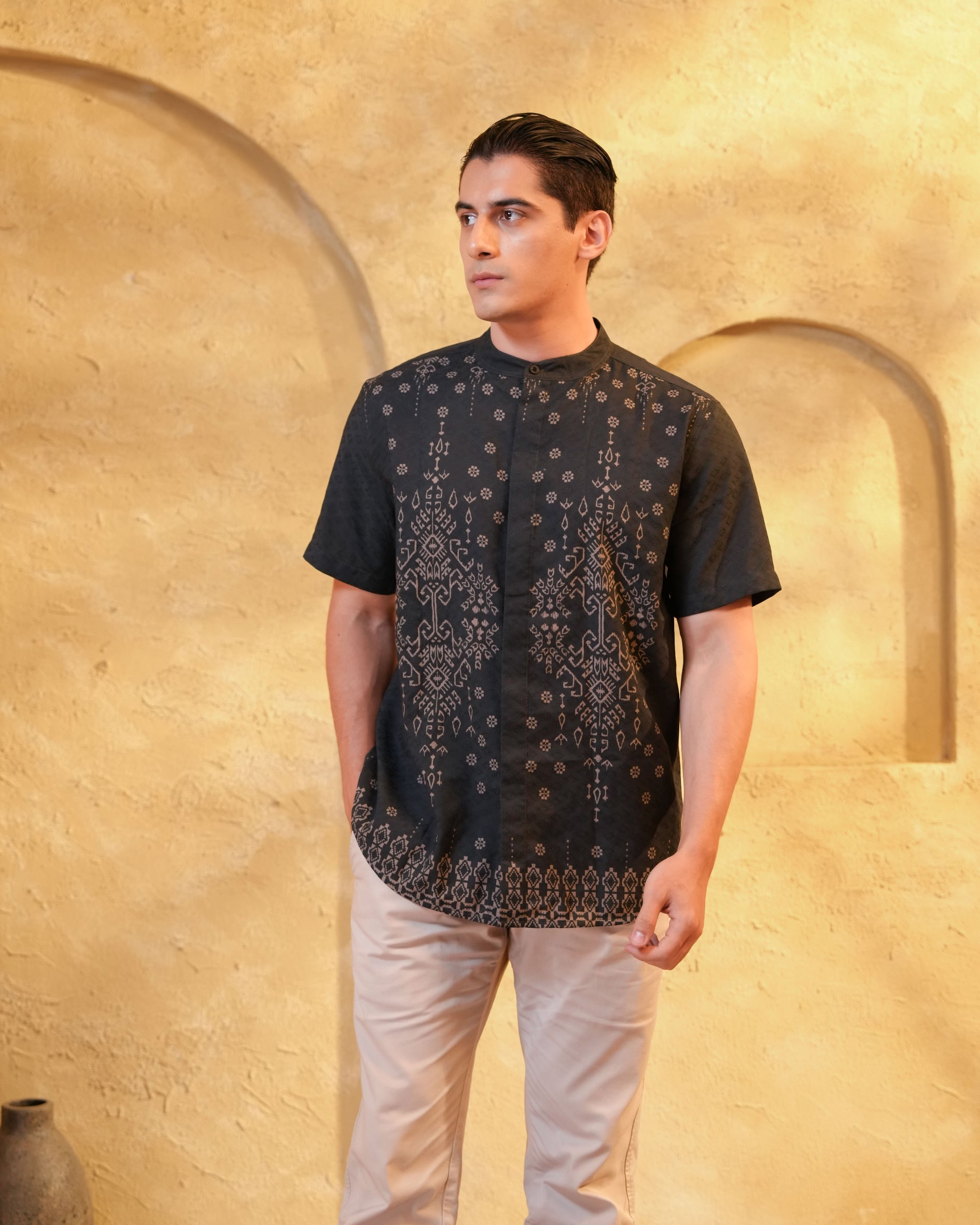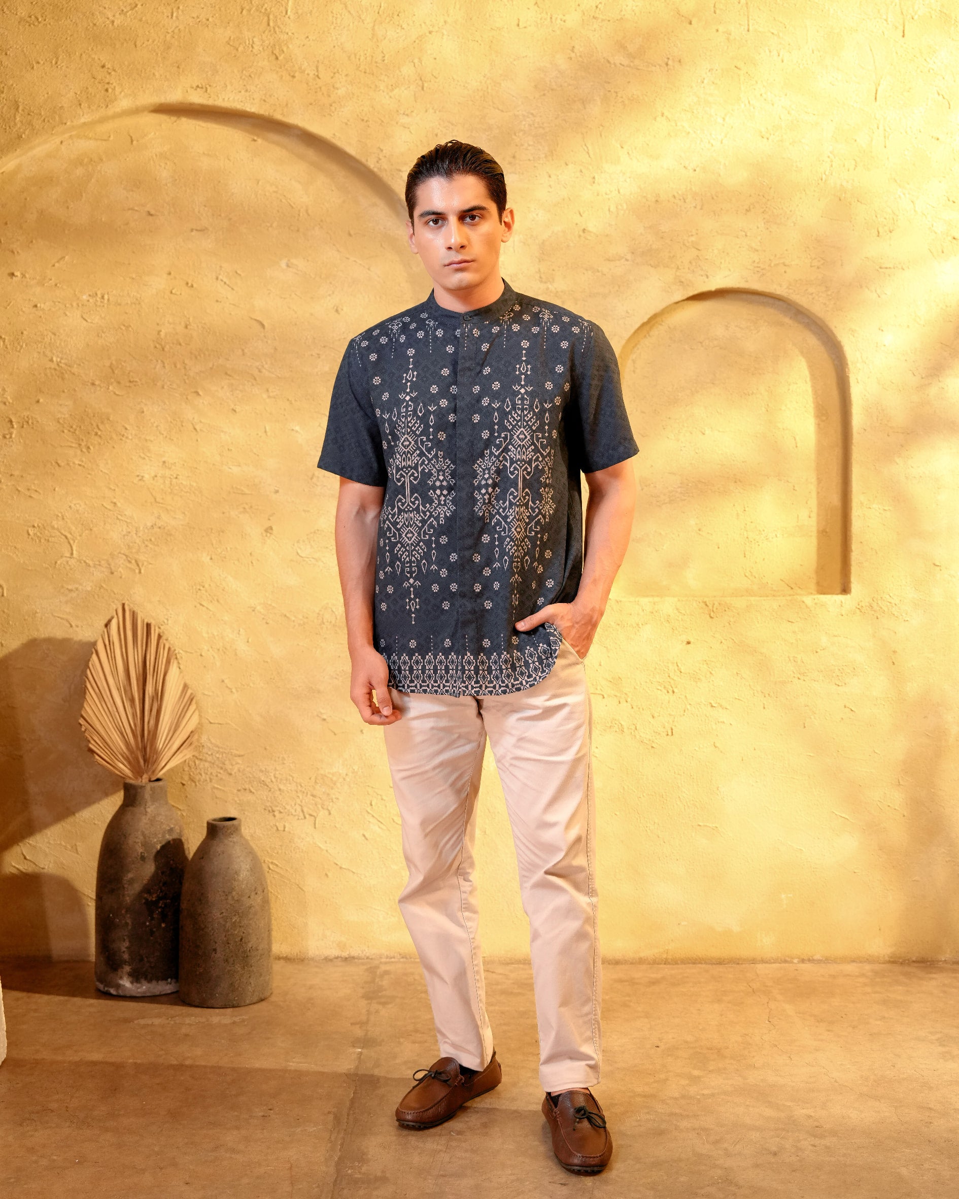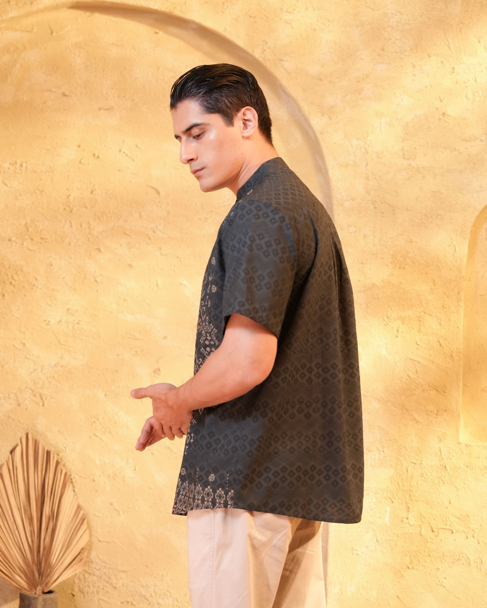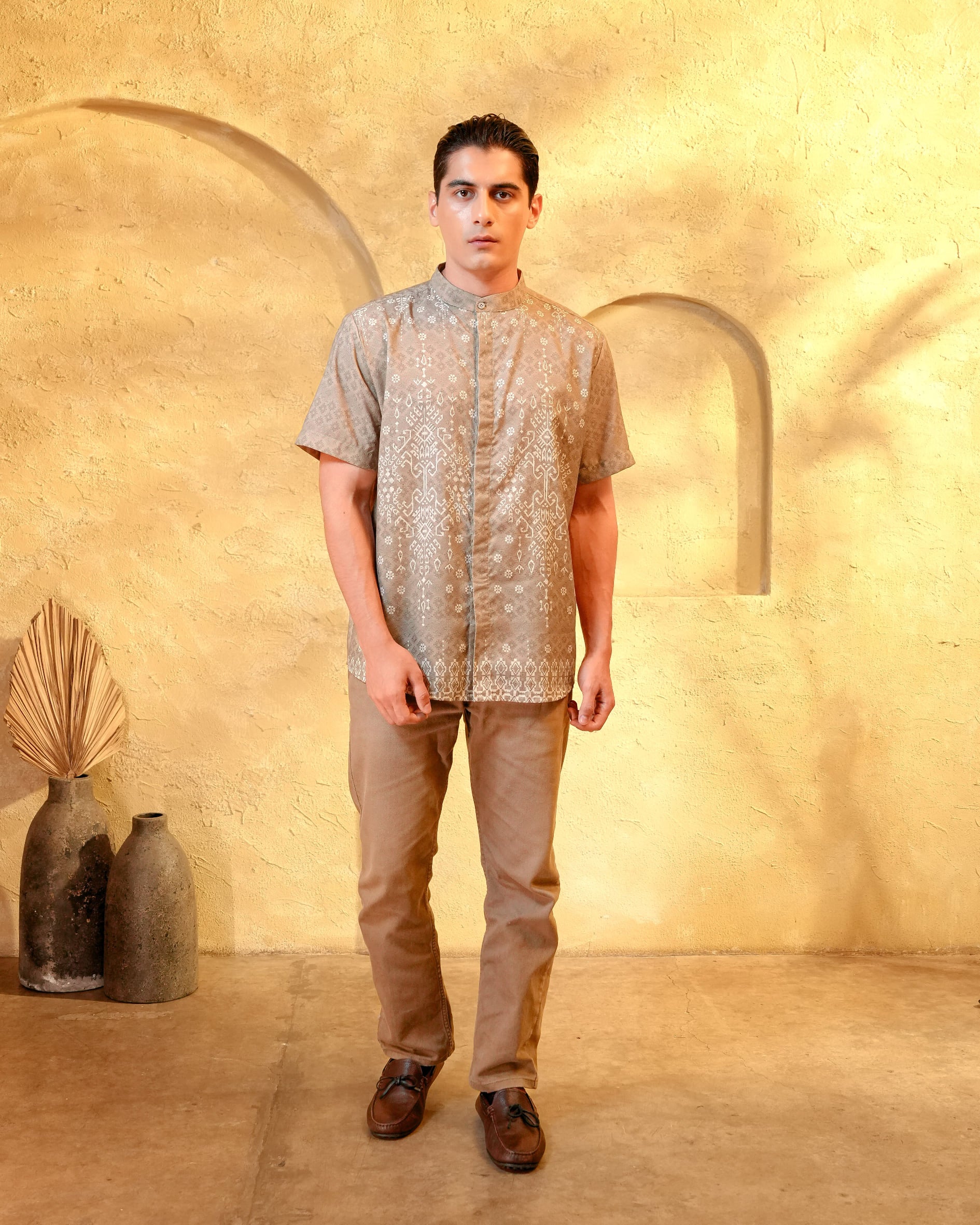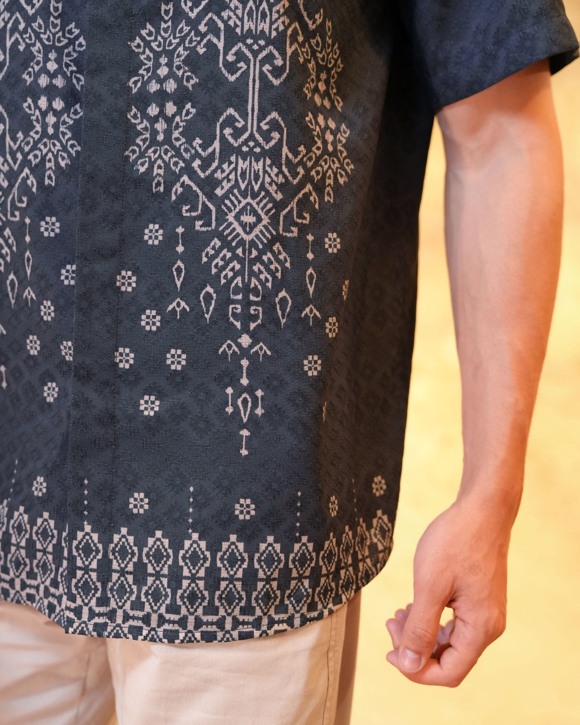 Tampil simply elegant dengan Alani Koko dari Heaven Lights. Koleksi baju koko lengan pendek dengan perpaduan conceal button, kerah bulat, siluet regular fit, sentuhan warna klasik, dan motif yang elegan. Sempurna untuk temani momen Raya.
