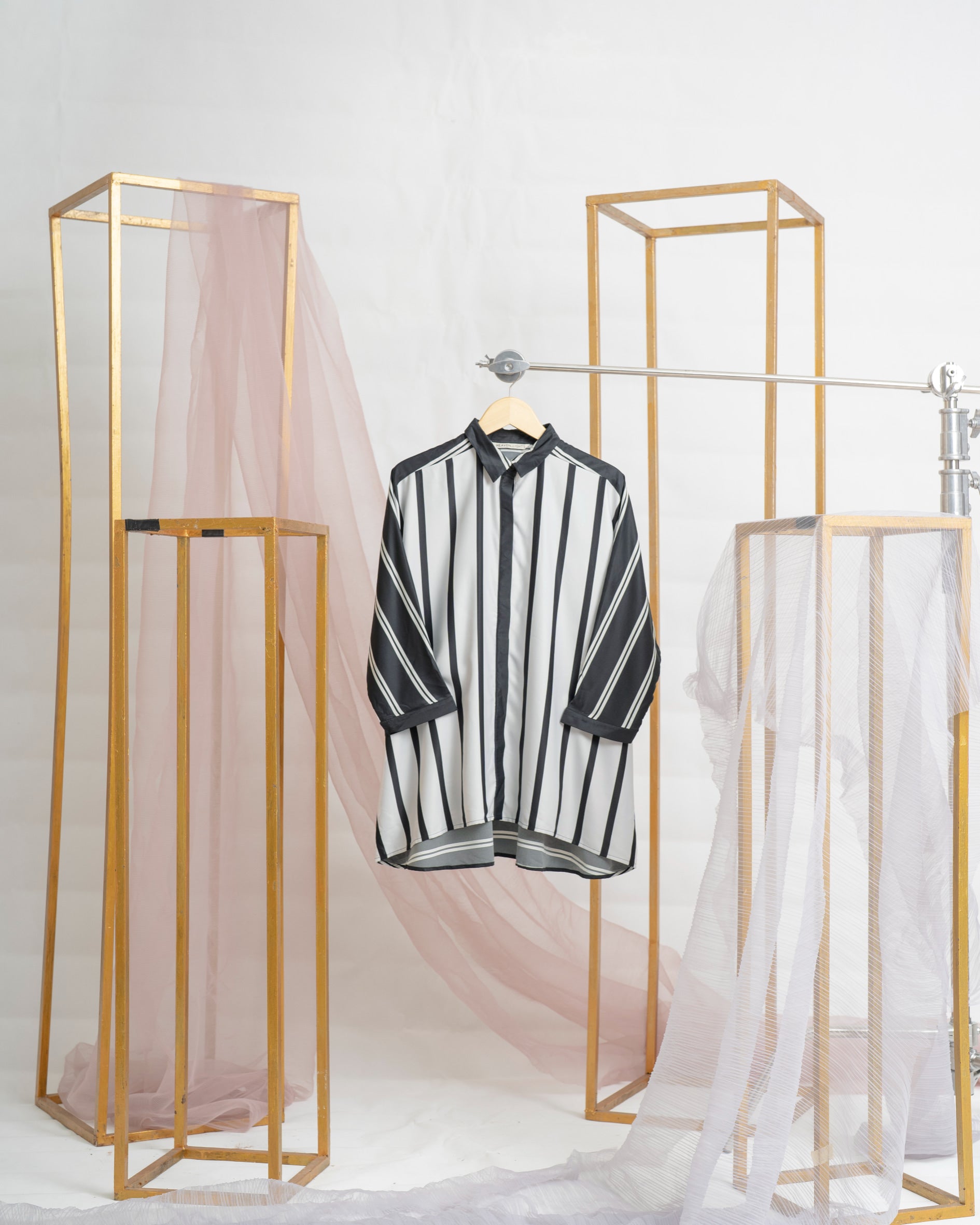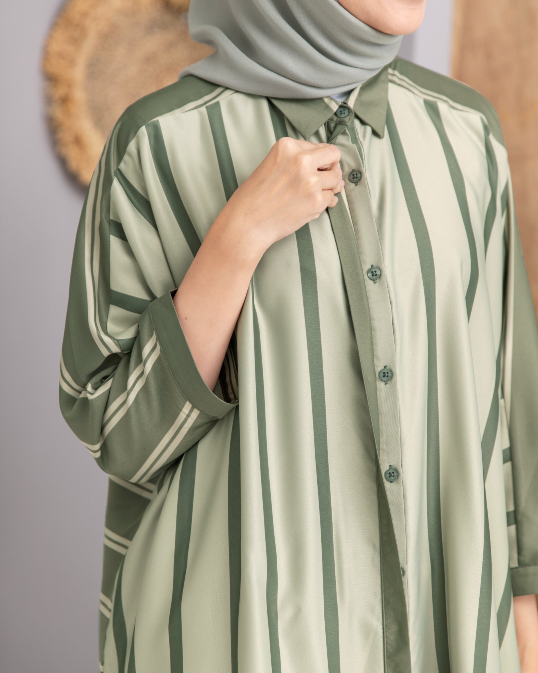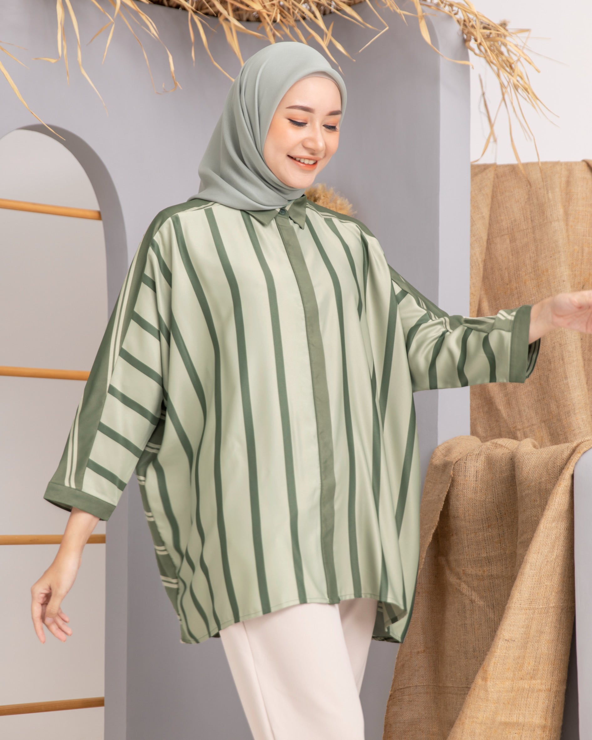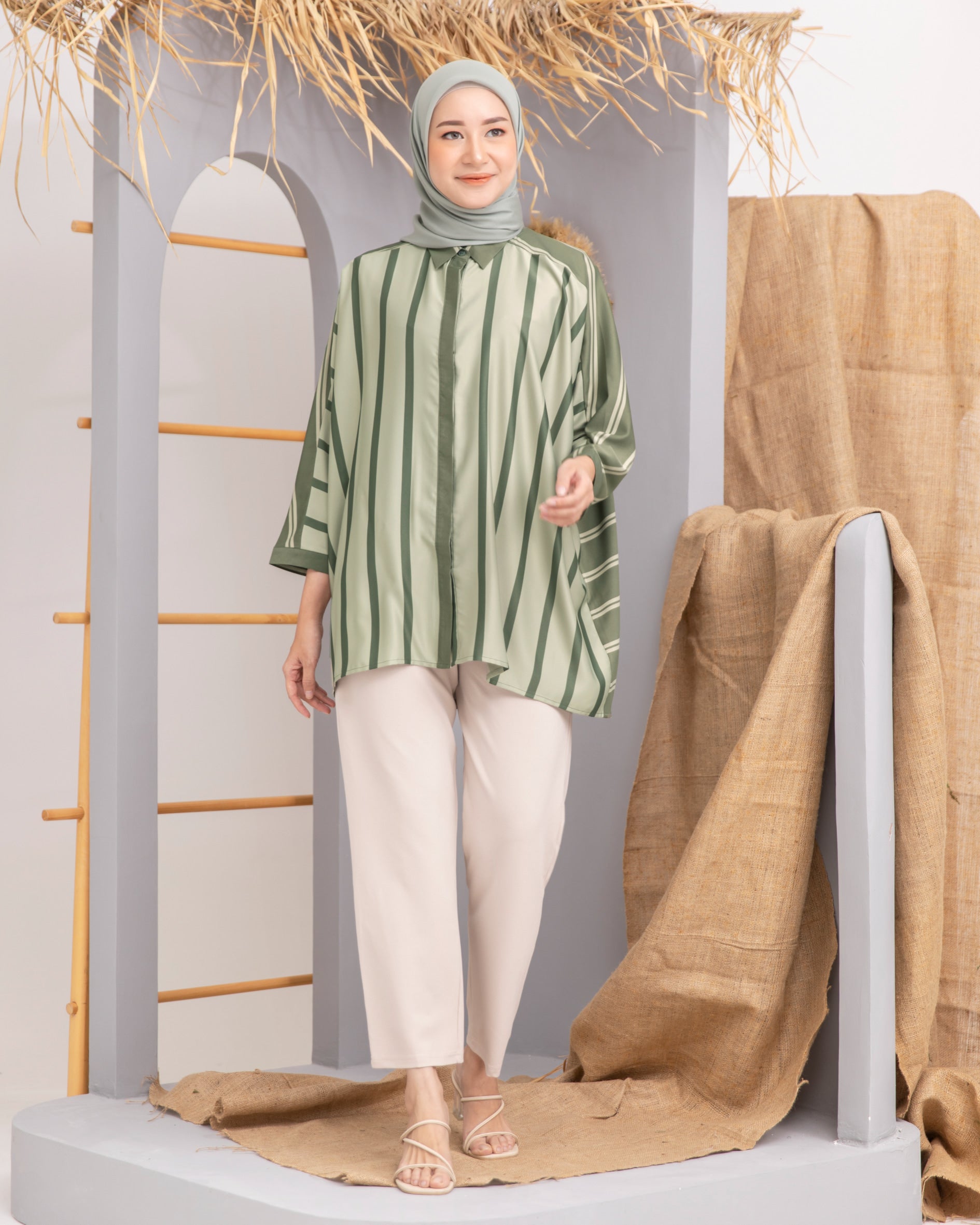 Atasan stripe dengan pola batwing lebar dada menyambung ke tangan, sehingga ukuran dada akan lebih lebar dari biasanya. Untuk pola bahu tetap tetap seperti size normal, jadi pilih SIZE SEPERTI BIASA YA💕