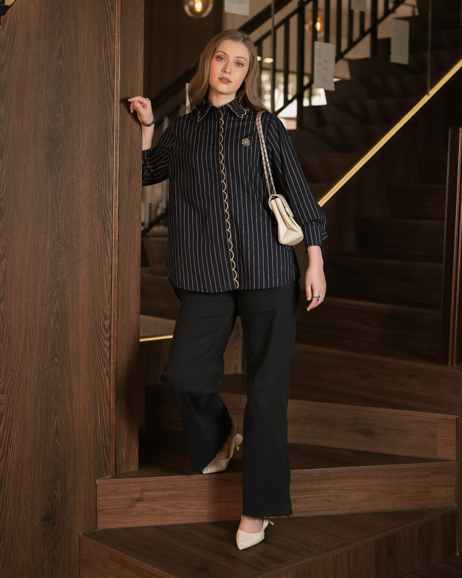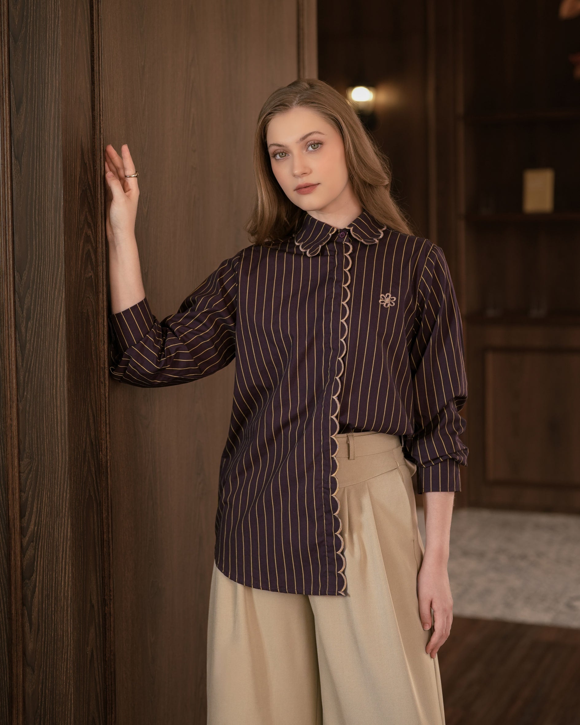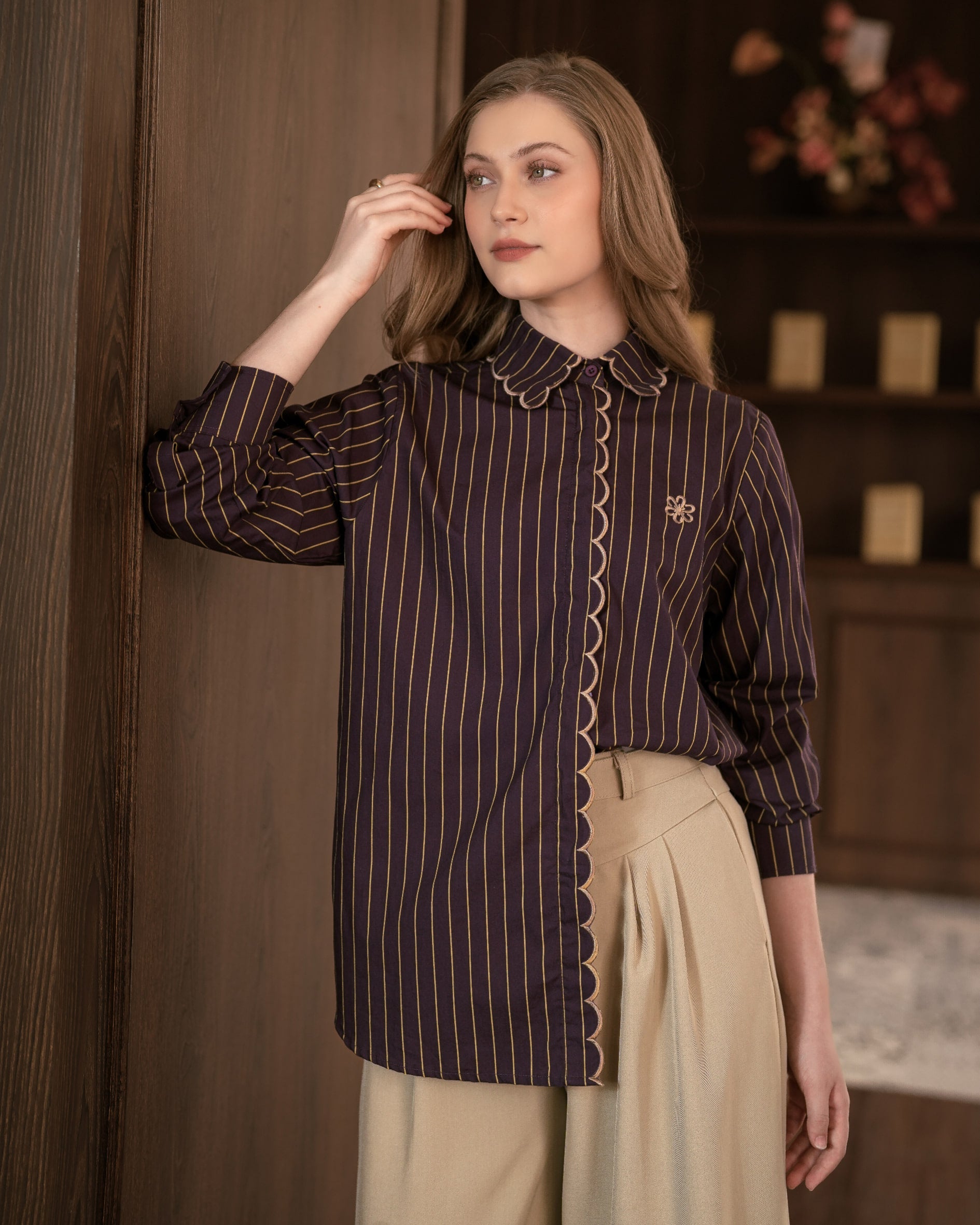 Kian chic nan stylish dengan menggunakan Lara Stripes dari Heaven Lights. Kemeja motif garis dengan detail hidden button, contrast scallop embroidery asccent, dan logo flamour. Bahannya yang lembut, ringan, tidak gerah dan tidak gampang kusut.
