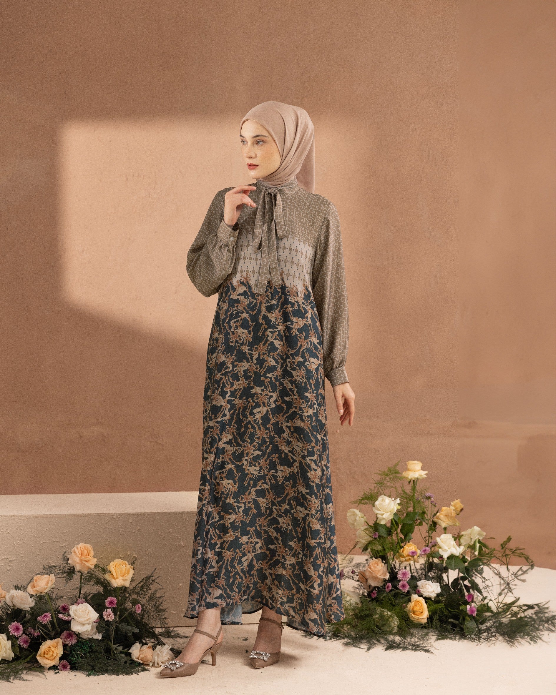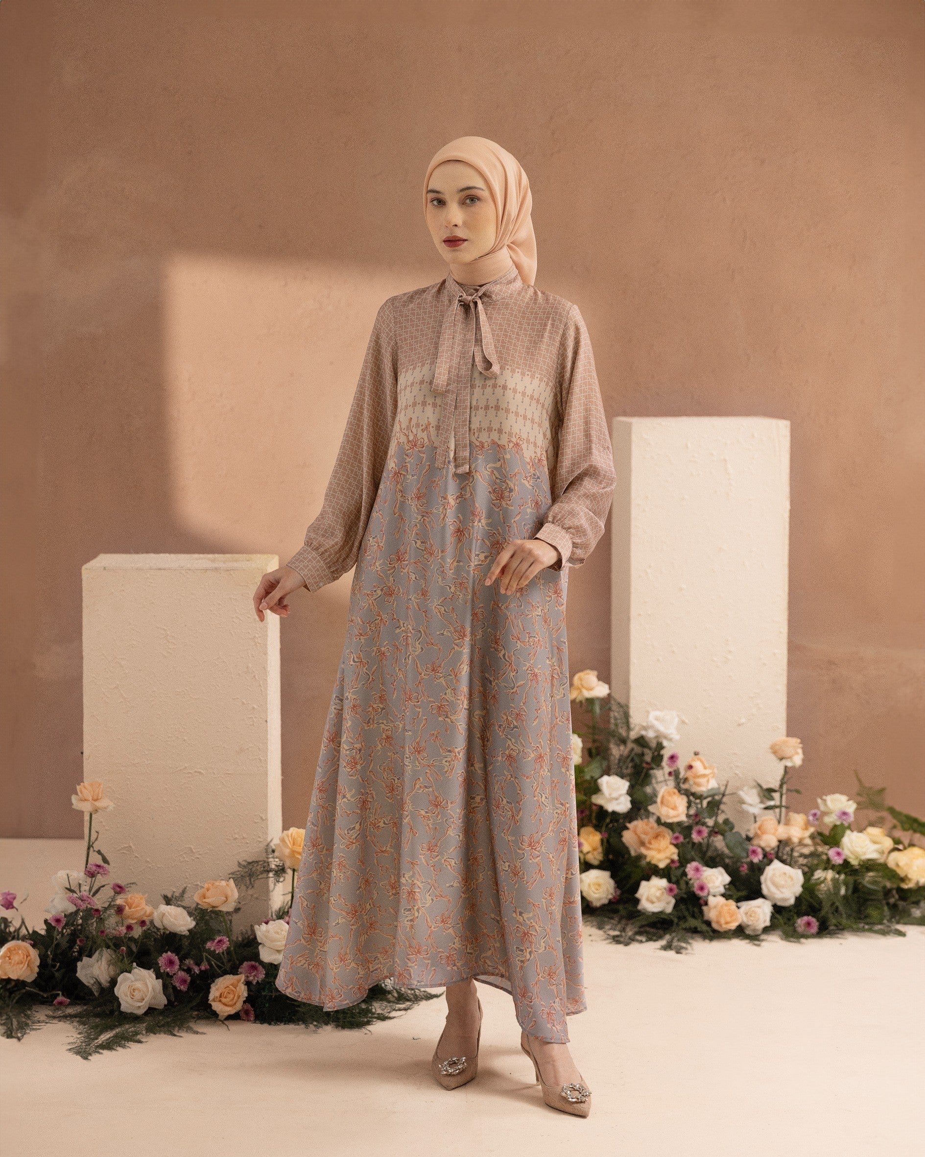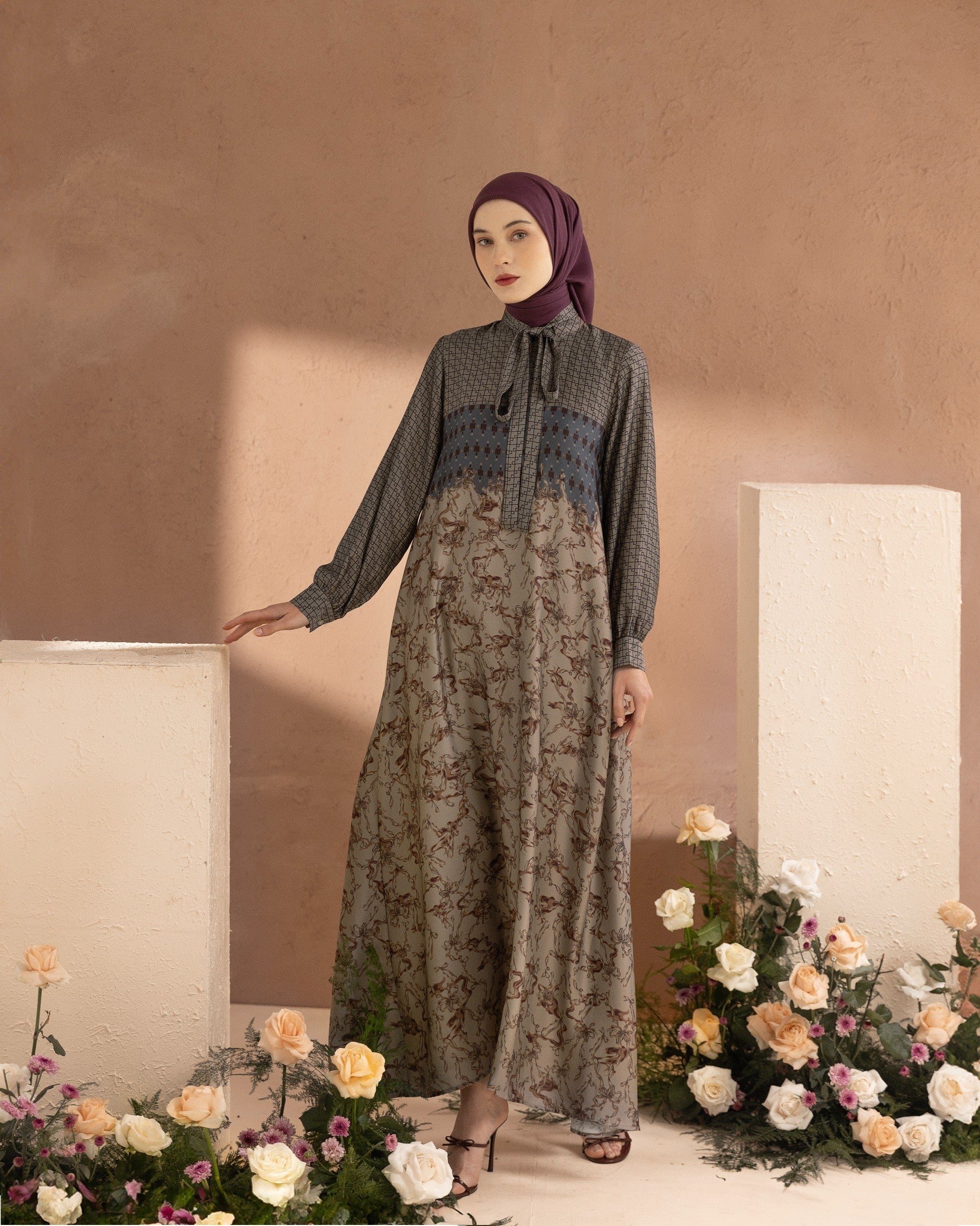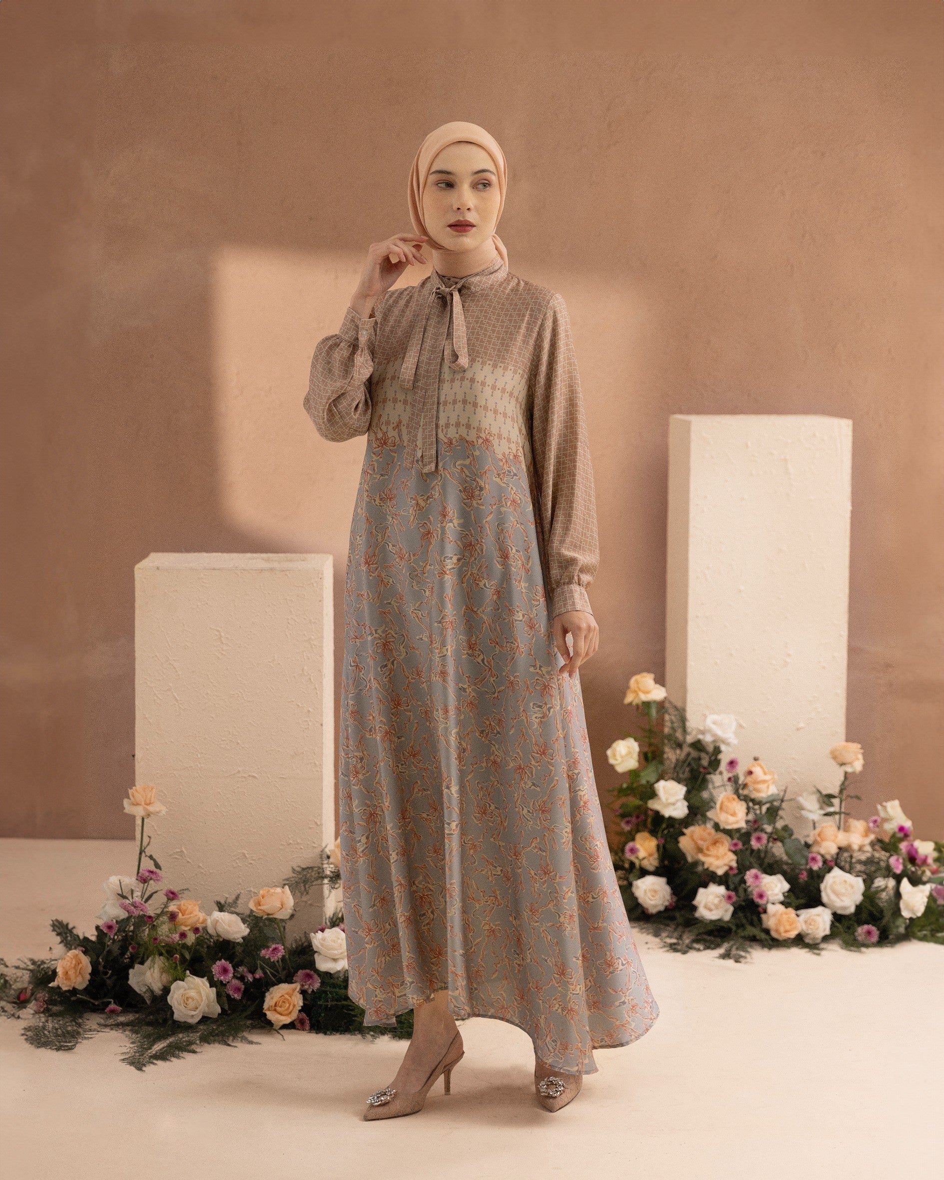 Kian memesona nan elegan dengan Maureen Dress dari Heaven Lights. Long printed dress dengan kerah shanghai, resleting di bagian depan yang busui-friendly, serta puff sleeve yang mewah. Kombinasi pattern-nya cantik dan memberikan kesan classy. Bahannya yang ringan, adem, dan tidak gampang kusut. Dilengkapi tali depan yang percantik tampilan.