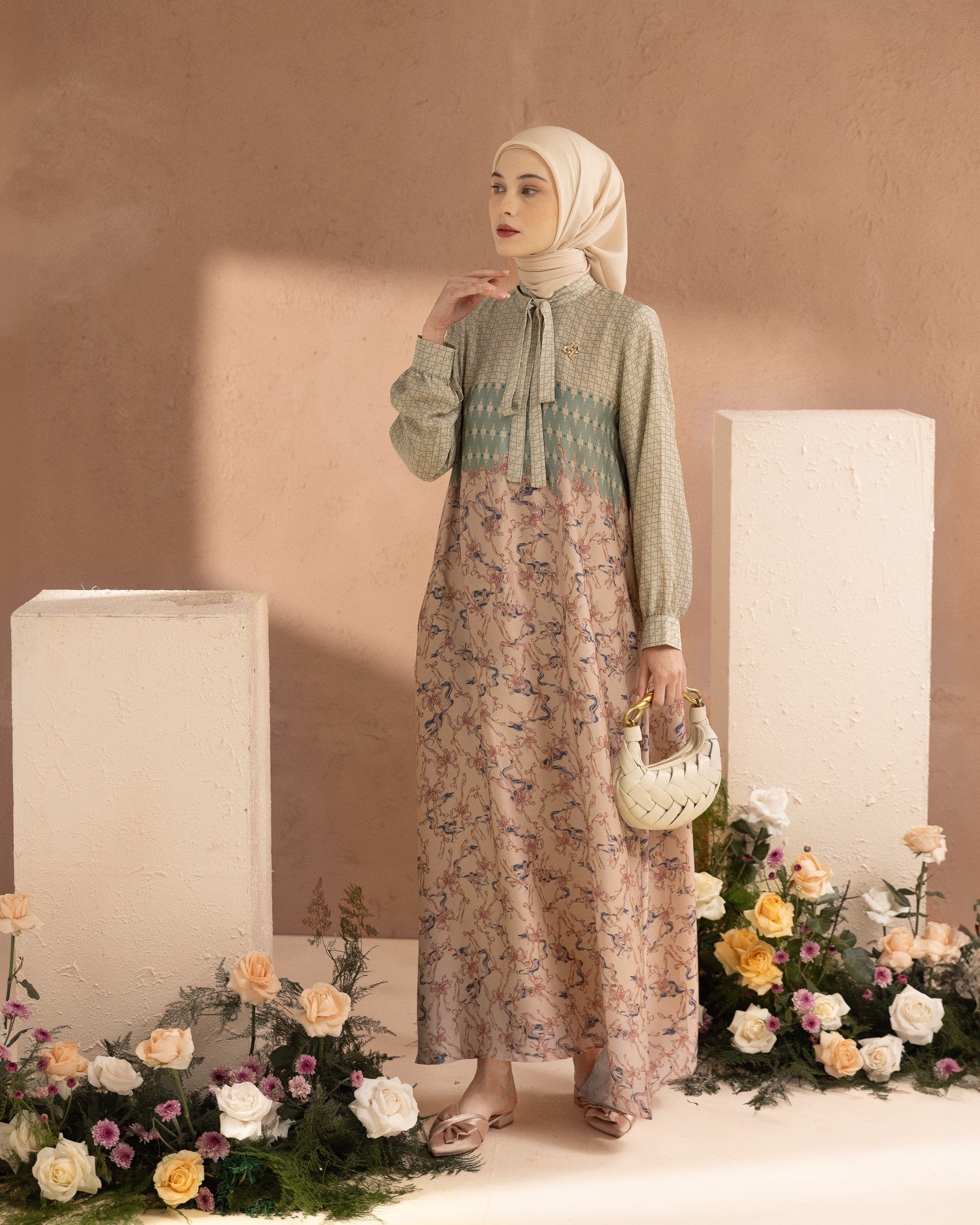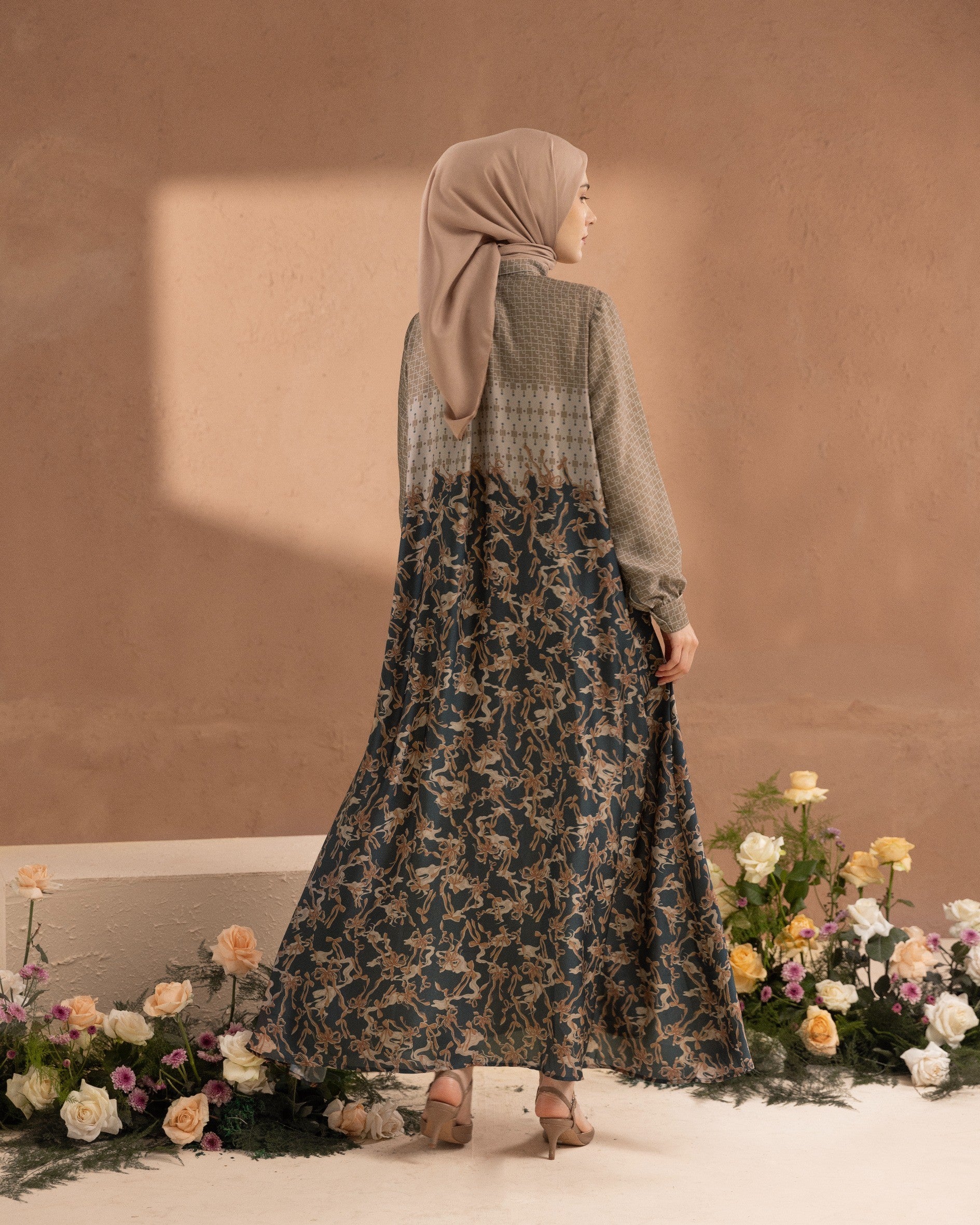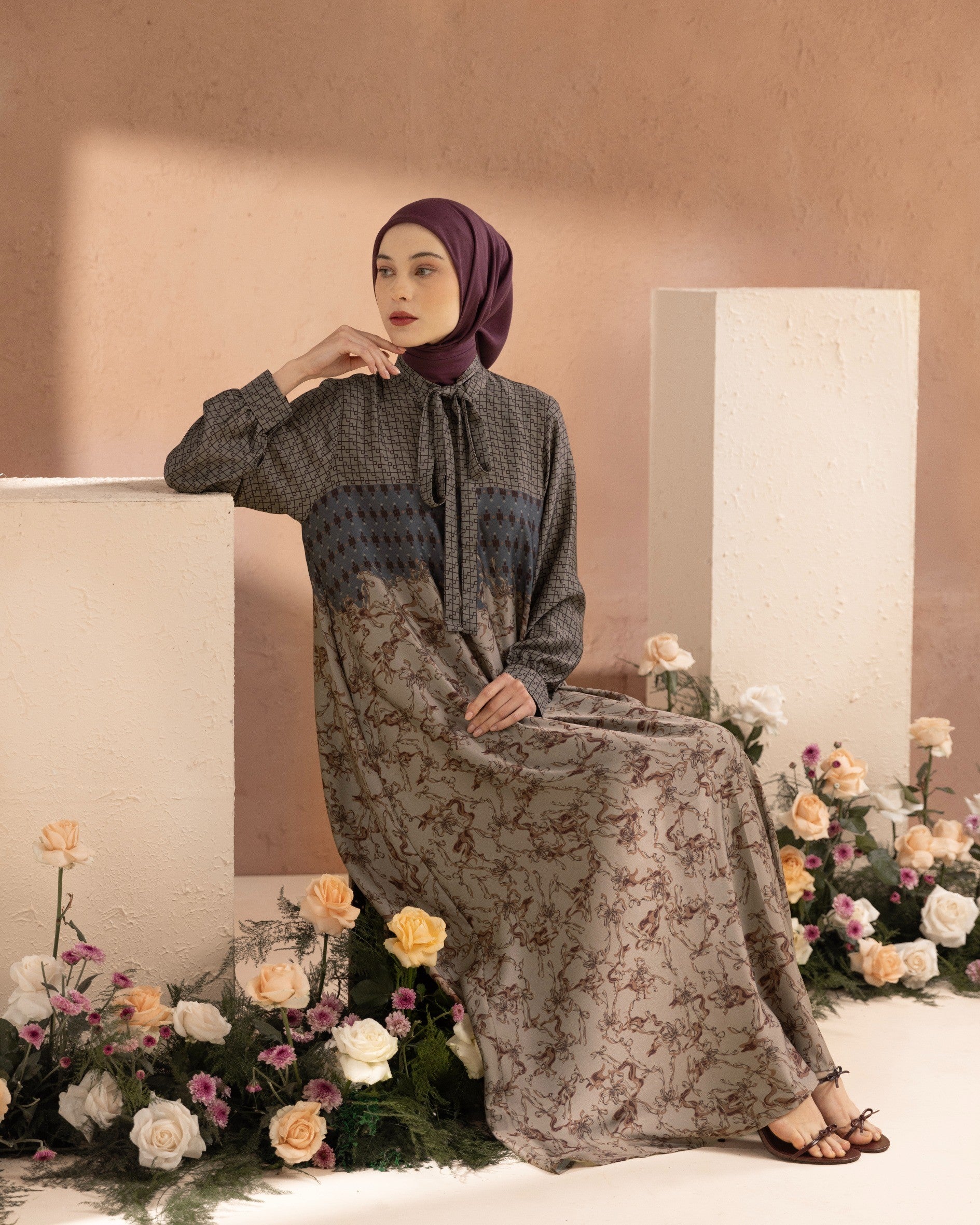 Kian memesona nan elegan dengan Maureen Dress dari Heaven Lights. Long printed dress dengan kerah shanghai, resleting di bagian depan yang busui-friendly, serta puff sleeve yang mewah. Kombinasi pattern-nya cantik dan memberikan kesan classy. Bahannya yang ringan, adem, dan tidak gampang kusut. Dilengkapi tali depan yang percantik tampilan.