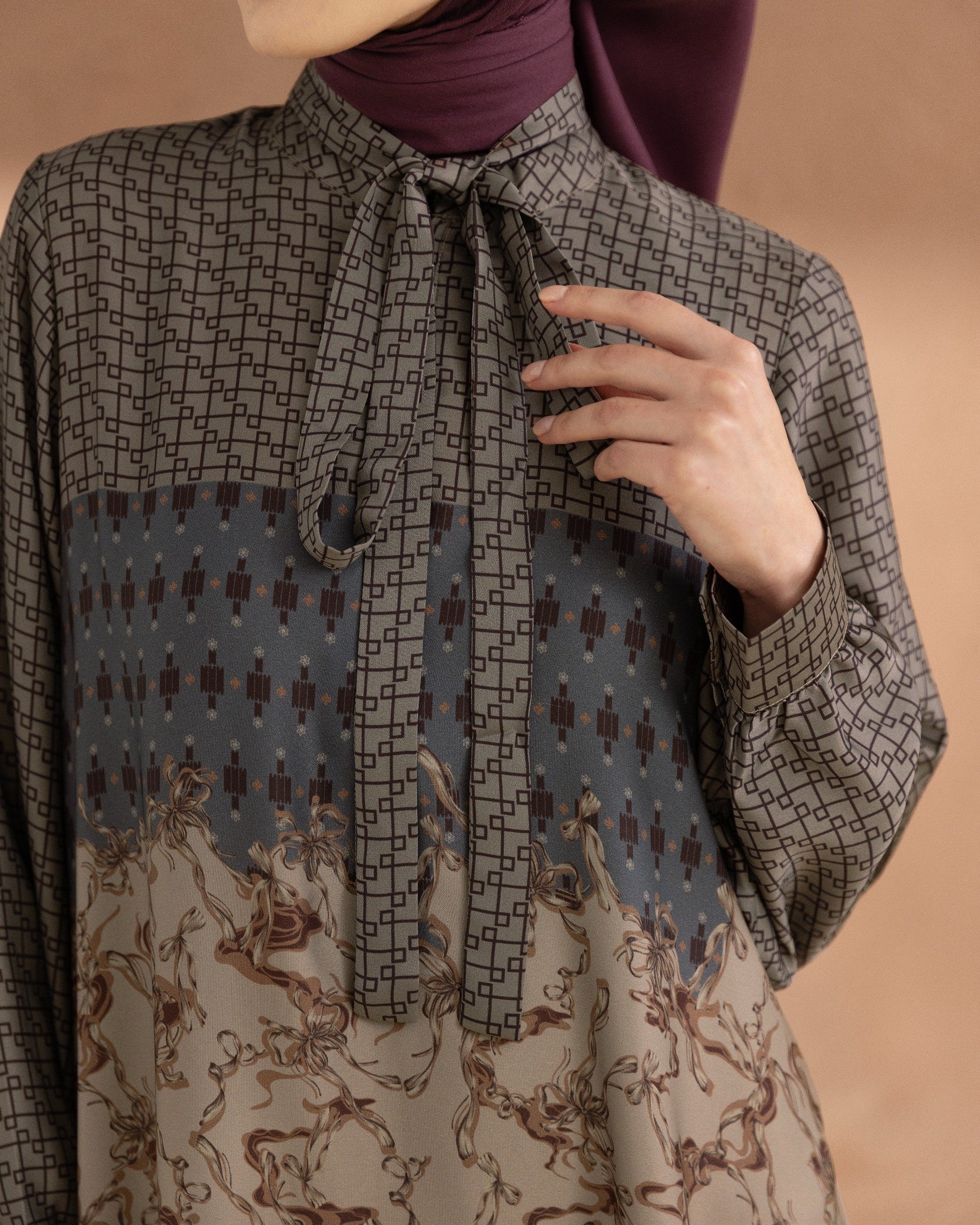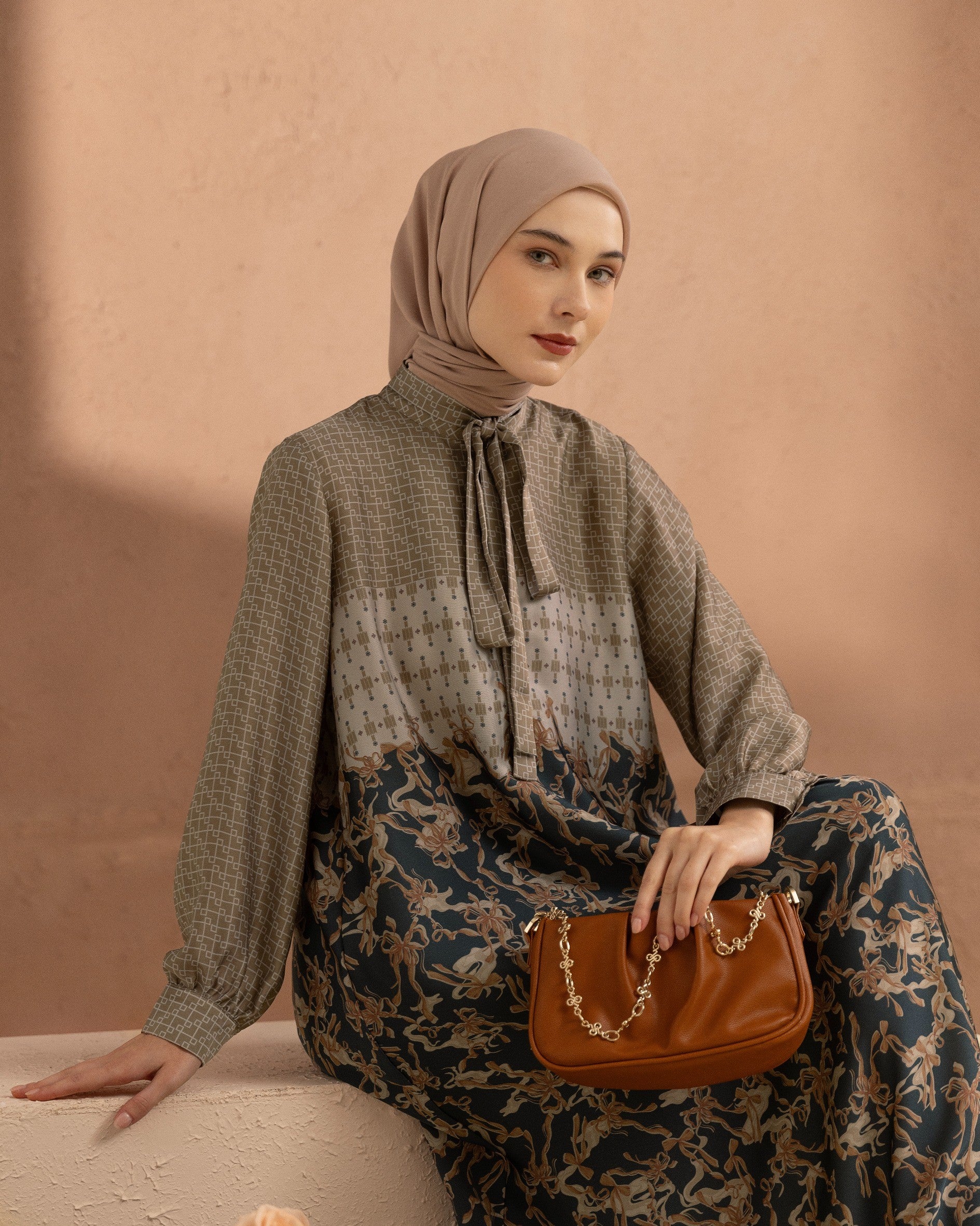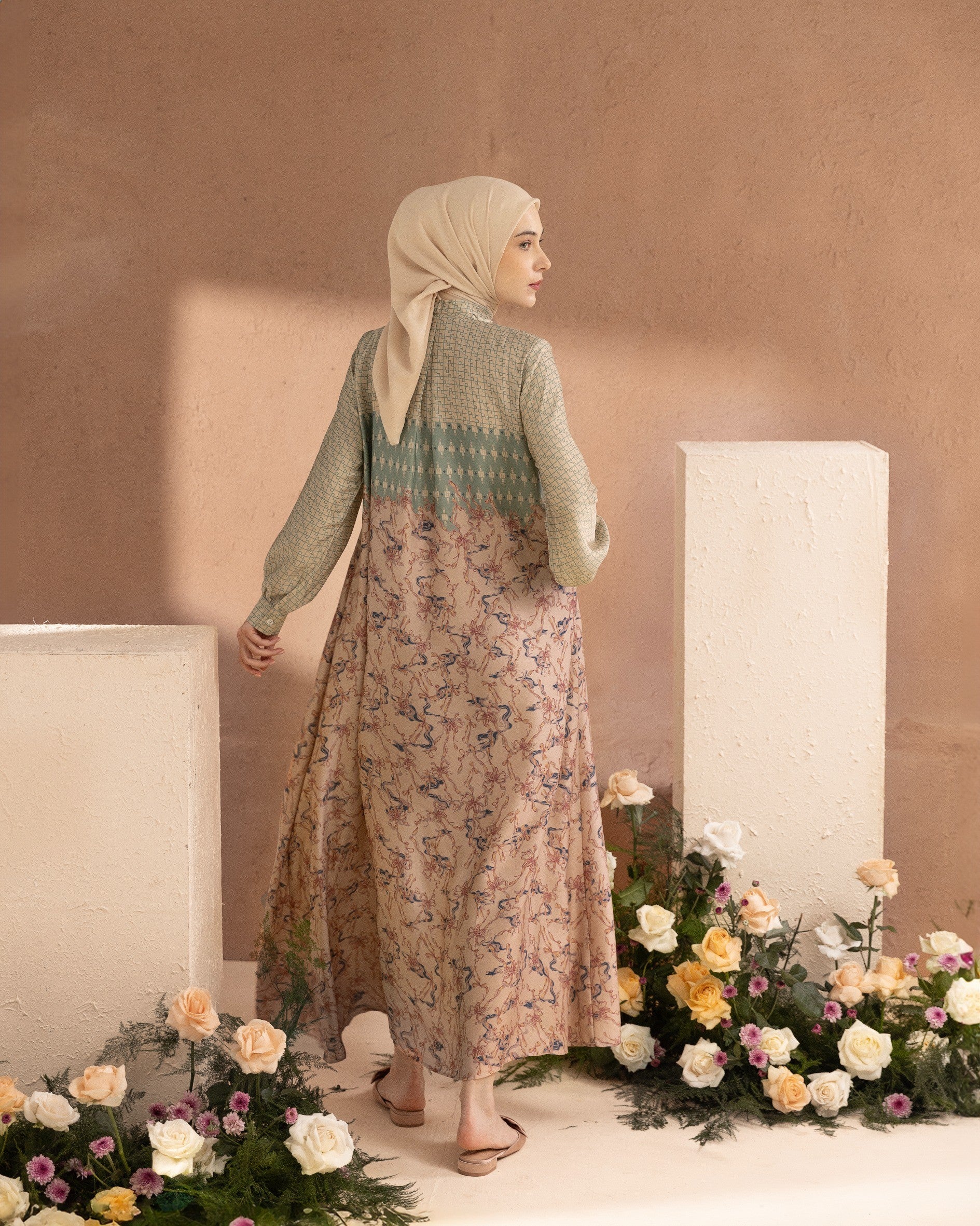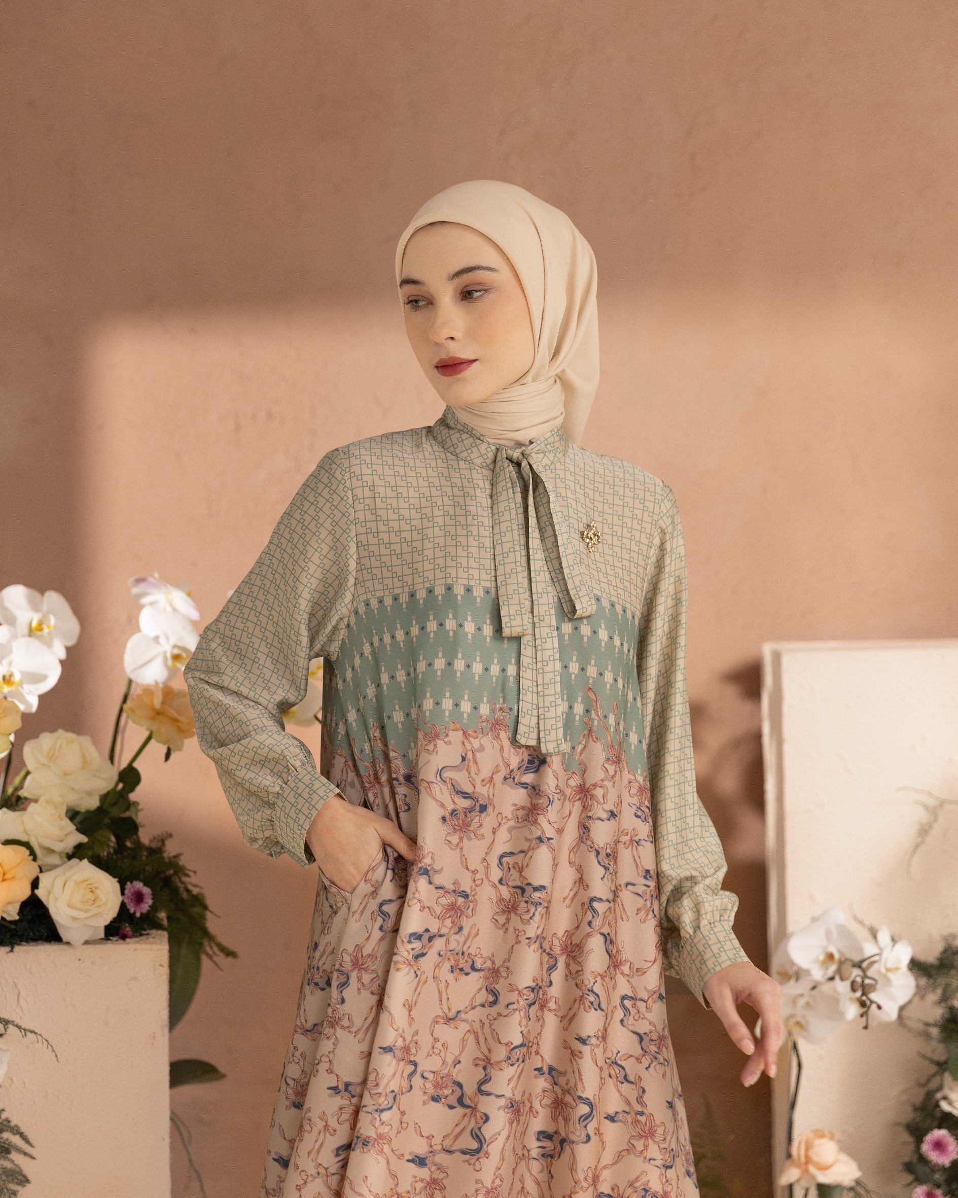 Kian memesona nan elegan dengan Maureen Dress dari Heaven Lights. Long printed dress dengan kerah shanghai, resleting di bagian depan yang busui-friendly, serta puff sleeve yang mewah. Kombinasi pattern-nya cantik dan memberikan kesan classy. Bahannya yang ringan, adem, dan tidak gampang kusut. Dilengkapi tali depan yang percantik tampilan.