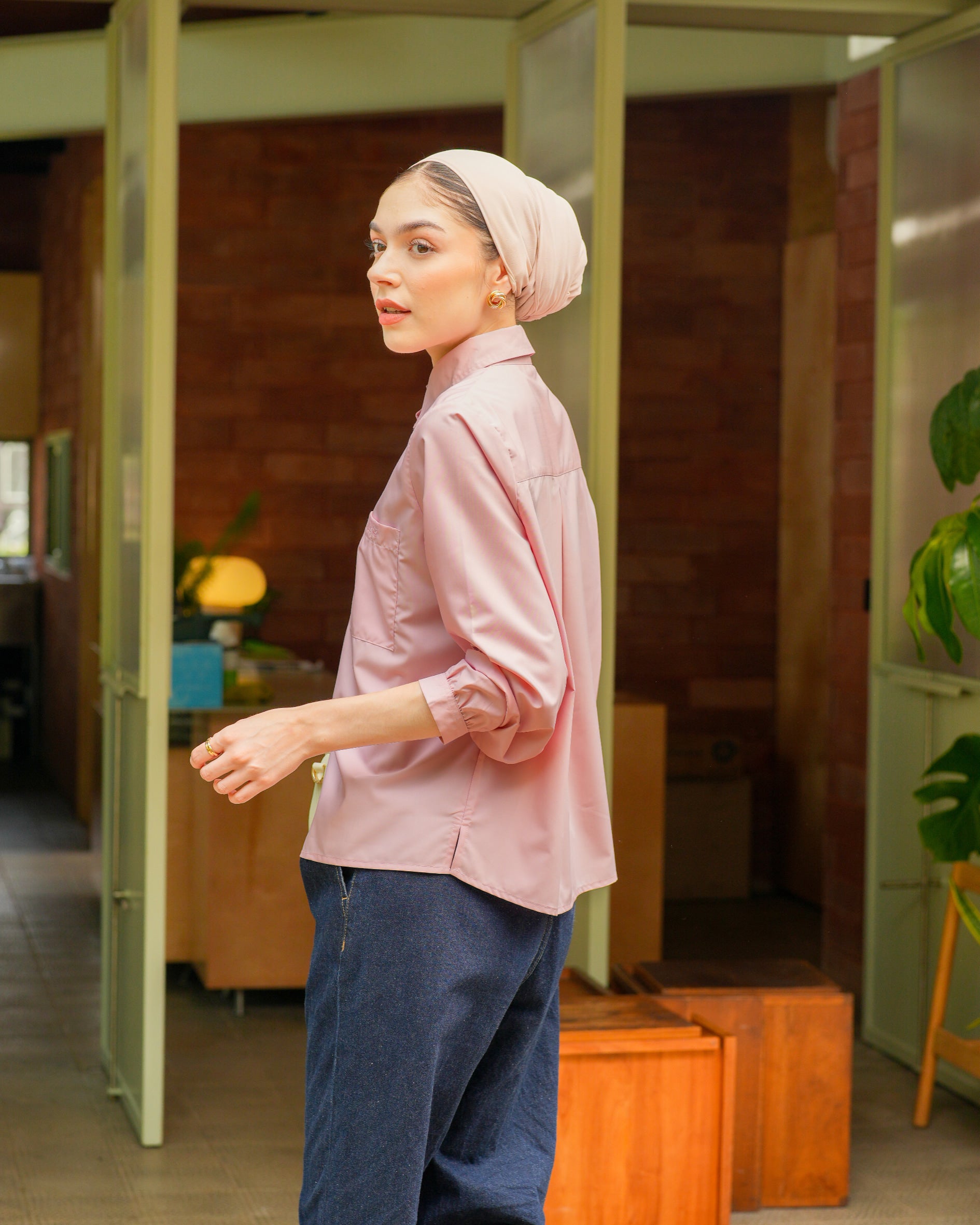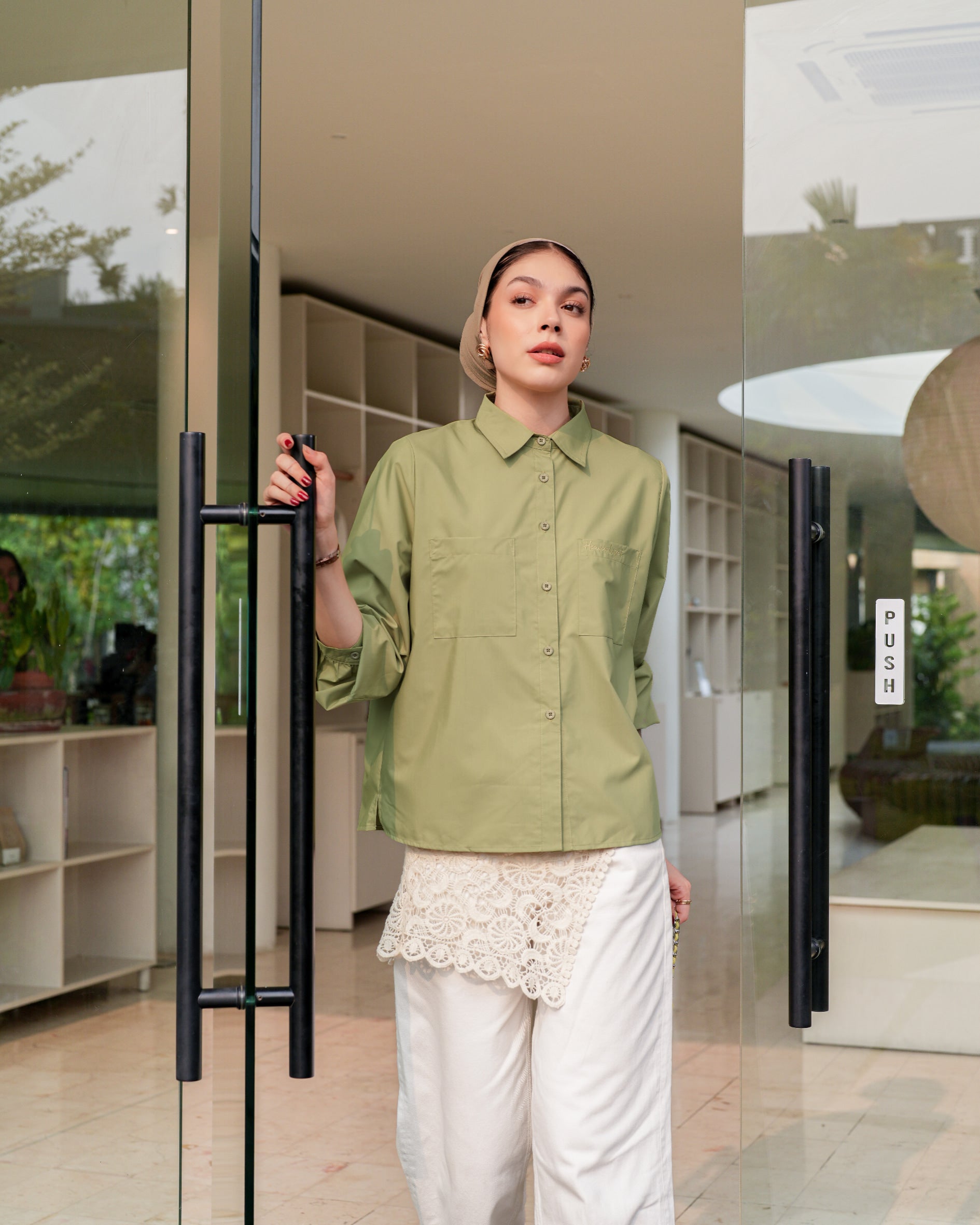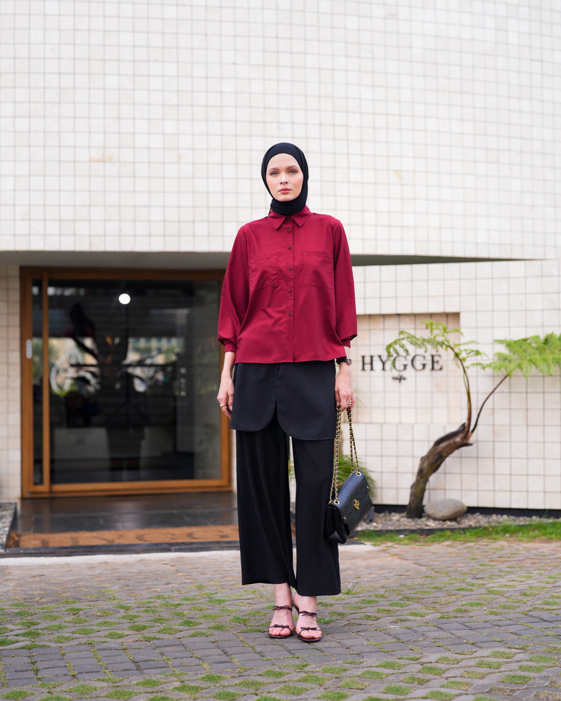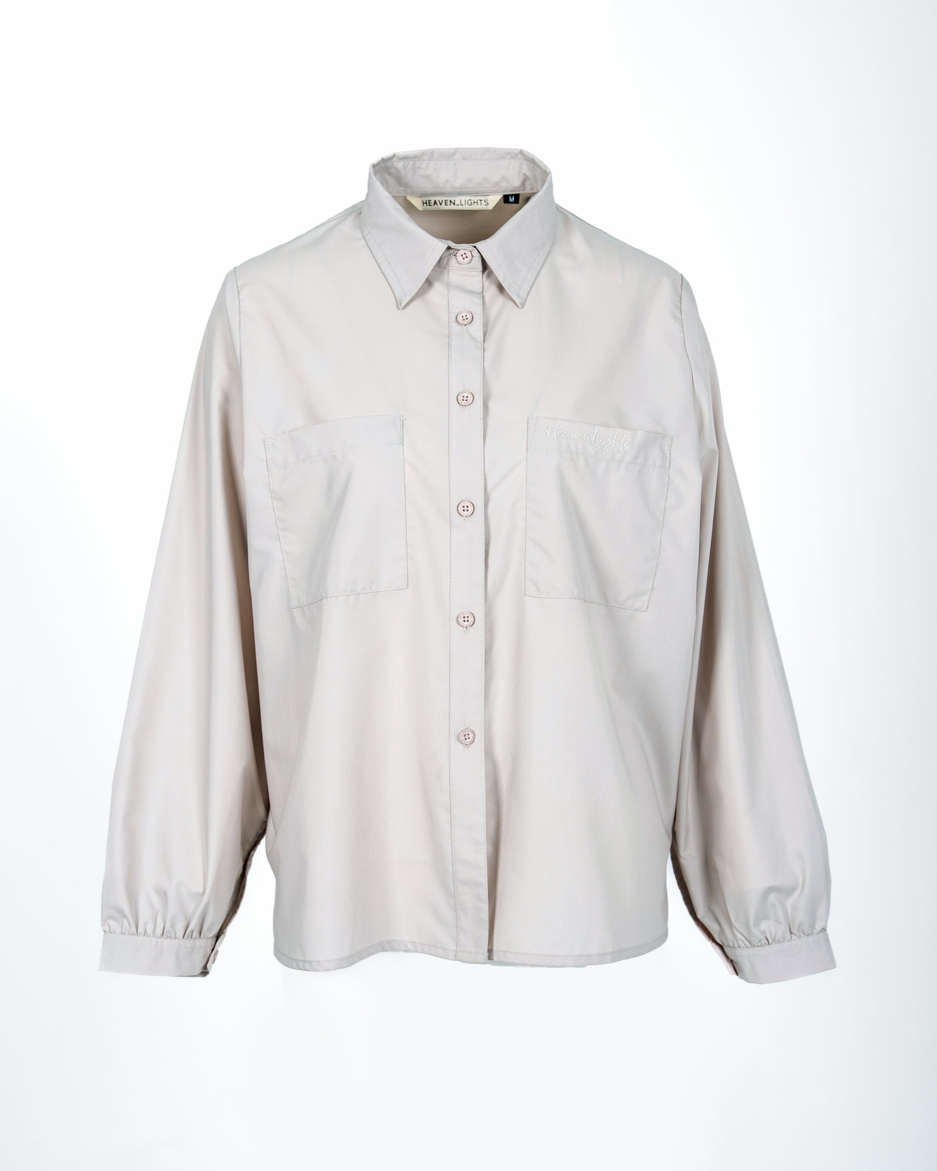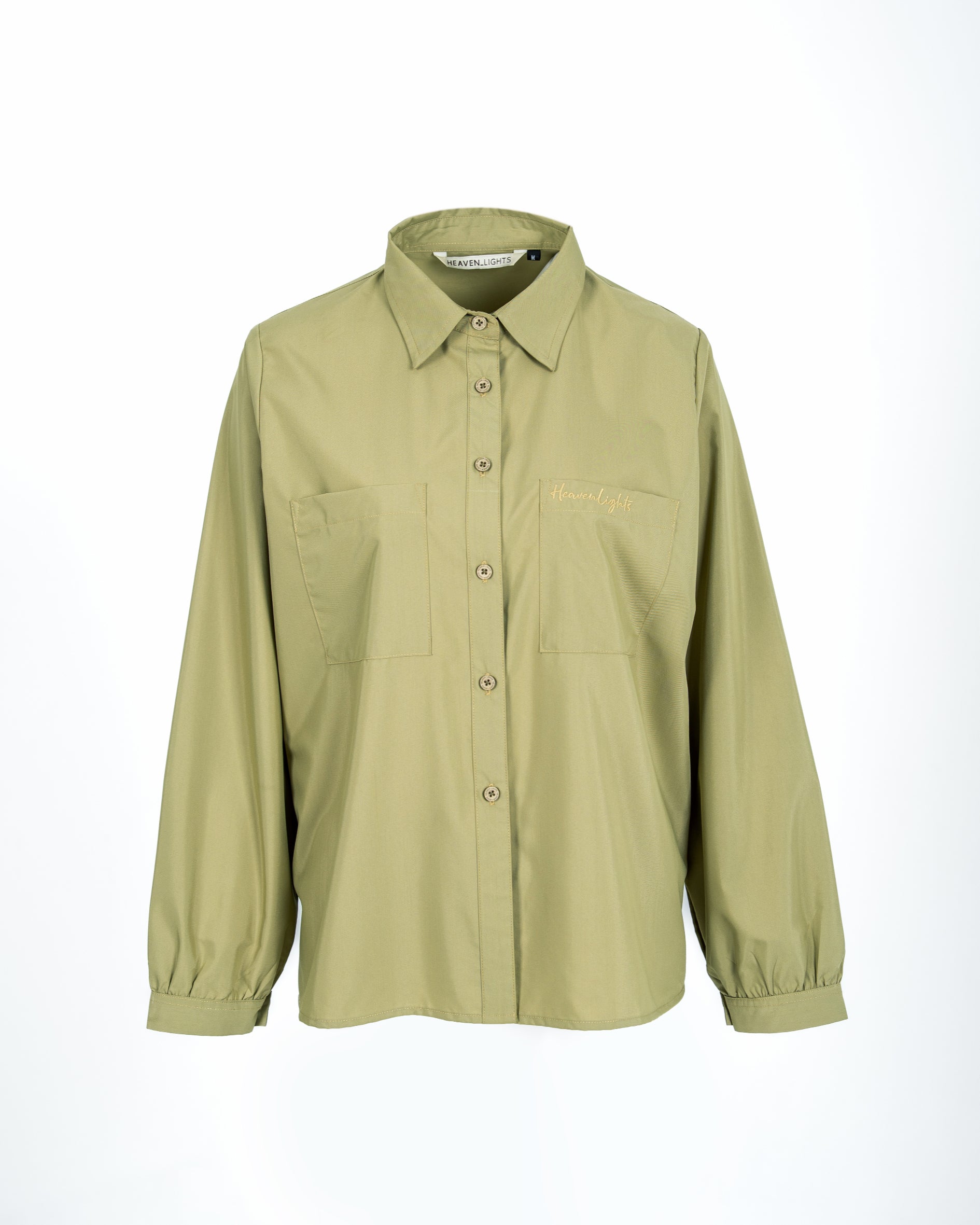 Beri kesan simply stylish dalam koleksi Melva Shirt dari Heaven Lights. Kemeja polos dengan perpaduan detail kancing depan dan kantong depan serta aksen signature logo yang chic. Bahannya sangat ringan, nyaman dan tidak panas.