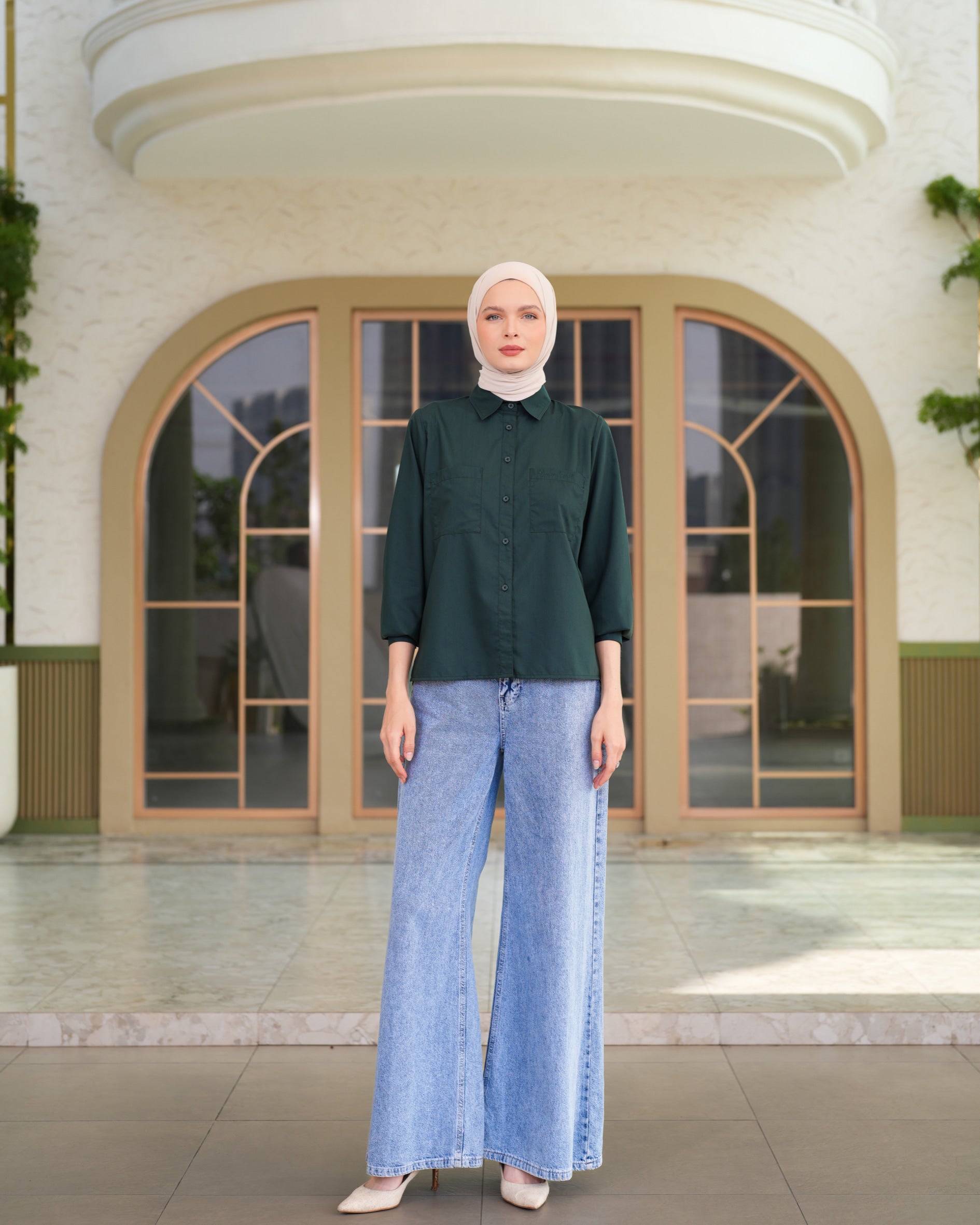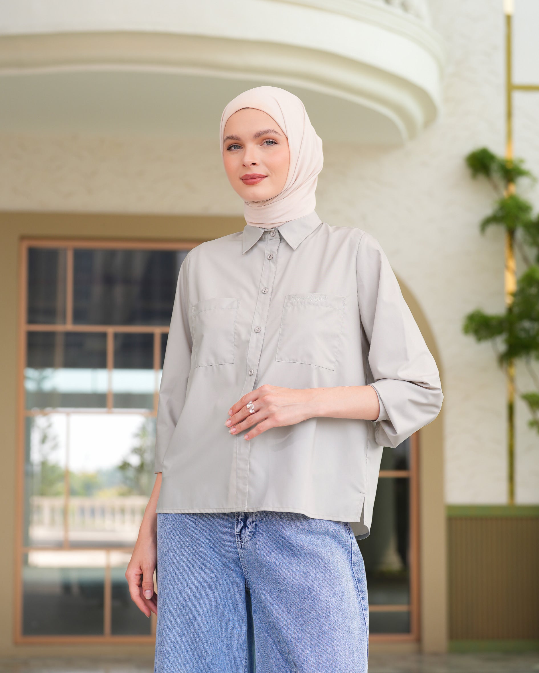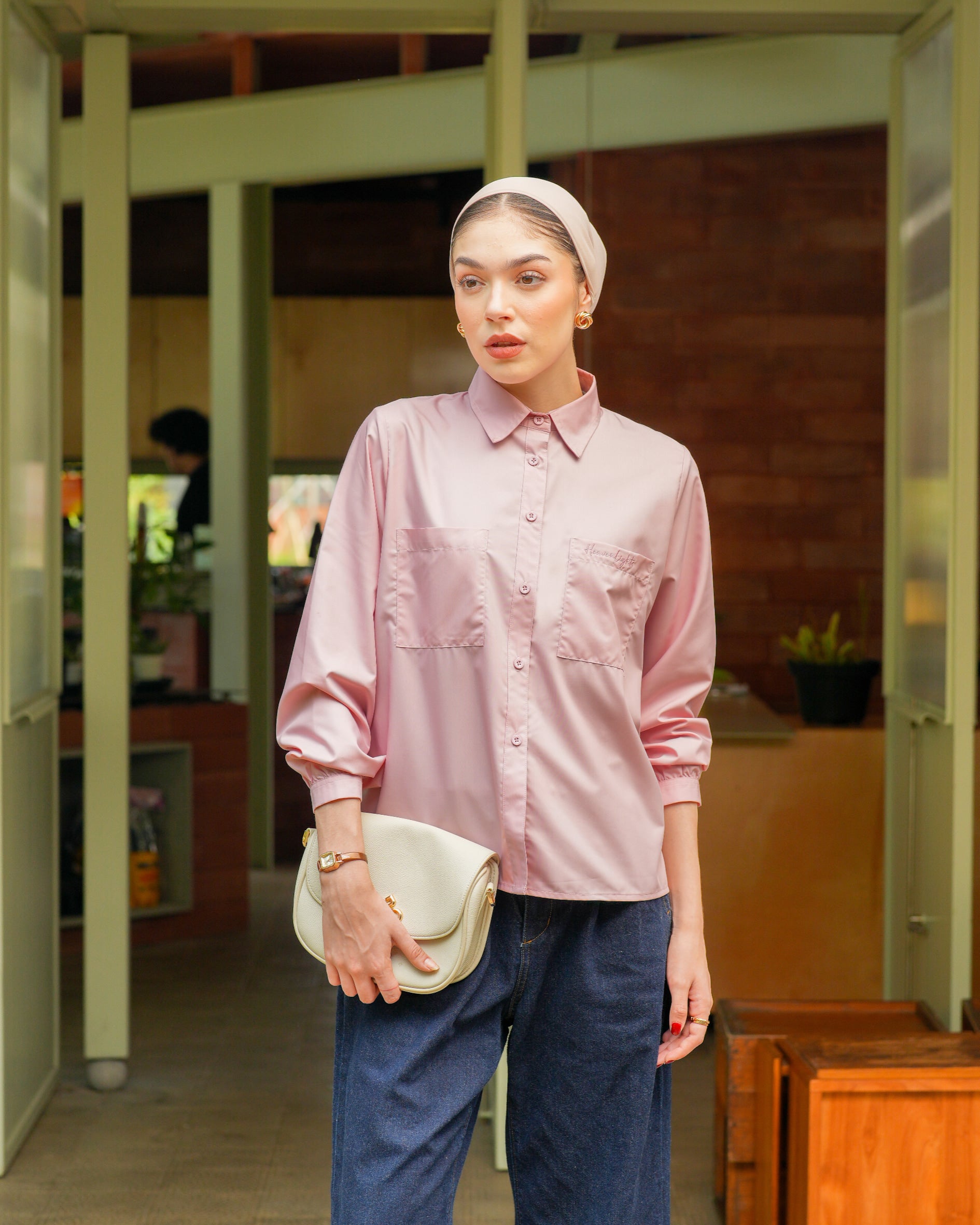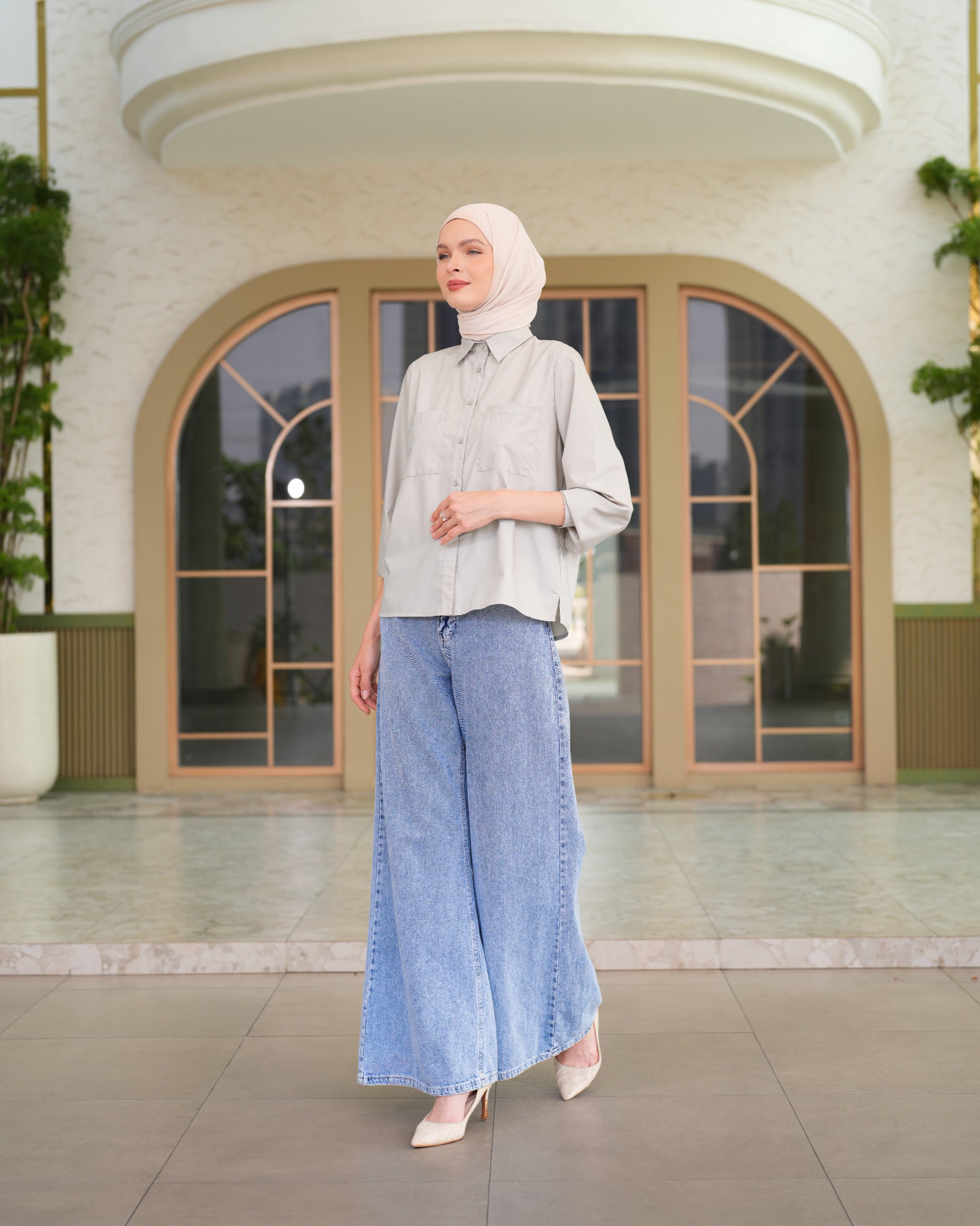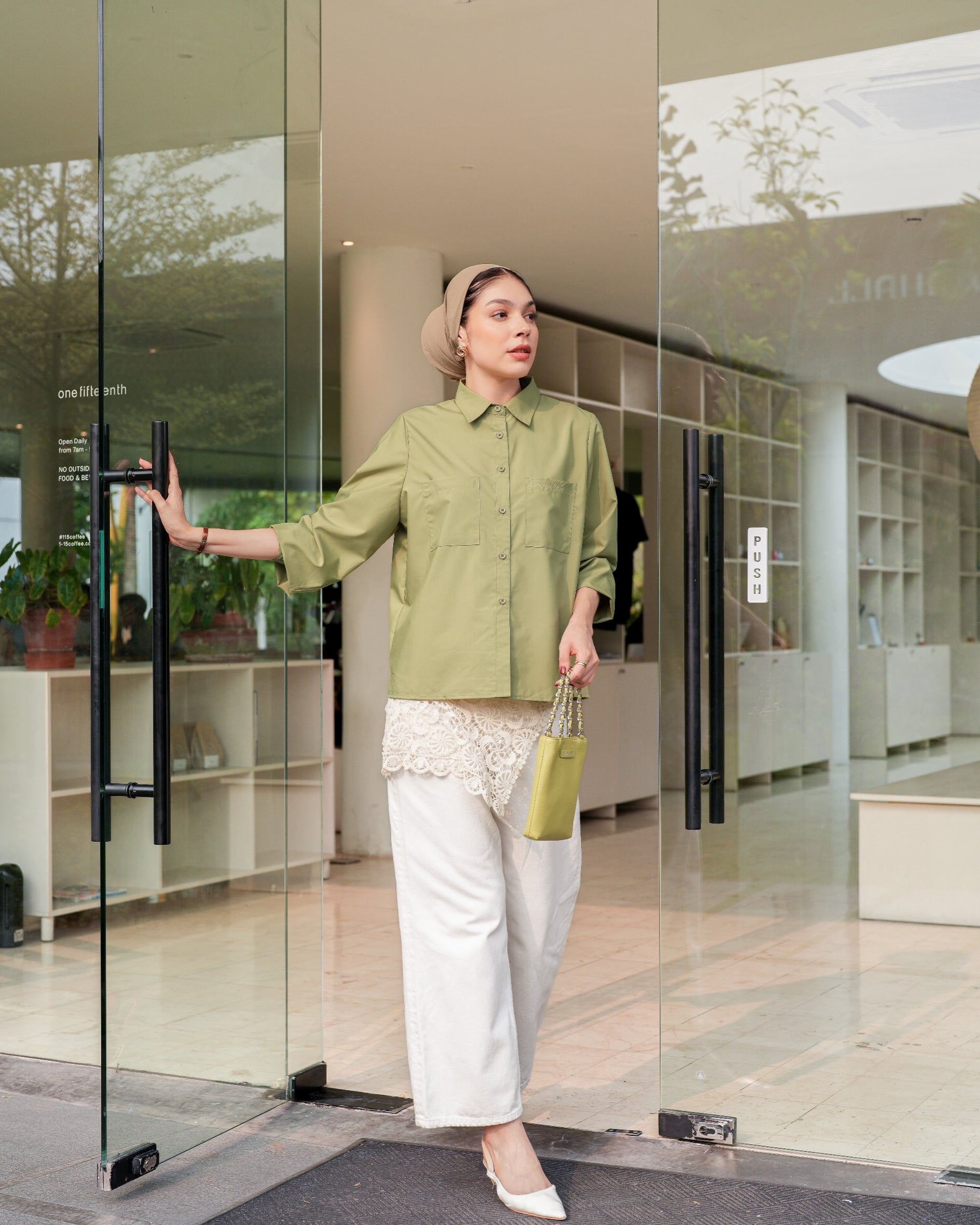 Beri kesan simply stylish dalam koleksi Melva Shirt dari Heaven Lights. Kemeja polos dengan perpaduan detail kancing depan dan kantong depan serta aksen signature logo yang chic. Bahannya sangat ringan, nyaman dan tidak panas.