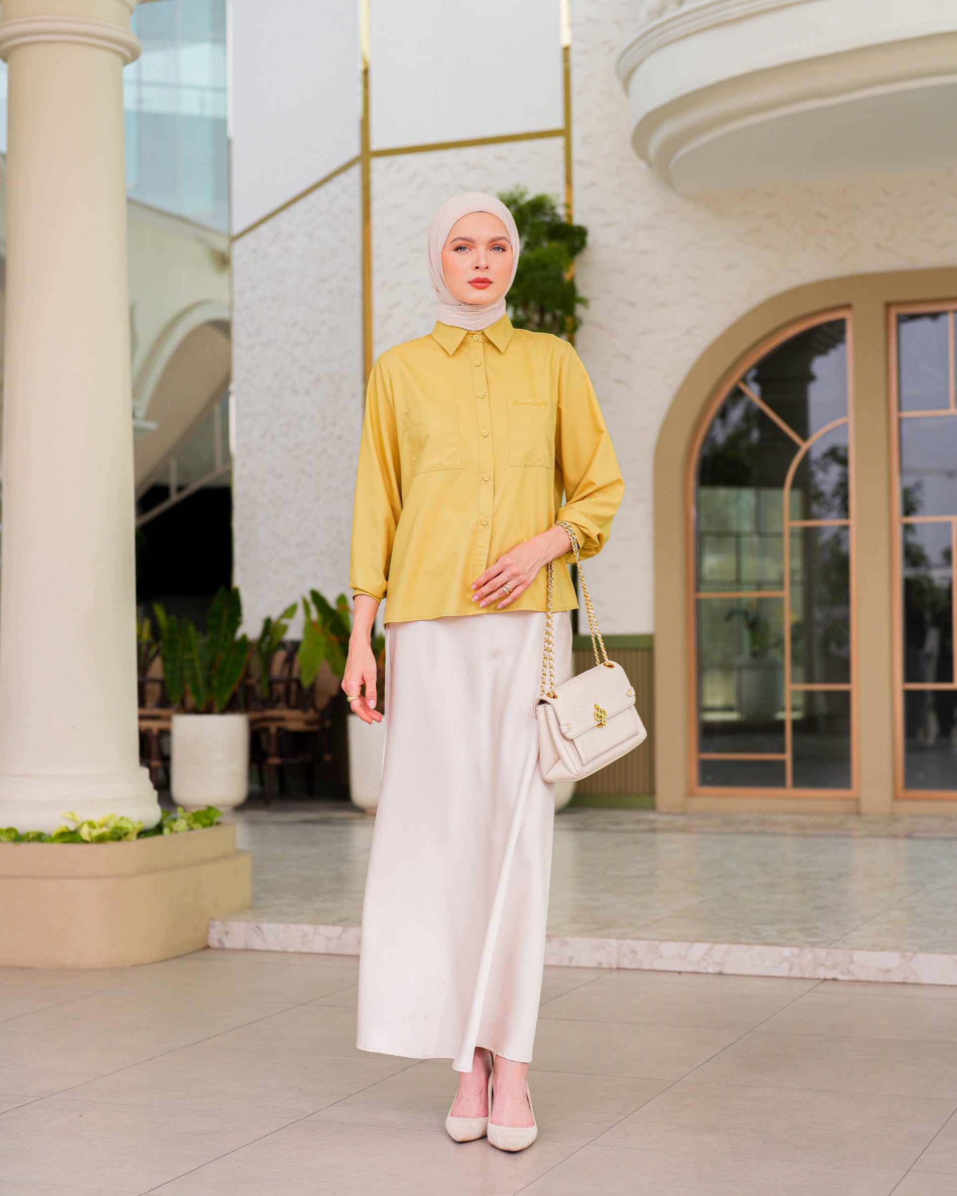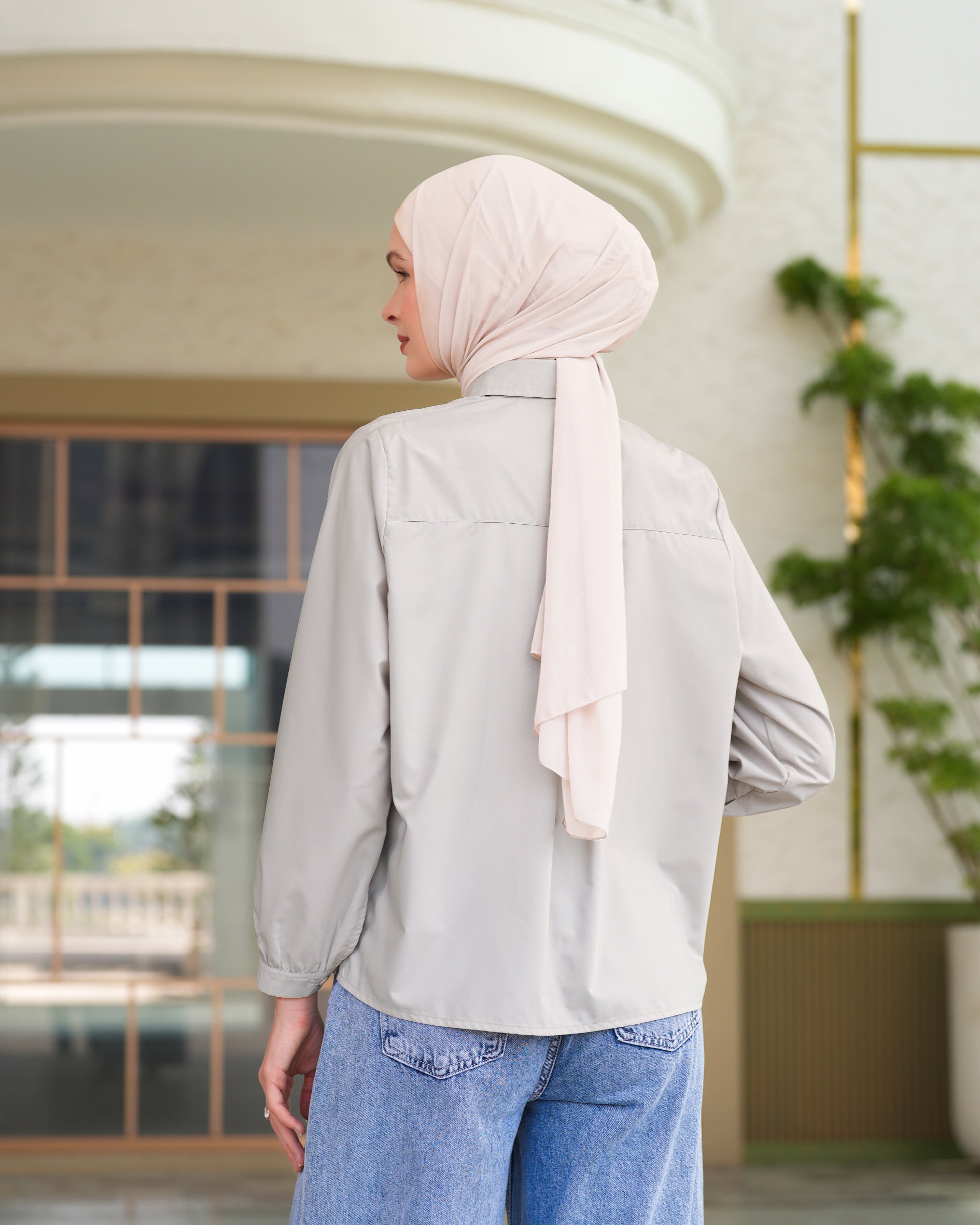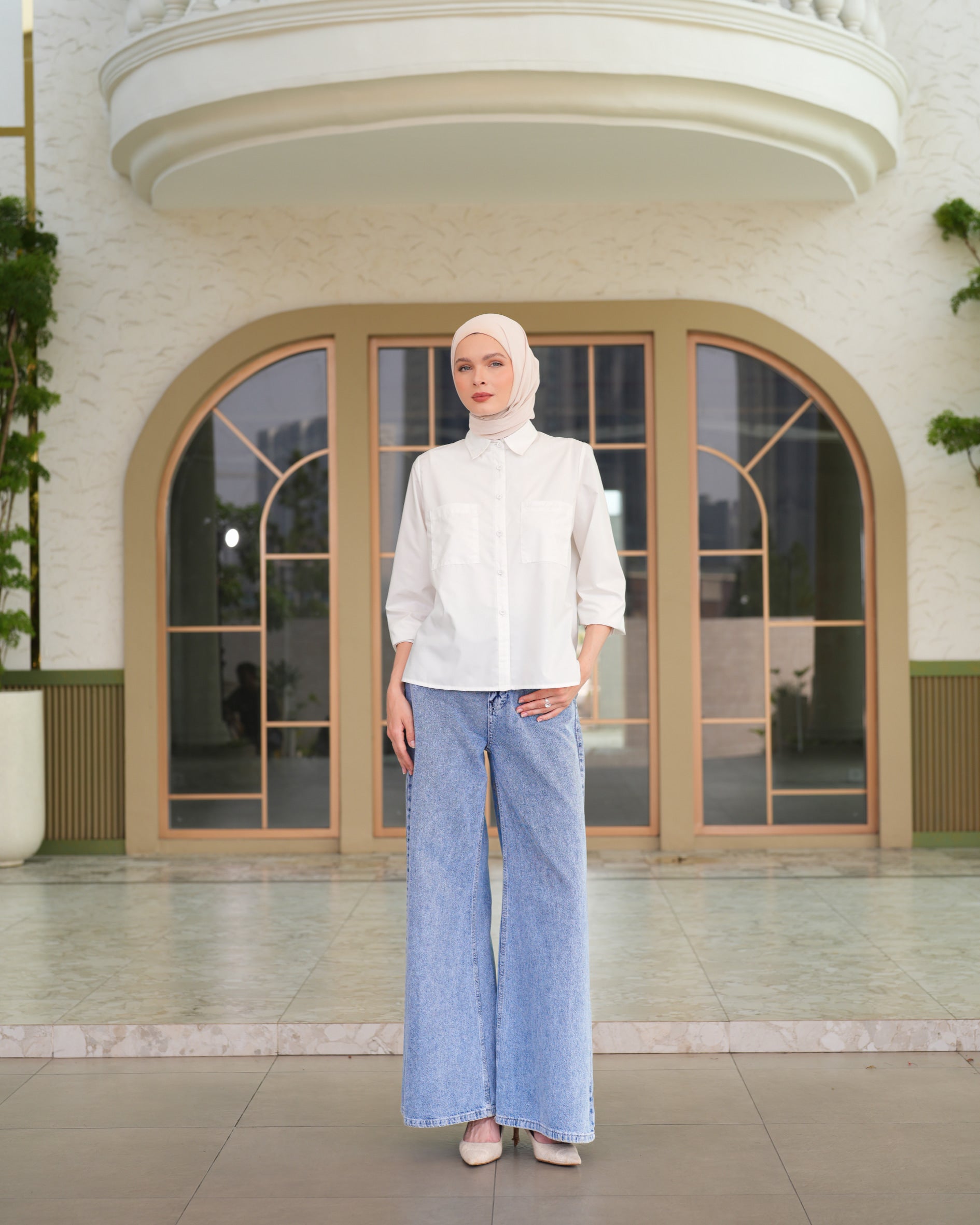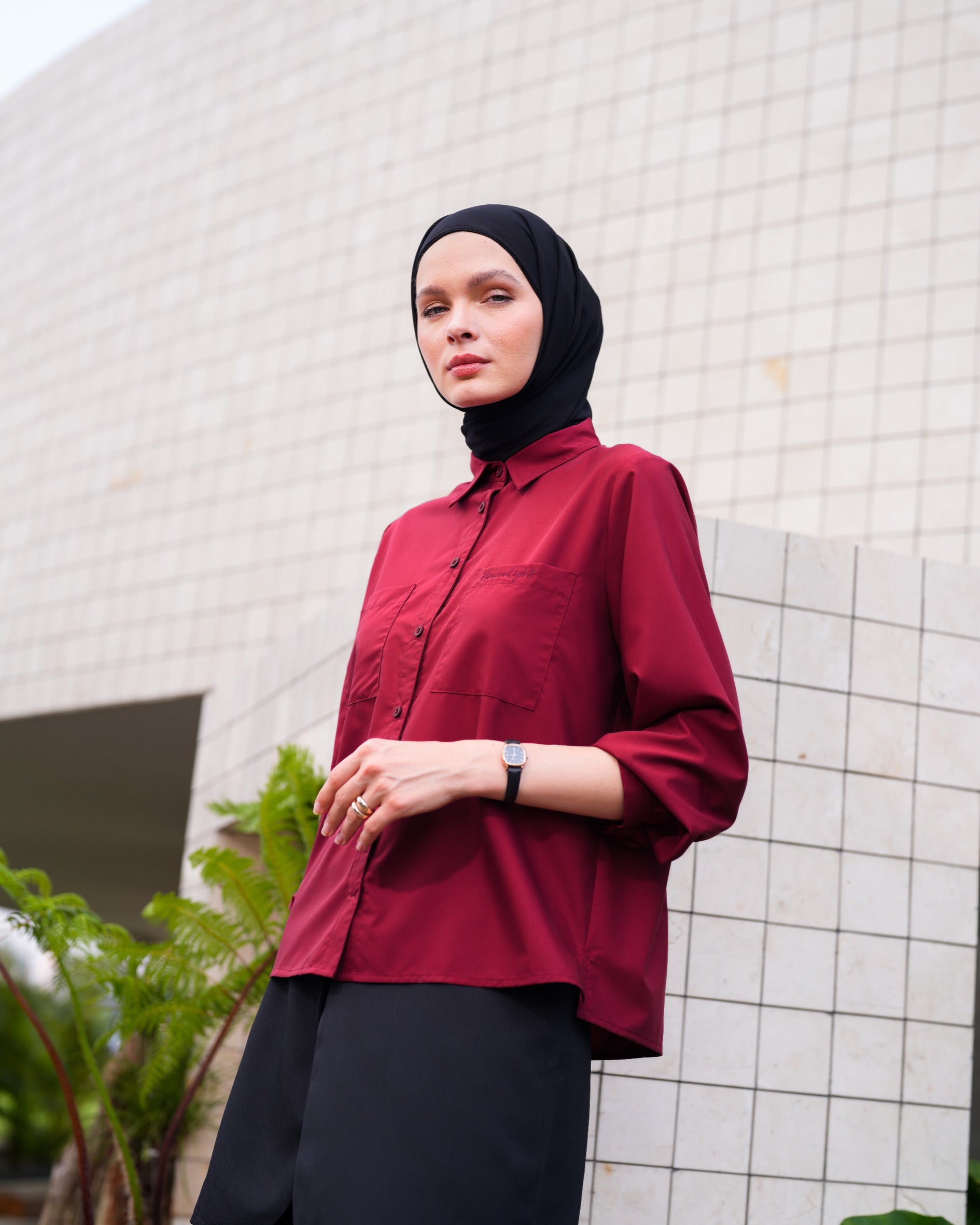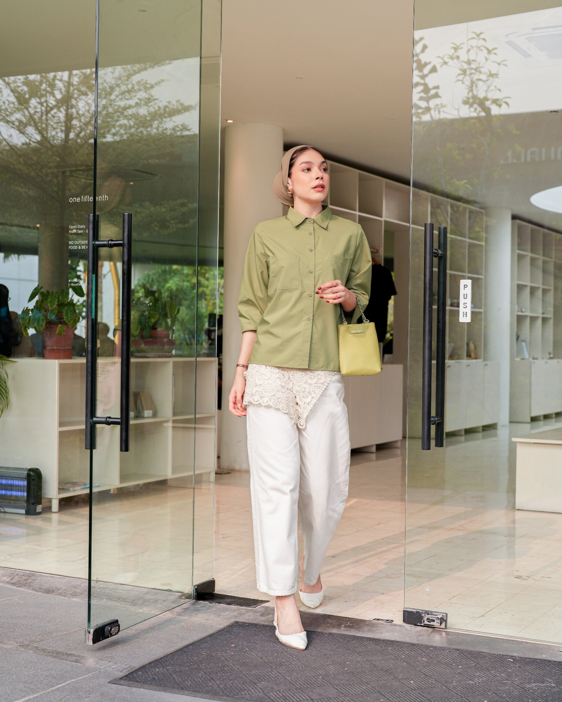 Beri kesan simply stylish dalam koleksi Melva Shirt dari Heaven Lights. Kemeja polos dengan perpaduan detail kancing depan dan kantong depan serta aksen signature logo yang chic. Bahannya sangat ringan, nyaman dan tidak panas.