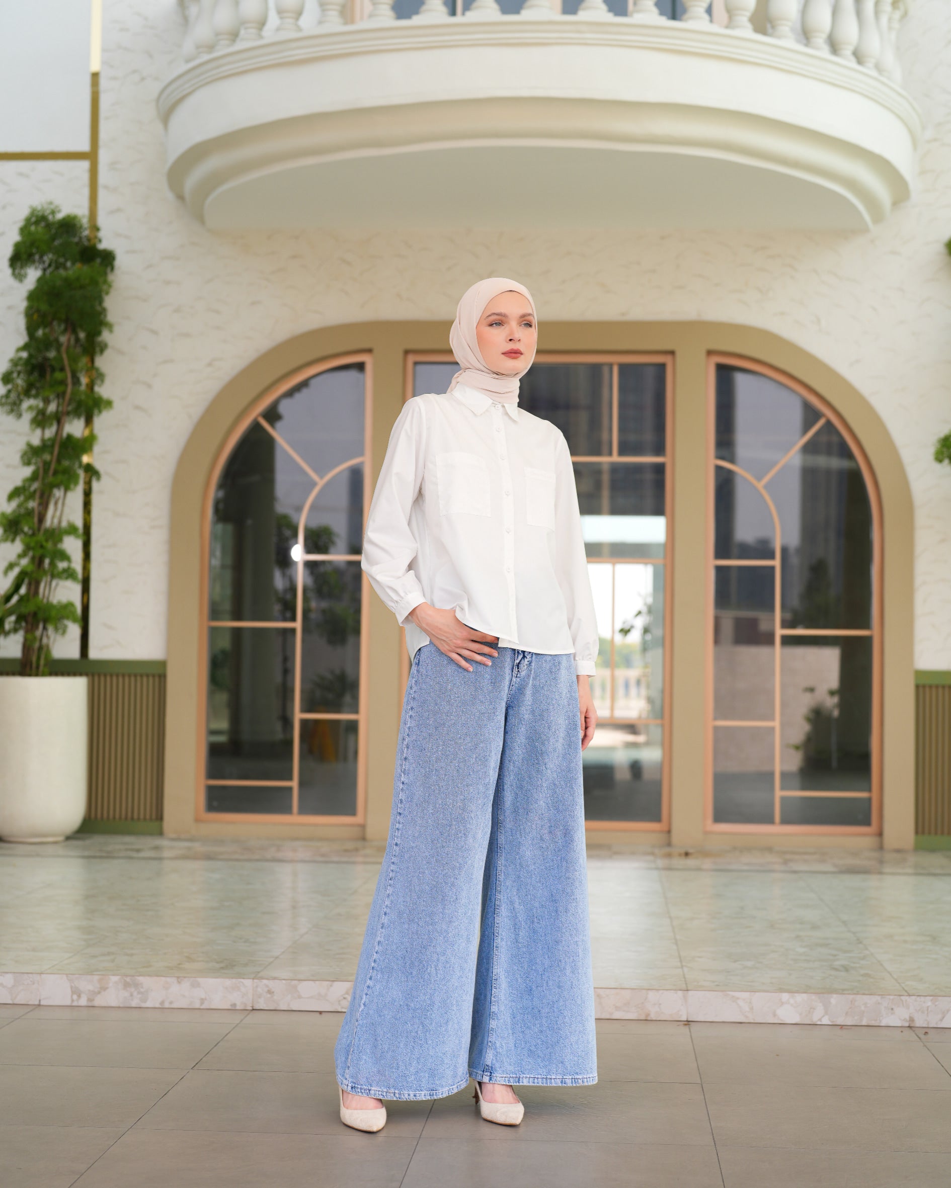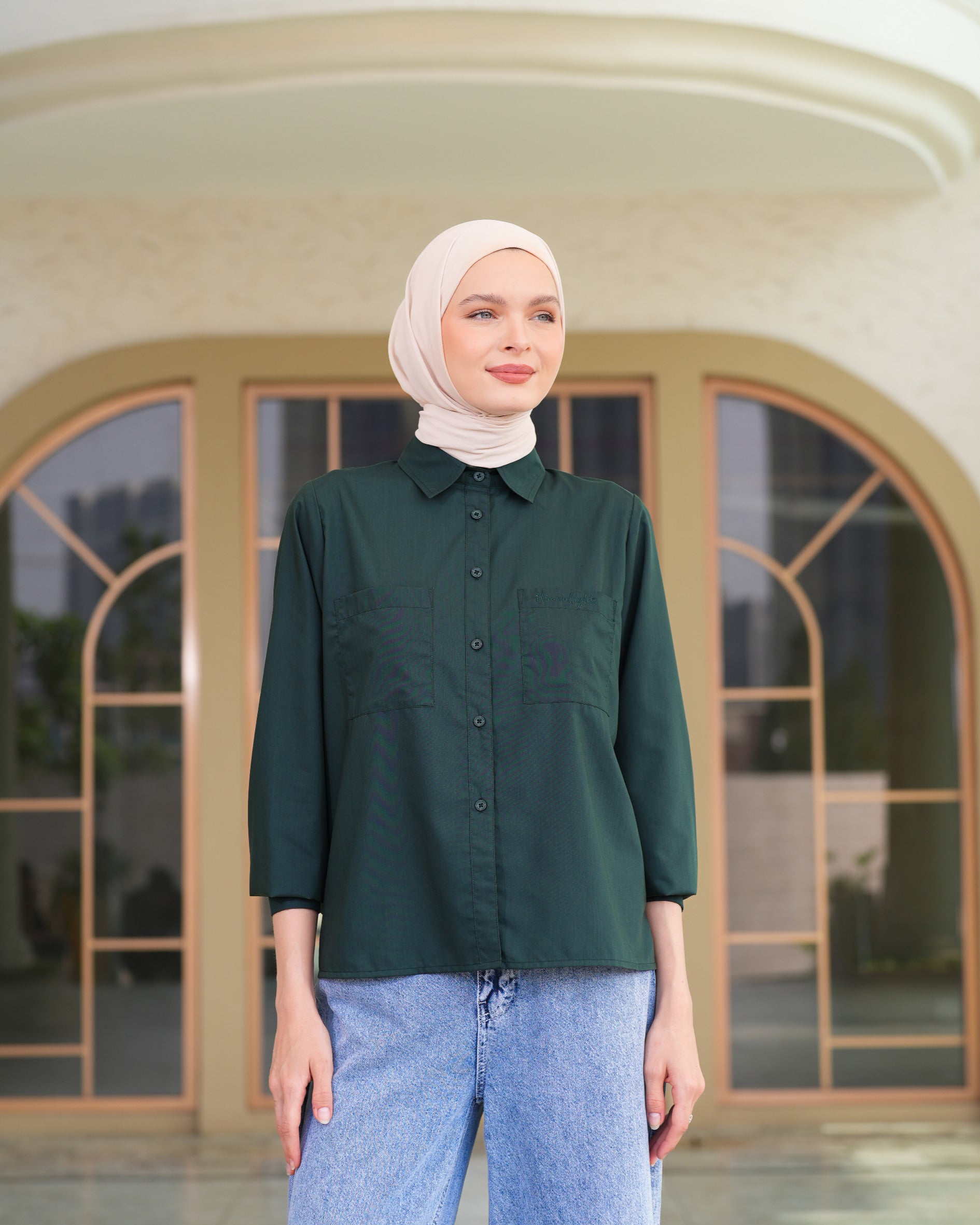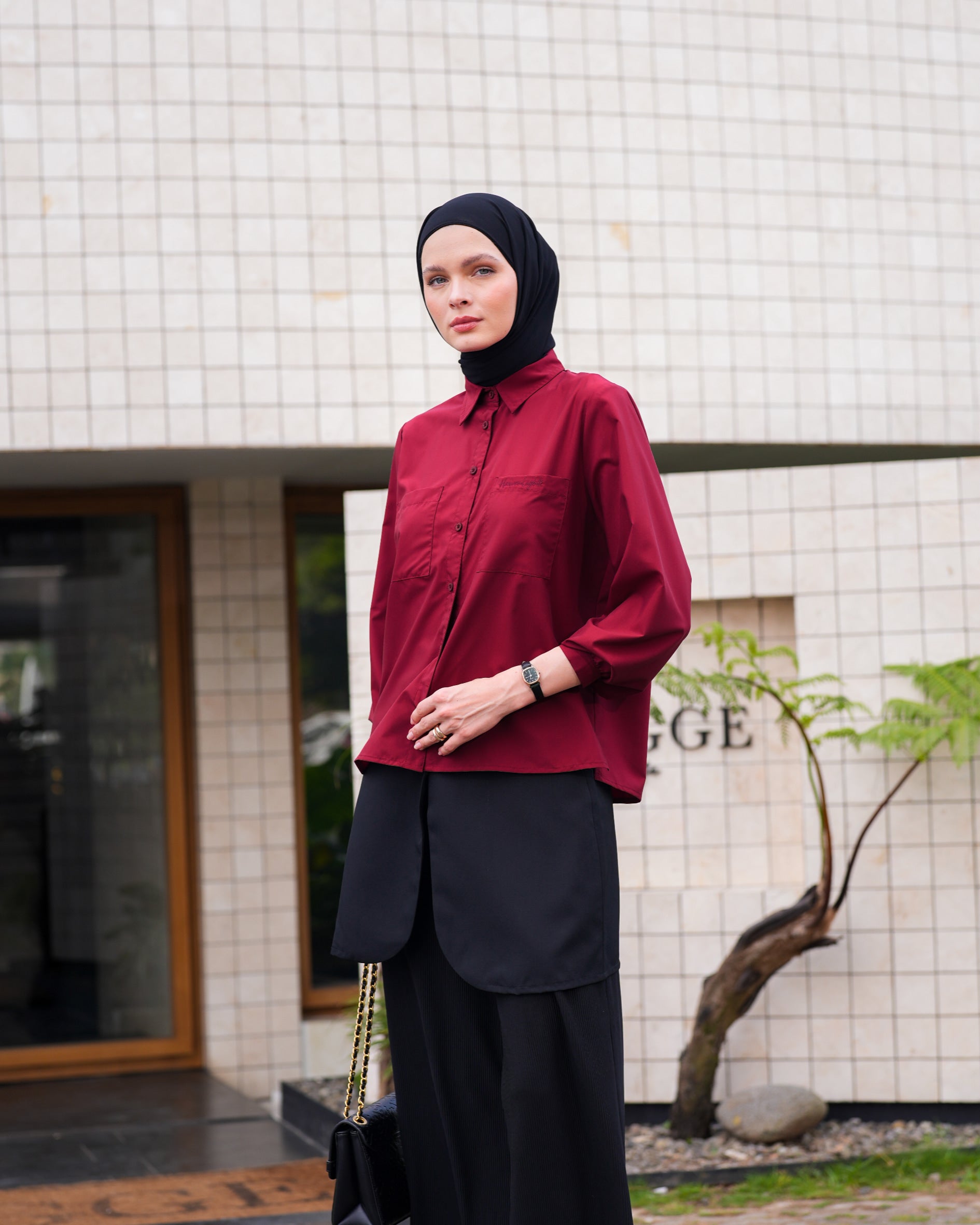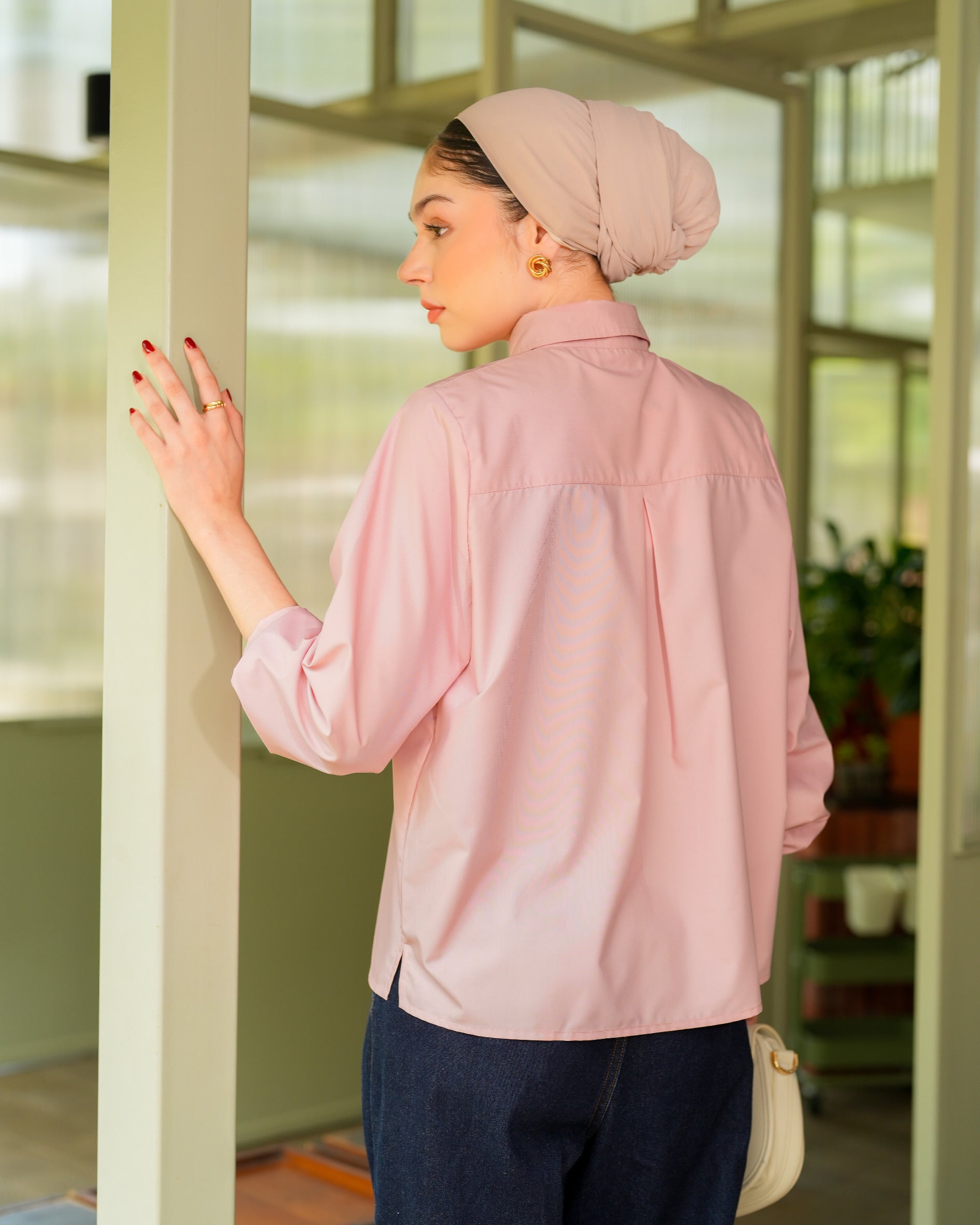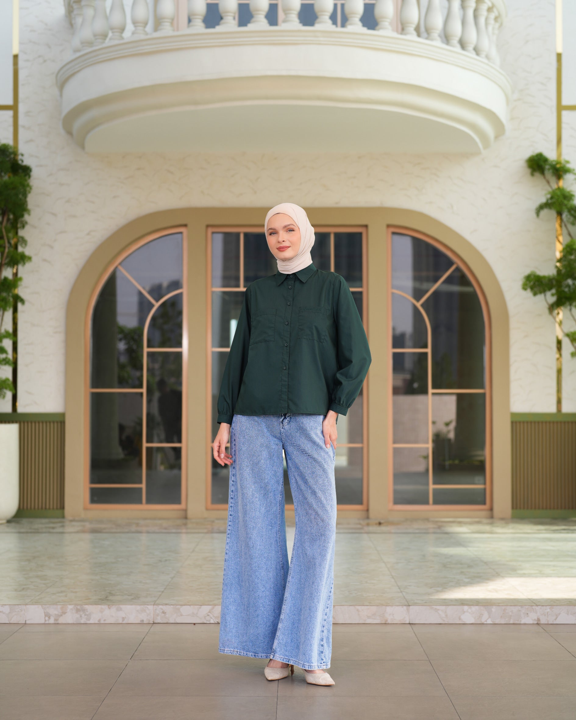 Beri kesan simply stylish dalam koleksi Melva Shirt dari Heaven Lights. Kemeja polos dengan perpaduan detail kancing depan dan kantong depan serta aksen signature logo yang chic. Bahannya sangat ringan, nyaman dan tidak panas.