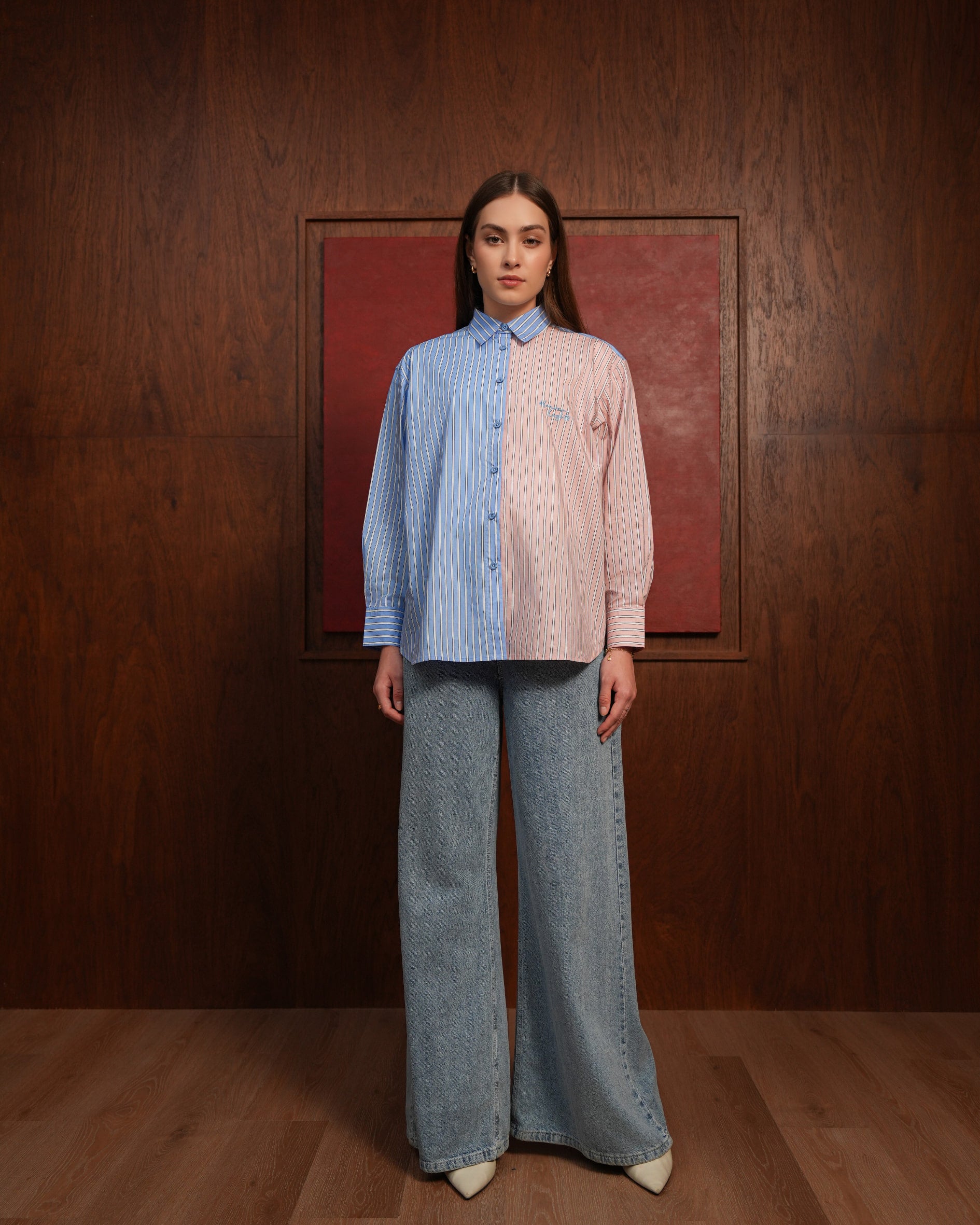 Berikan super chic untuk gaya sehari-hari dengan Rayla Mix Shirt dari HL Lume. Kemeja dengan detail front button, kancing di bagian ujung lengan, sehingga busui dan wudhu friendly. Hadir dengan perpaduan motif garis dan two-tone cantik yang memberikan kesan manis. Bahannya terasa lembut, ringan, tidak gerah, dan tidak gampang kusut.