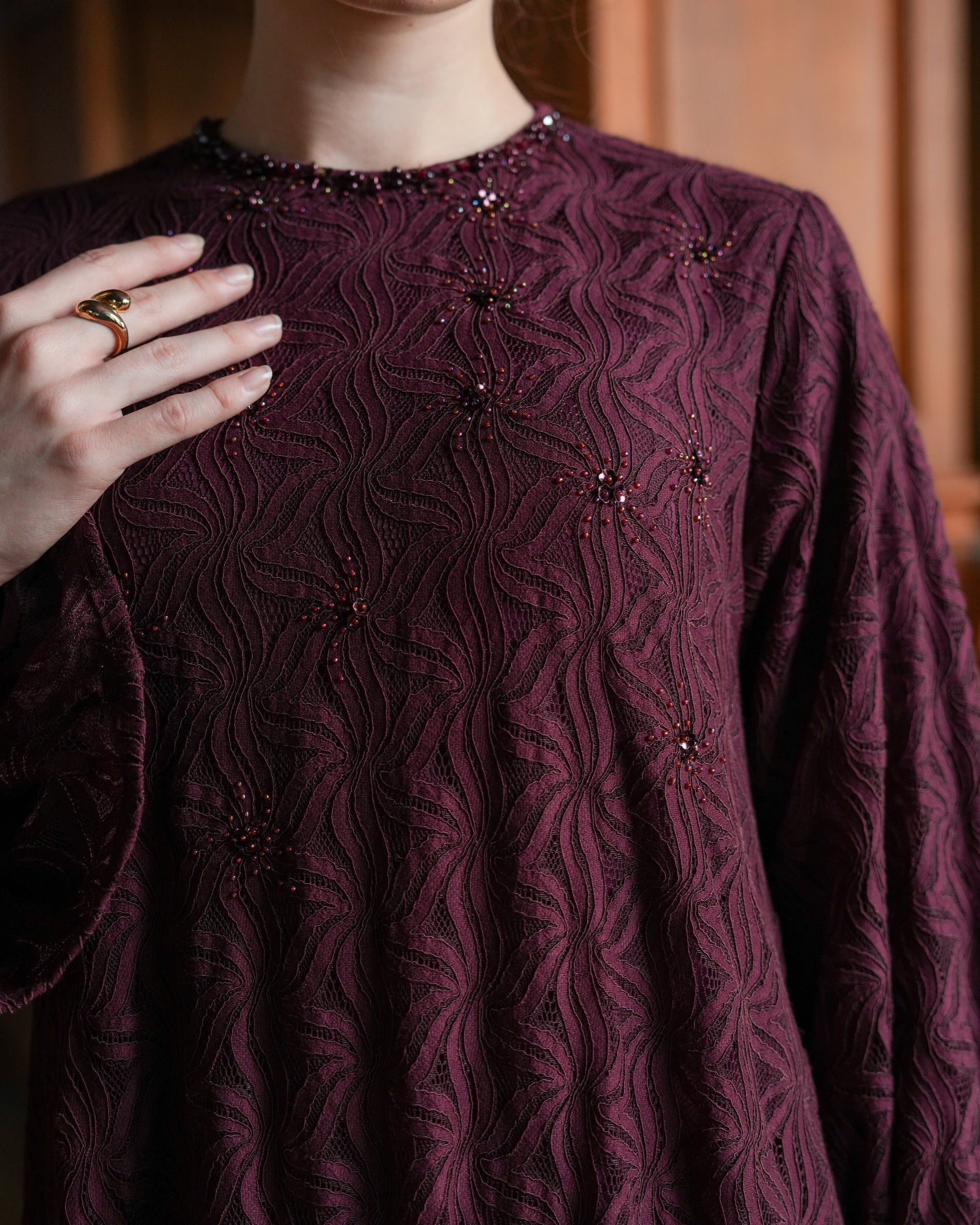Time to embrace your elegancy! Tampil anggun nan memesona dalam balutan Alina Dress by Heaven Lights Prive. Koleksi long dress dengan kolaborasi laces mewah dan sentuhan warna menawan. Bahannya super adem dan sangat ringan, menampilkan detail kerah bulat, sentuhan ruffle, serta kancing belakang. Hadir dengan desain lengan flare with elastic sleeve band, jadi nyaman banget untuk di tarik ke atas & wudhu-friendly. Cocok untuk temani momen istimewa.