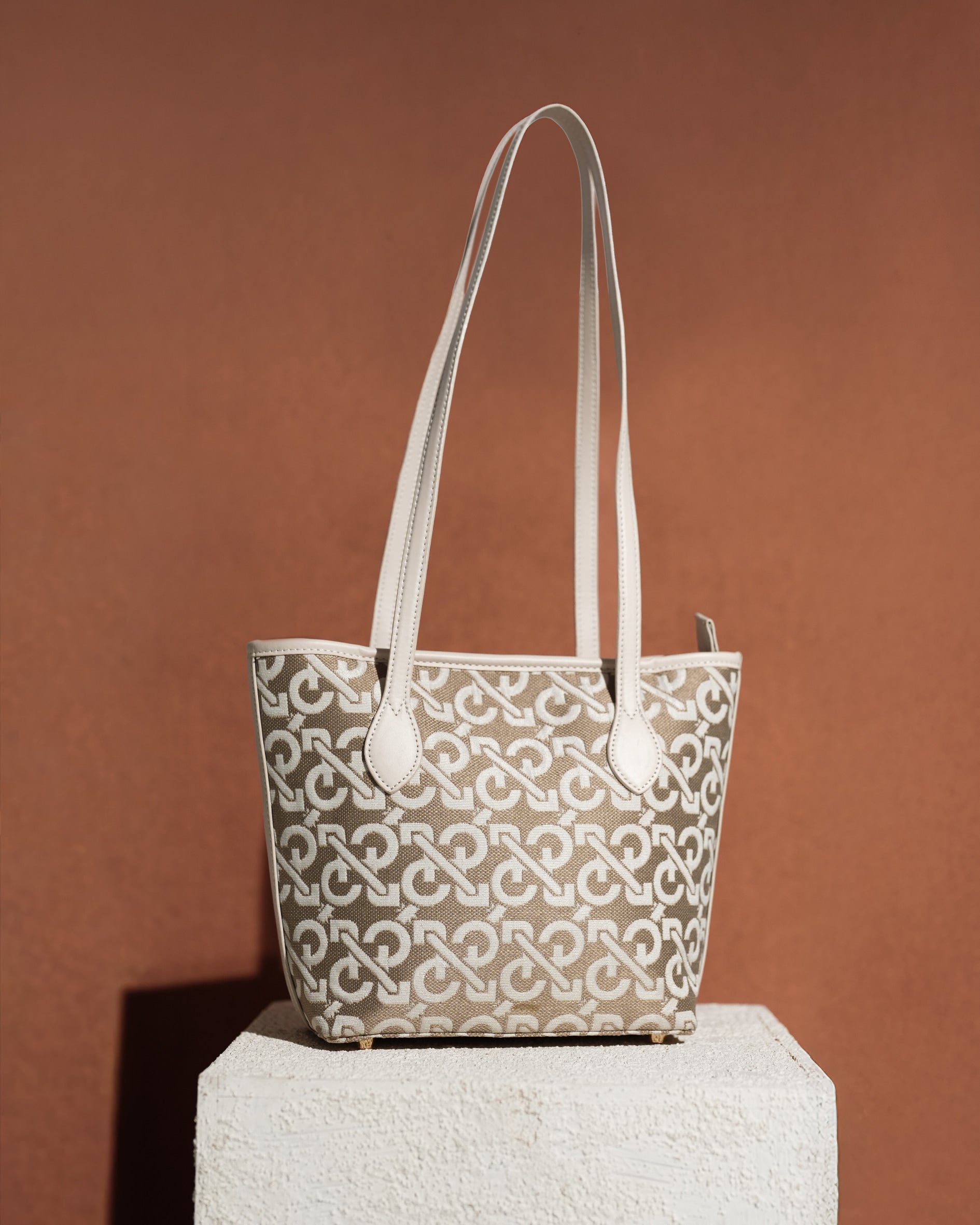 Mini tote bag yang tampil cantik dengan monogram jaquard HL. Hadir dengan kompartemen utama, kantong bagian dalam, dan resleting. Sempurna untuk membawa daily necessity.