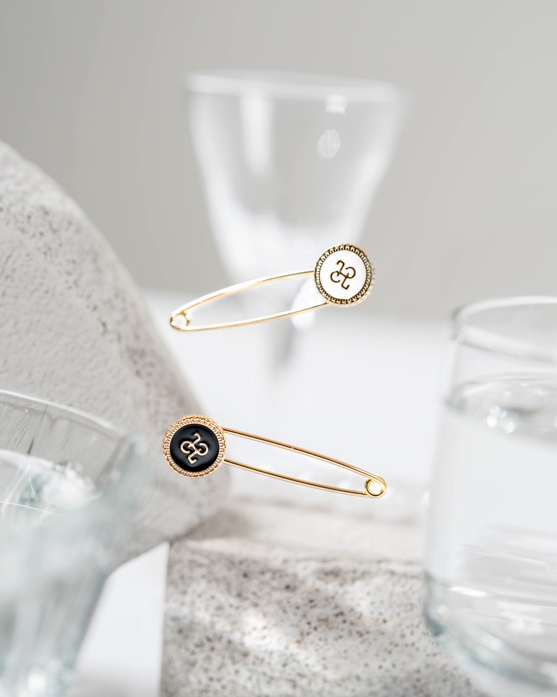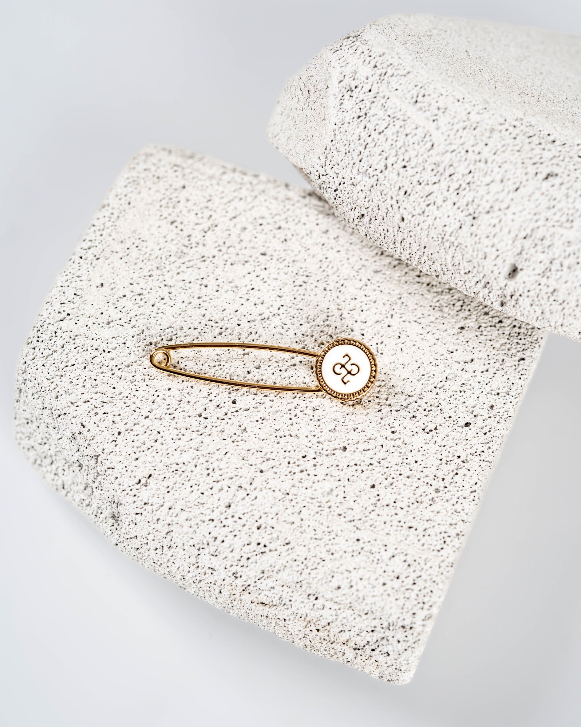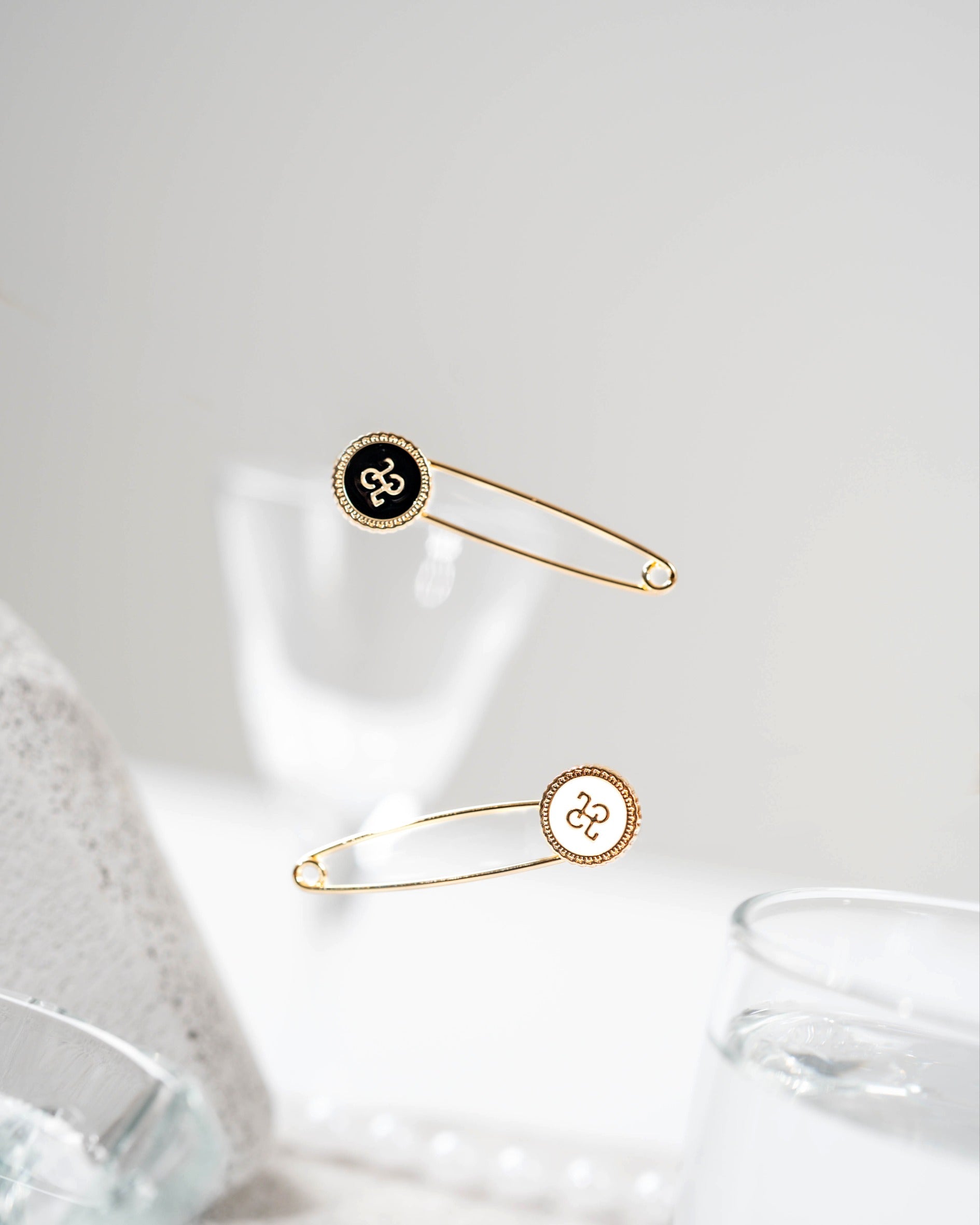 Beri sentuhan cantik pada setiap tampilan dengan Autonoma Pin, safety pin mewah dengan perpaduan desain klasik, aksen monogram, dan sentuhan warna metalik.