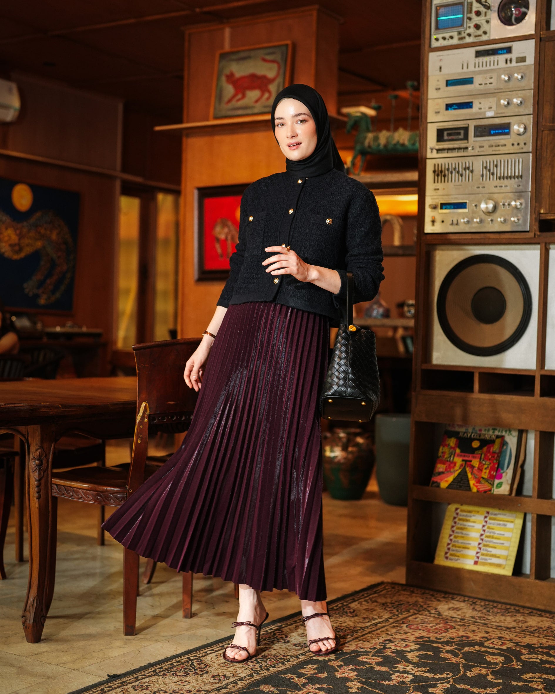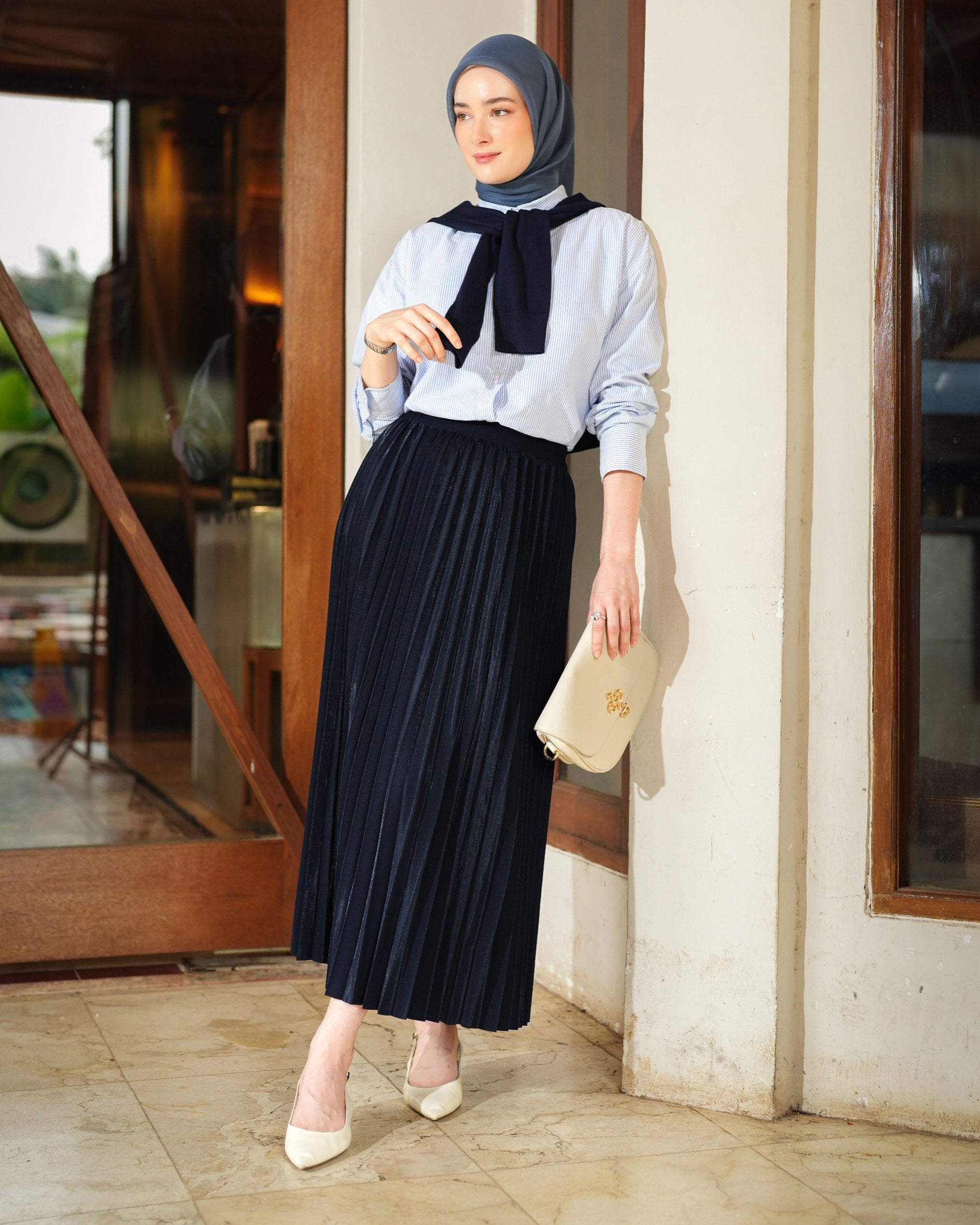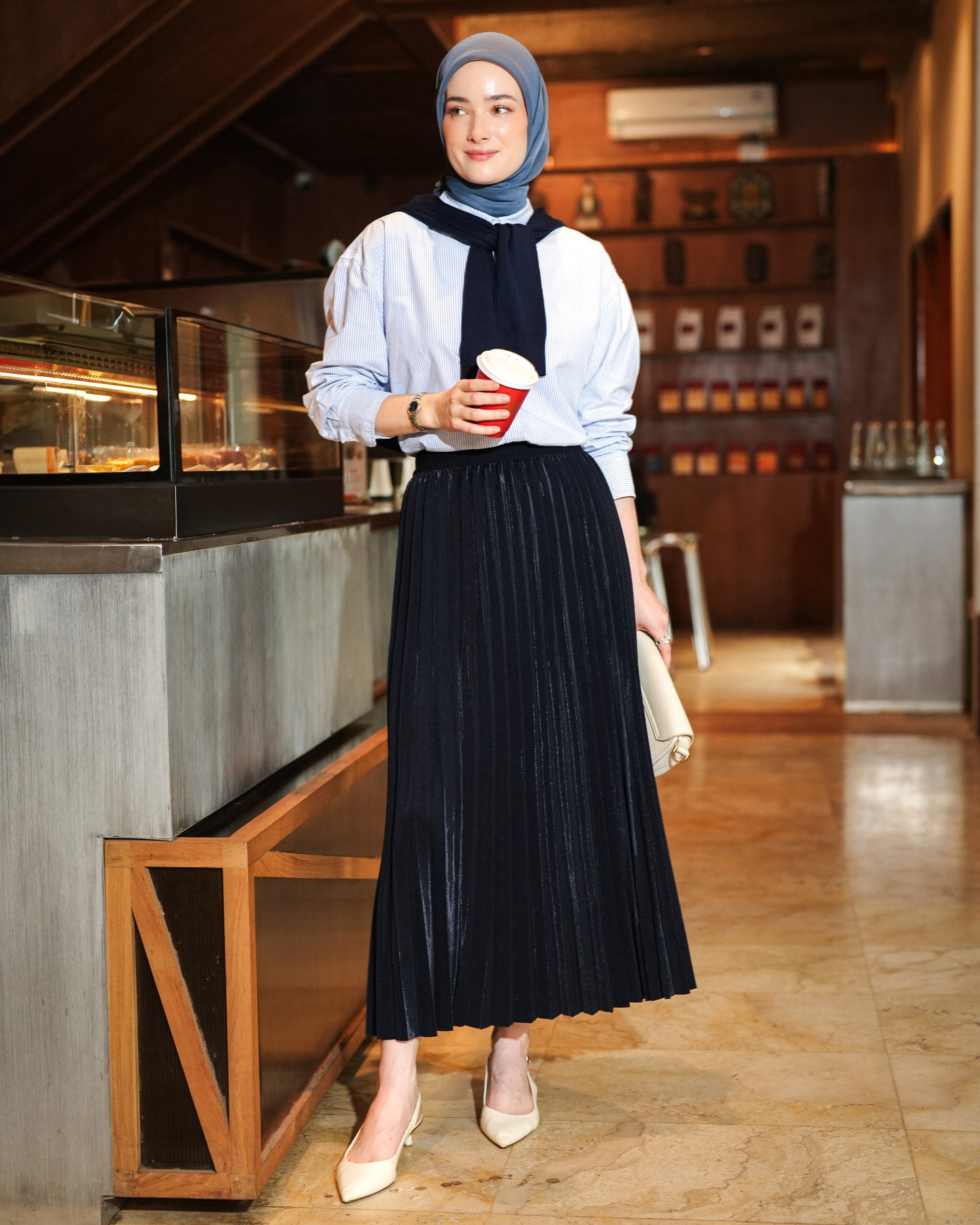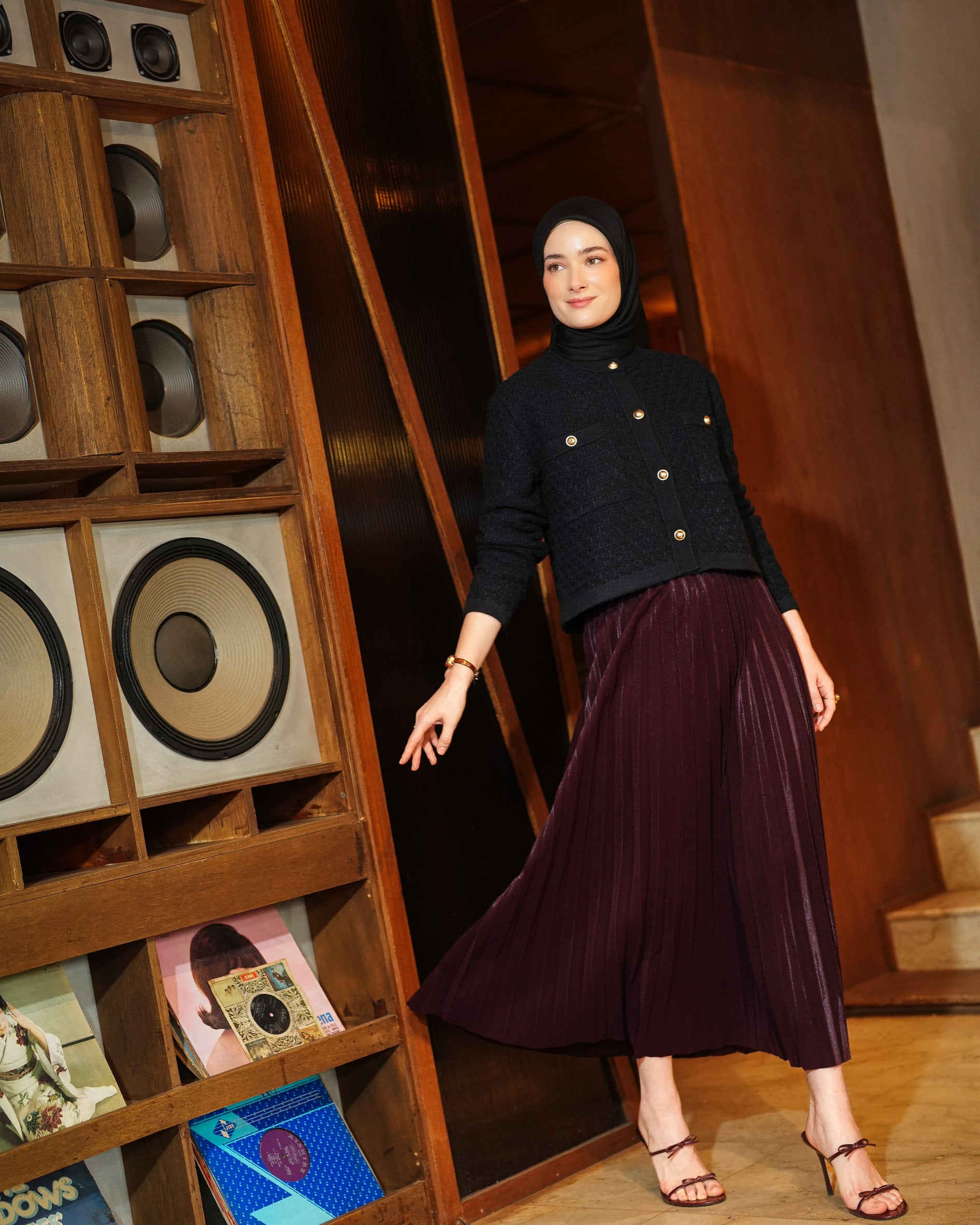 Tampil simply feminin dengan Daria Skirt. Rok pleats berpotongan a-line dengan detail karet pinggang yang dipercantik aksen signature logo. Siluetnya menyesuaikan dengan bentuk tubuh. Aplikasi pleats-nya sangat ringan dan rapih, bahannya lembut dan nyaman, cocok untuk gaya harian atau momen spesial.
