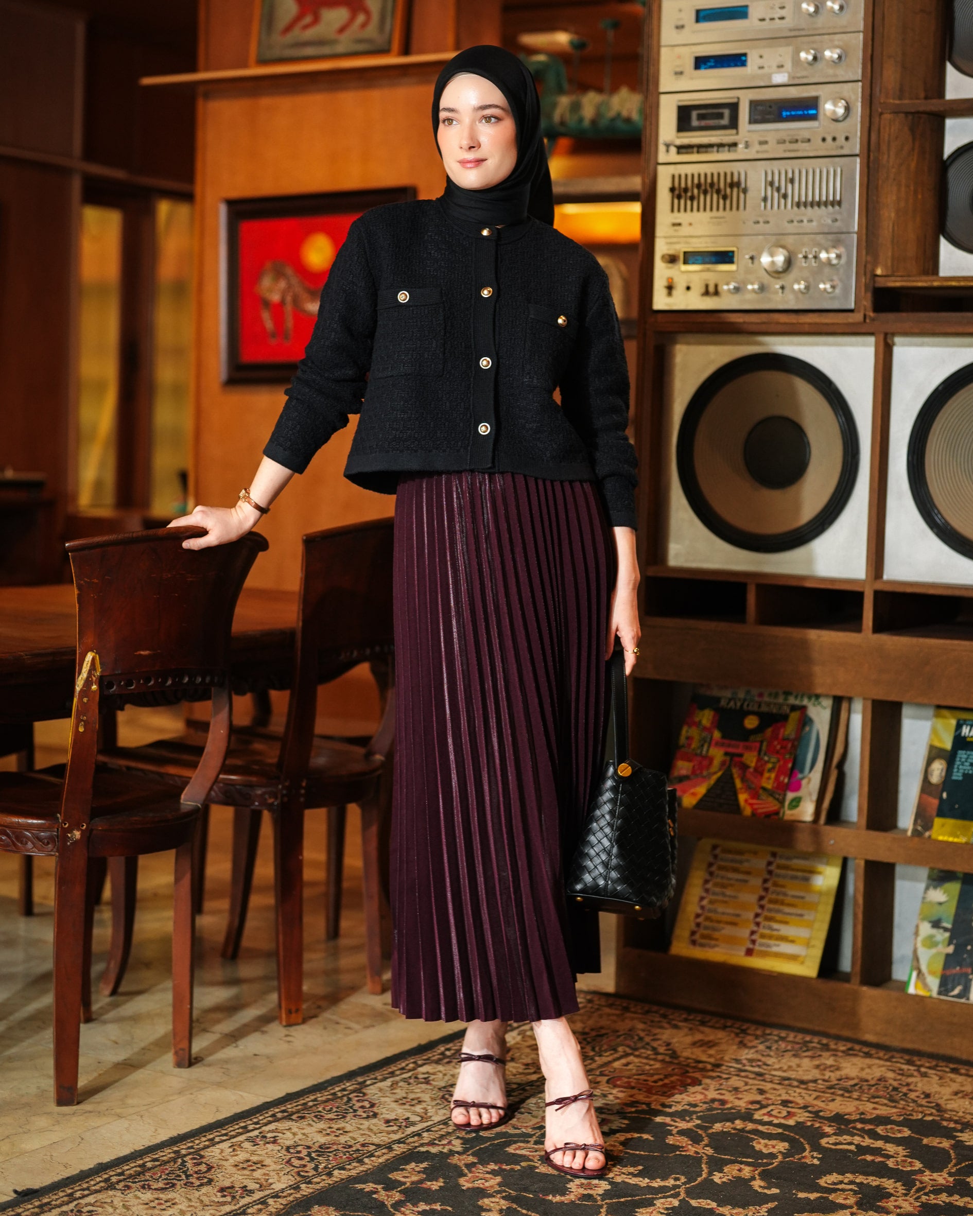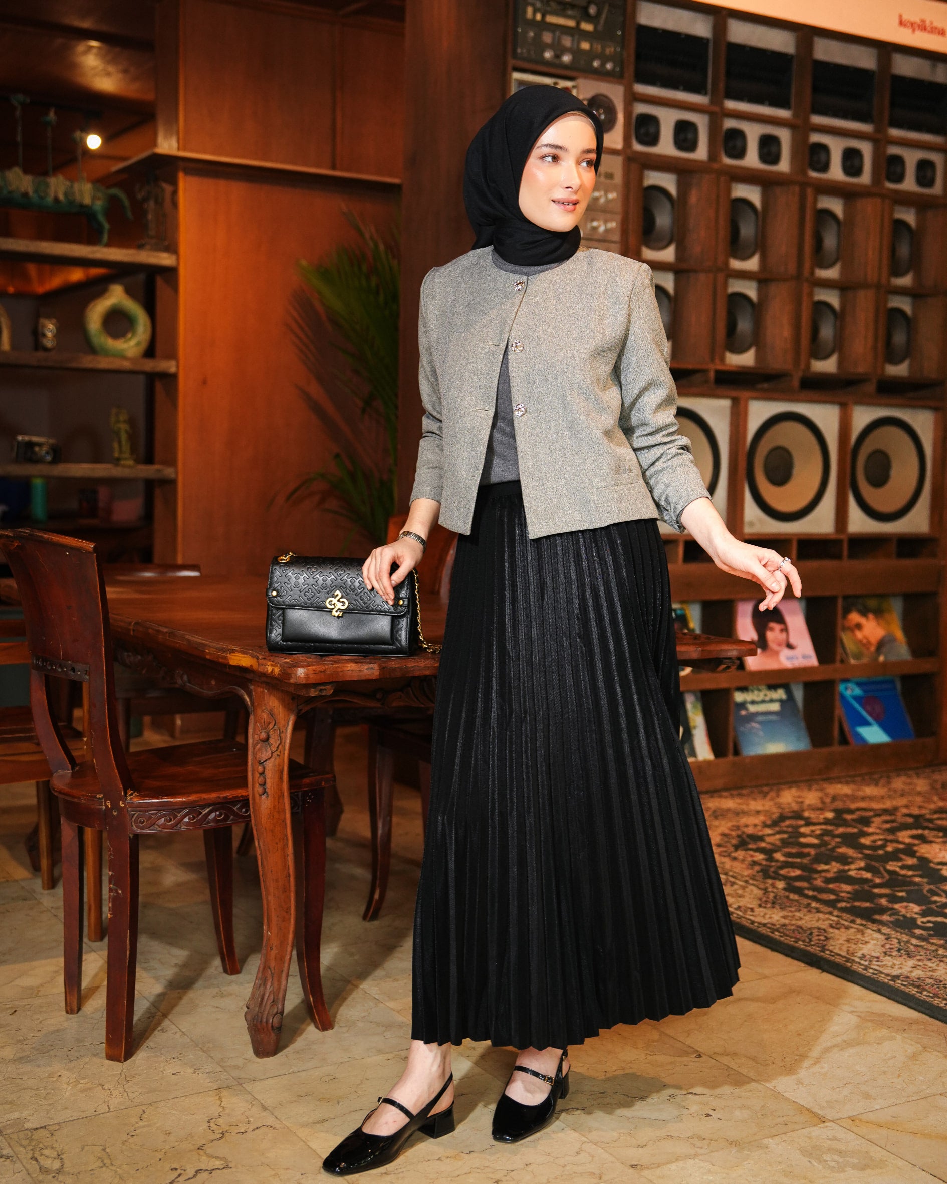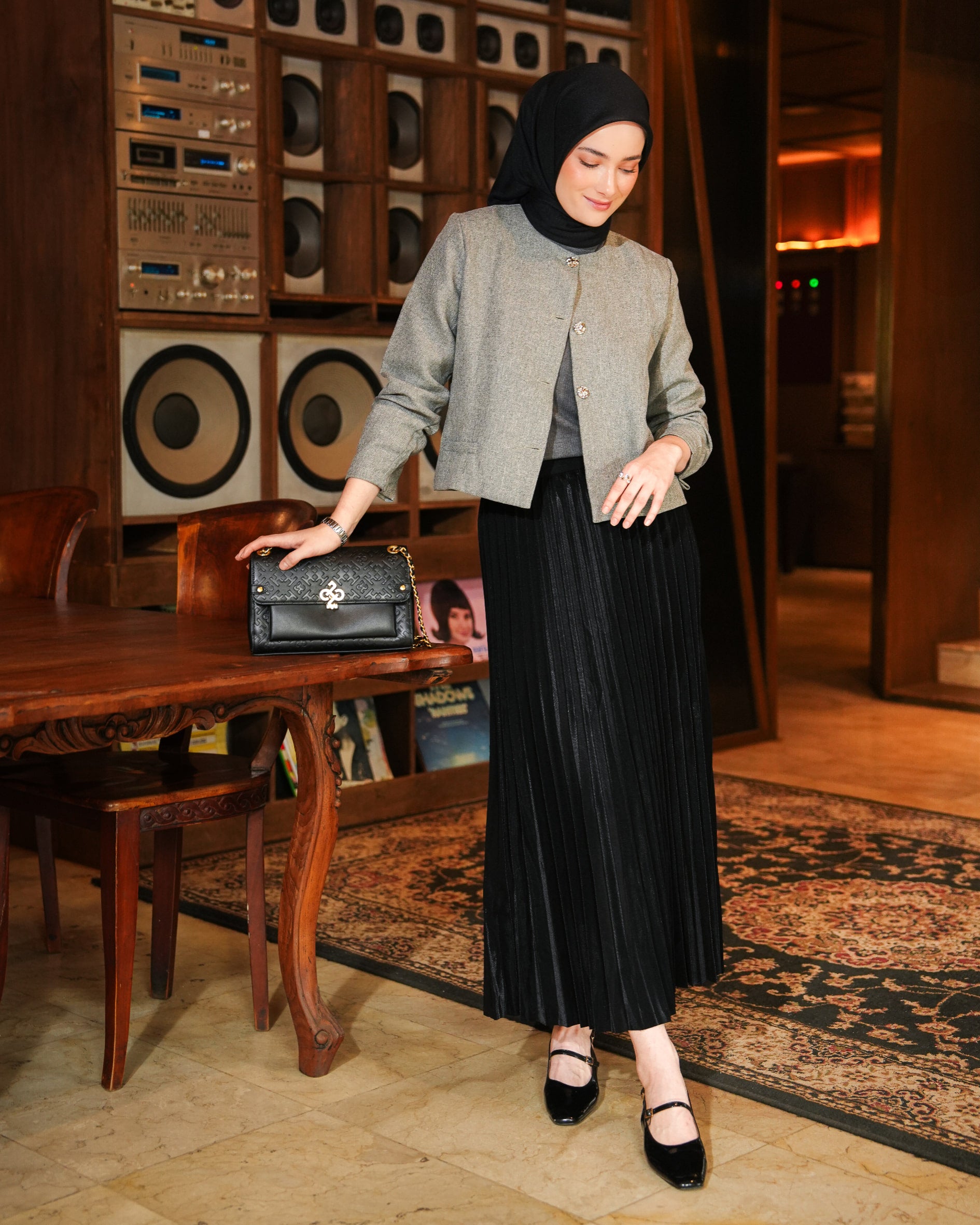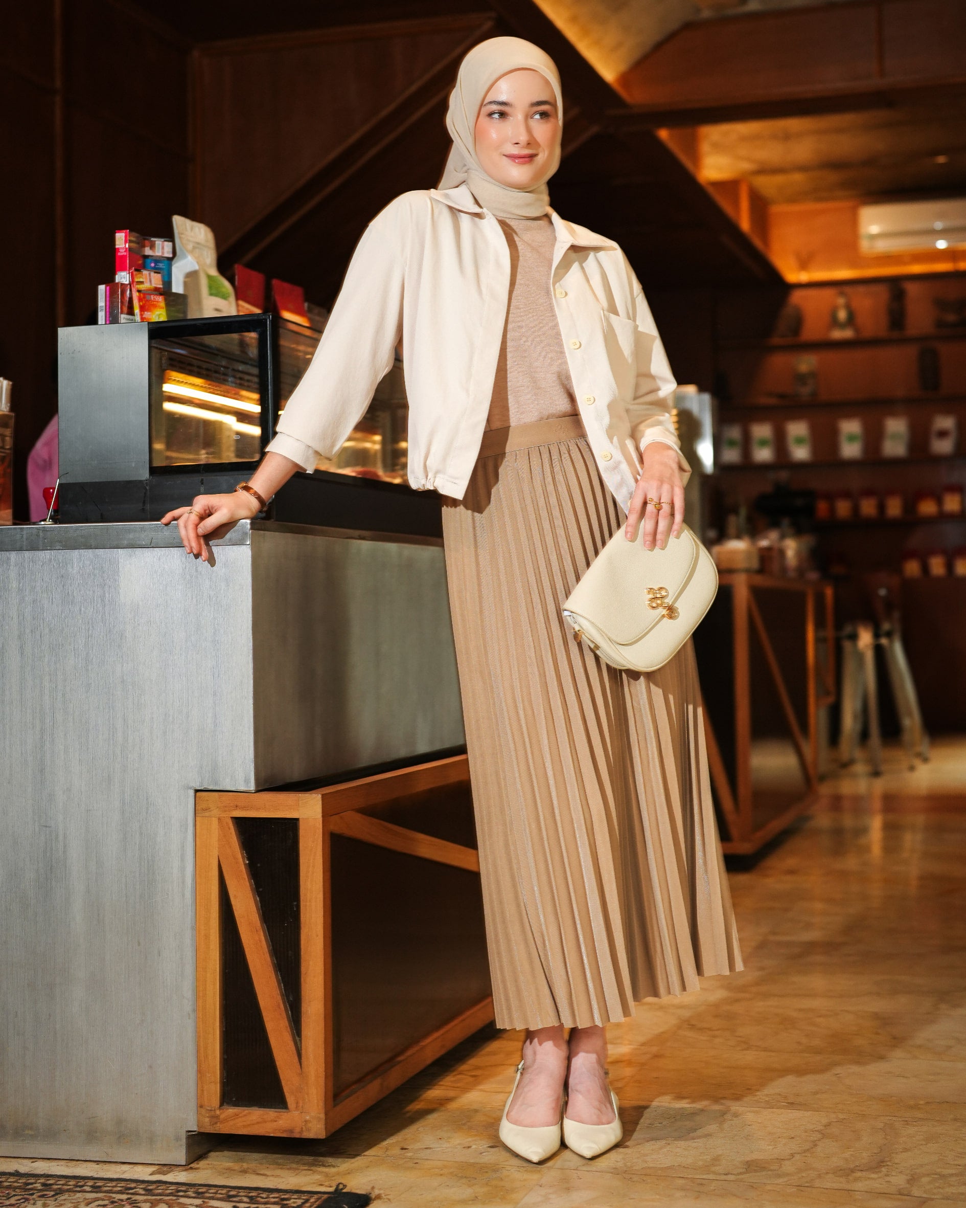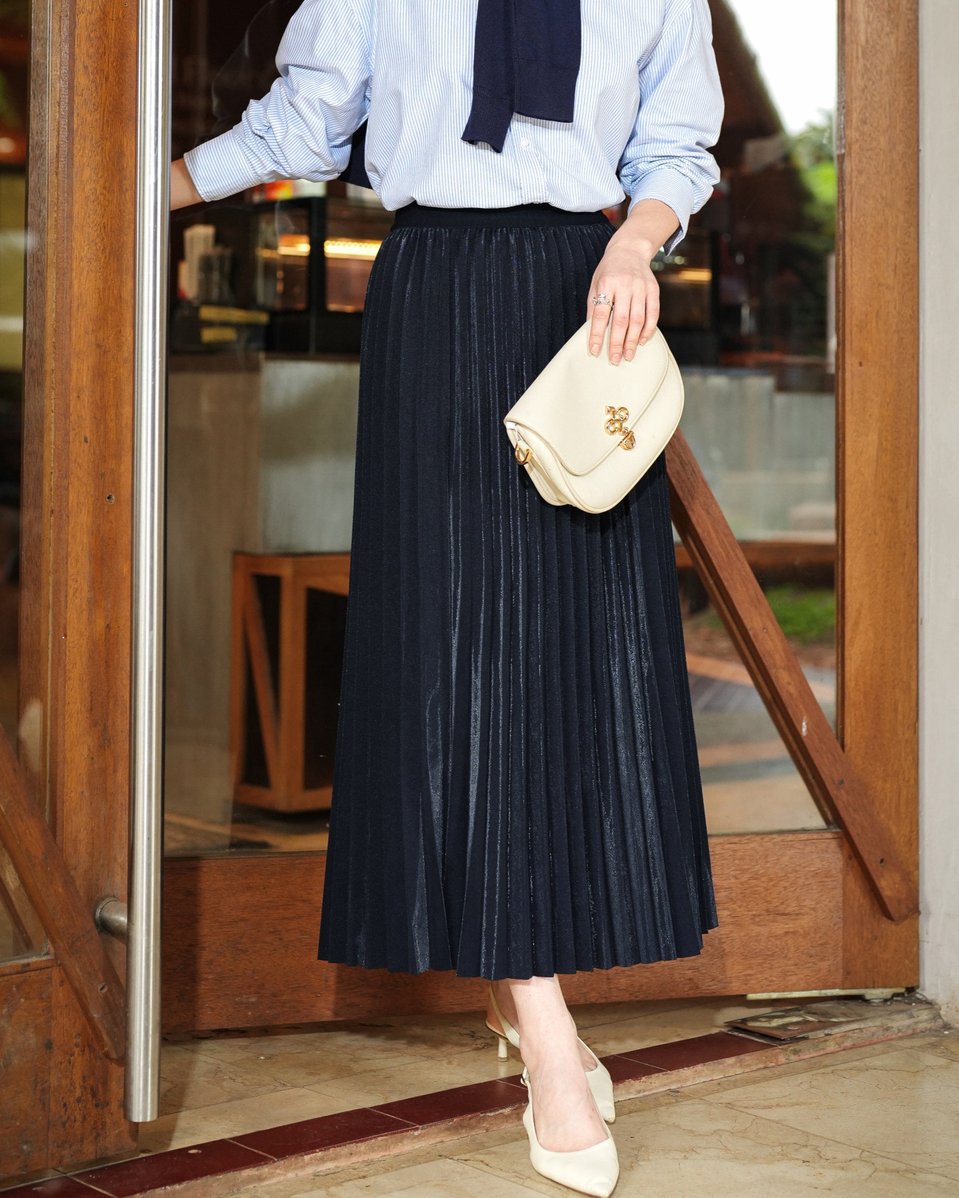 Tampil simply feminin dengan Daria Skirt. Rok pleats berpotongan a-line dengan detail karet pinggang yang dipercantik aksen signature logo. Siluetnya menyesuaikan dengan bentuk tubuh. Aplikasi pleats-nya sangat ringan dan rapih, bahannya lembut dan nyaman, cocok untuk gaya harian atau momen spesial.