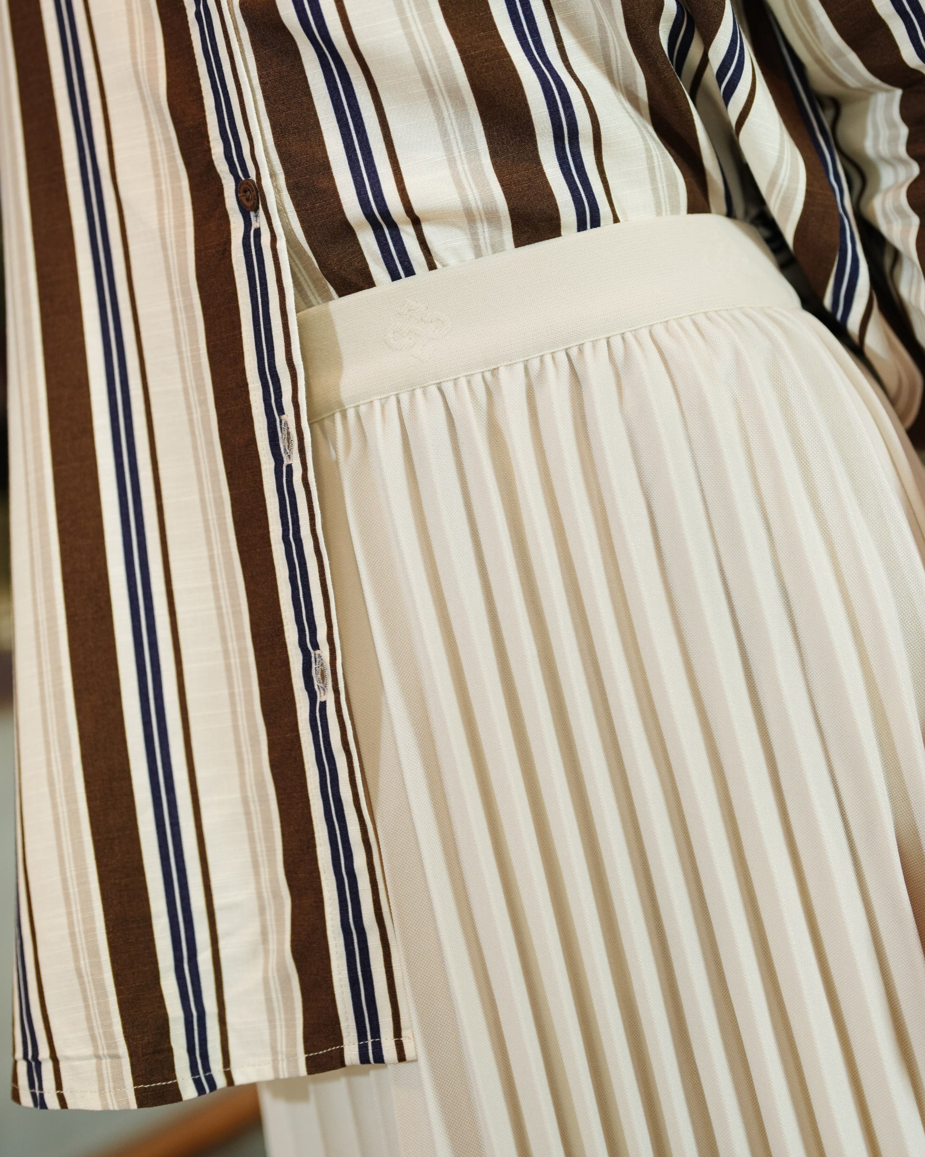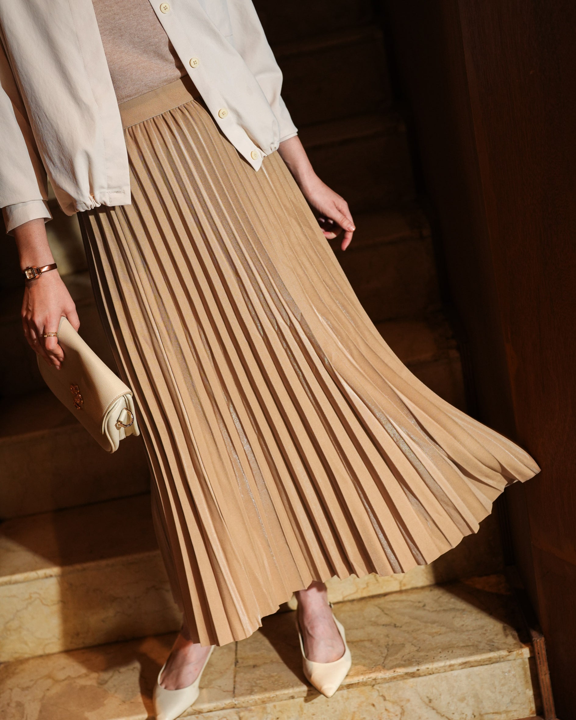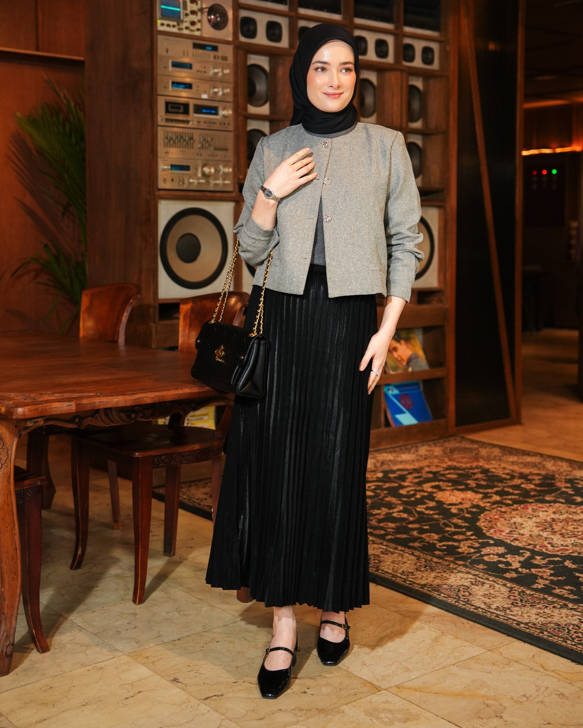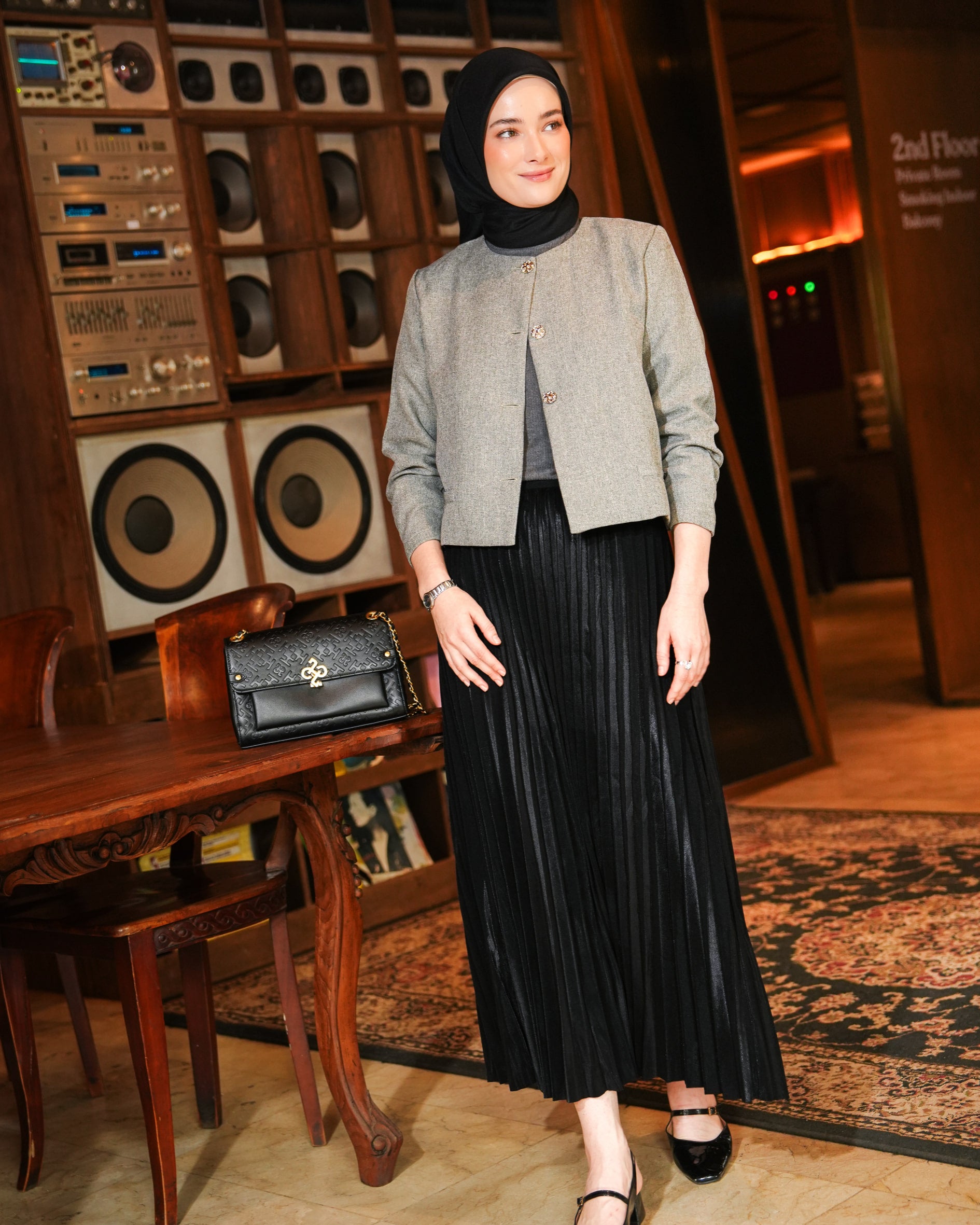 Tampil simply feminin dengan Daria Skirt. Rok pleats berpotongan a-line dengan detail karet pinggang yang dipercantik aksen signature logo. Siluetnya menyesuaikan dengan bentuk tubuh. Aplikasi pleats-nya sangat ringan dan rapih, bahannya lembut dan nyaman, cocok untuk gaya harian atau momen spesial.