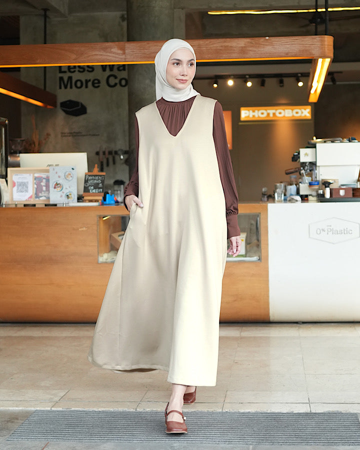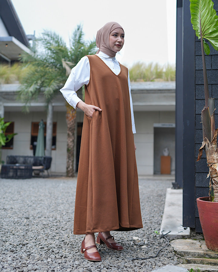 Gaya elegan nan menawan dengan Abby Sleeveless Dress dari Heaven Lights. Dress cantik sleeveless dengan detail v neck dan terdapat saku kanan kiri, cocok dijadikan outer dan inner. Bahannya yang ringan, super adem, dan flowy.