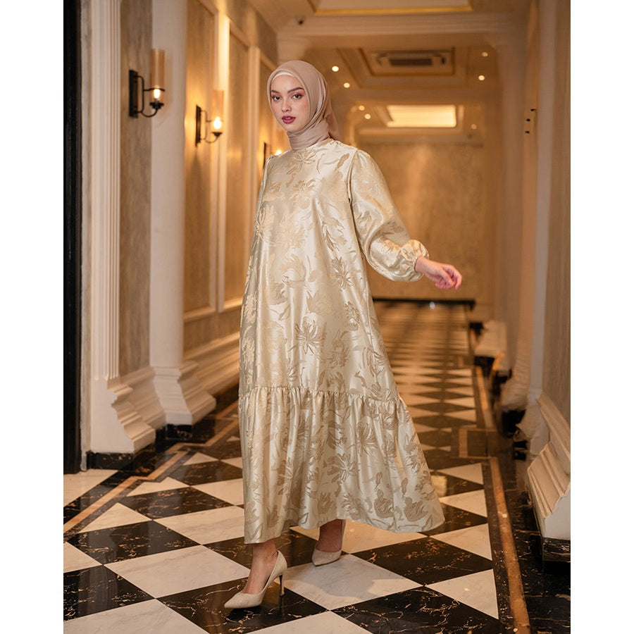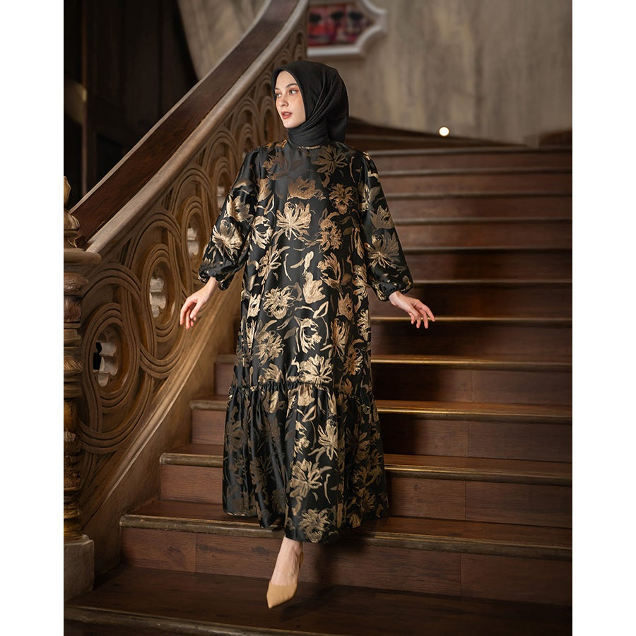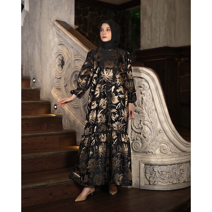 Time to add a glam vibe to your style with Catalina Dress by Heaven Lights Prive Ciptakan keanggunan di momen istimewa dalam balutan Catalina Dress dari Heaven Lights Prive. Koleksi long dress dengan kolaborasi sentuhan floral pattern mewah dan warna yang memesona.