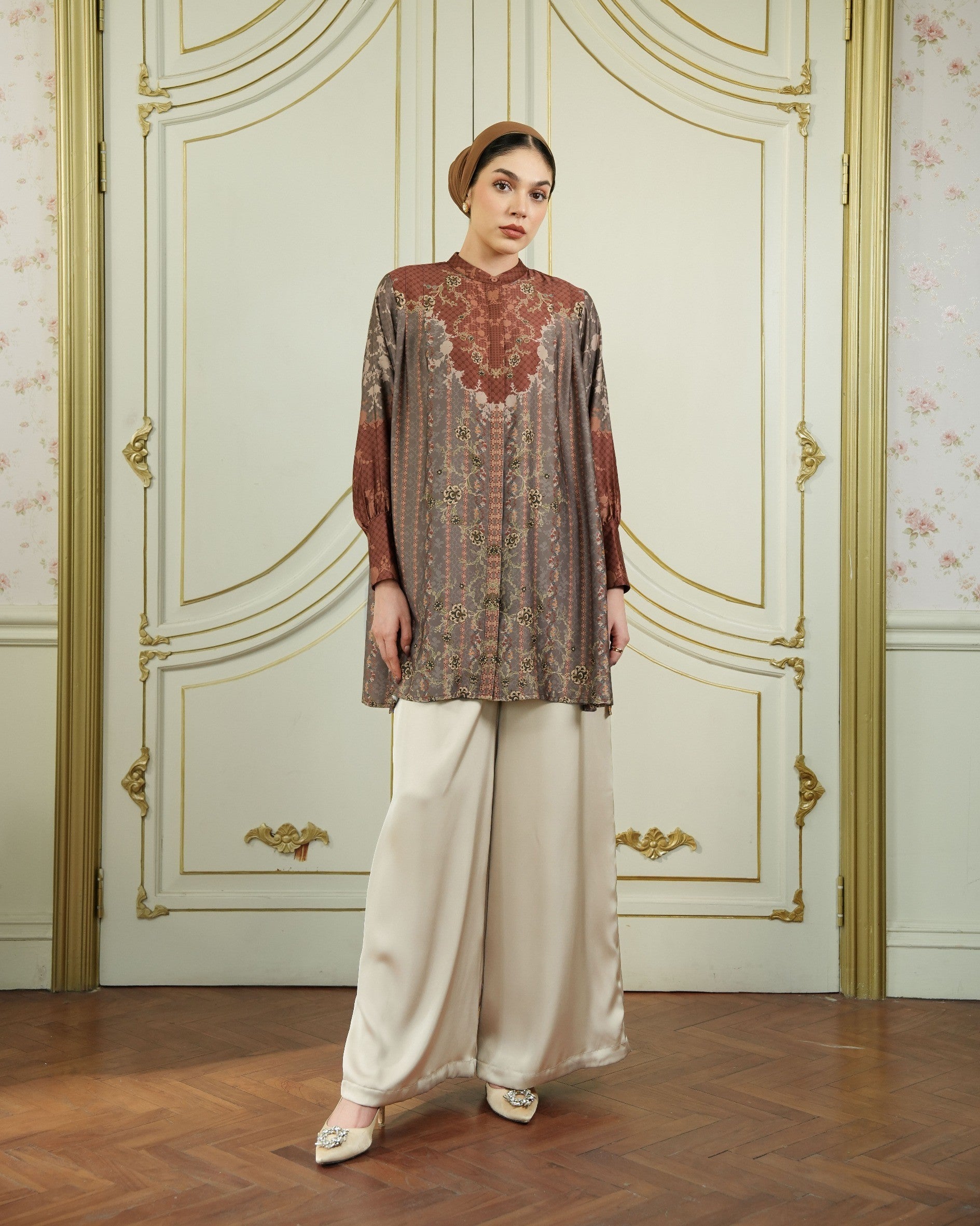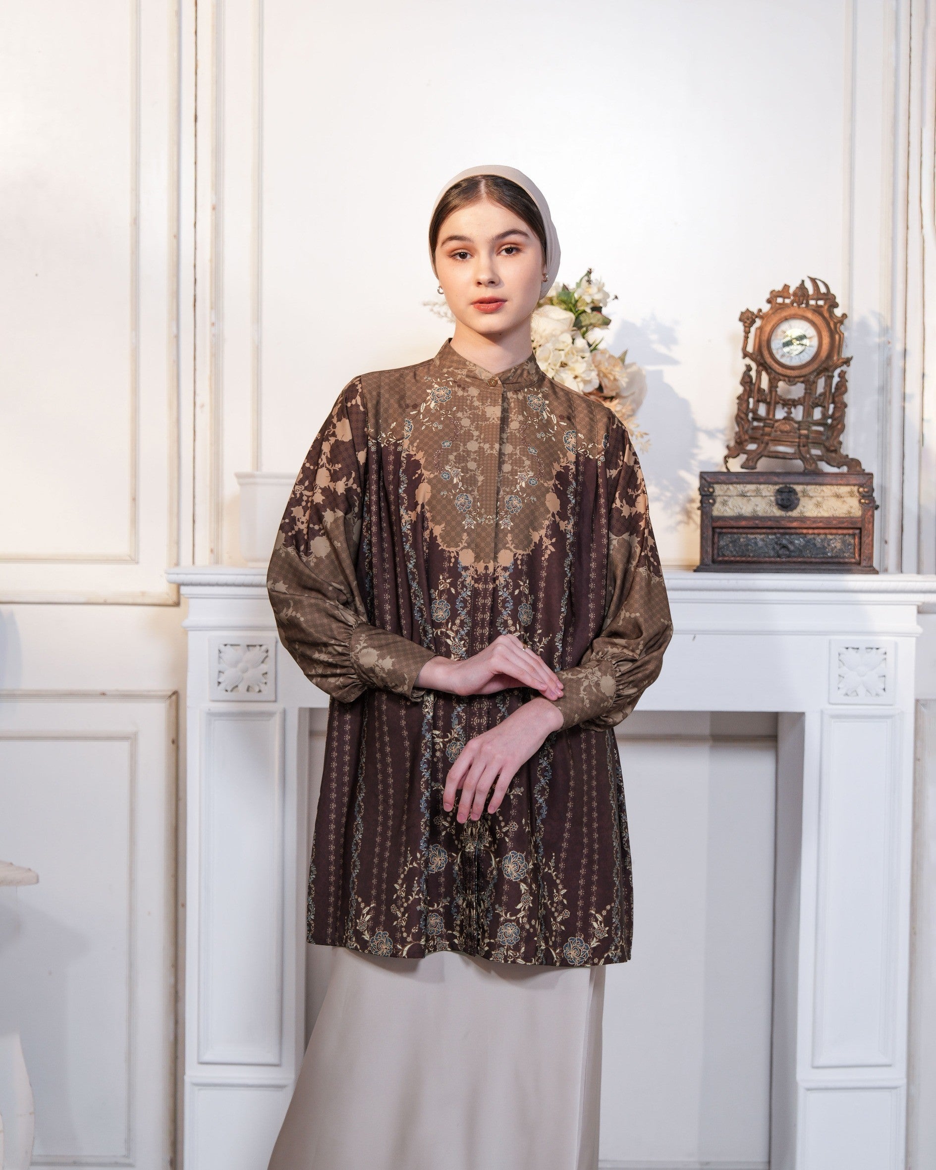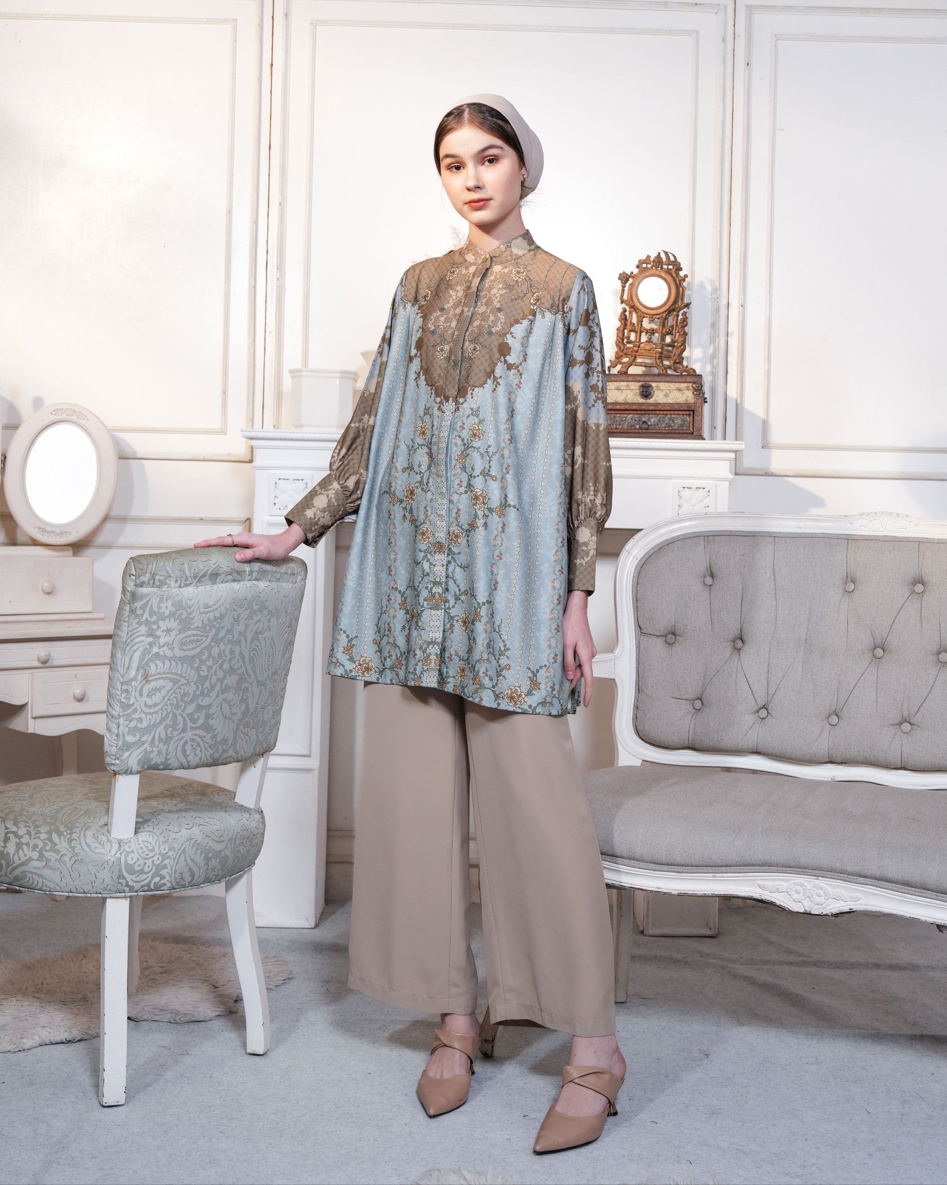 Ciptakan kesan effortless elegance dengan Rumila Tunic dari Heaven Lights Prive. Printed tunic dengan perpaduan conceal button yang busui-friendly serta puff sleeve. Materialnya sangat ringan, tidak panas, nyaman dipakai seharian. Sempurna untuk selebrasi di momen Raya.