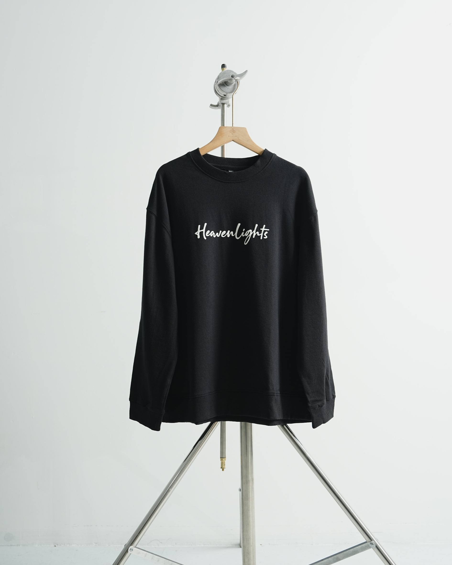 Sweater hitam lengan panjang dengan signature logo dan rib sleeve. Materialnya nyaman, adem, ringan, dan teksturnya lembut.